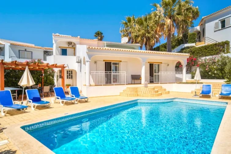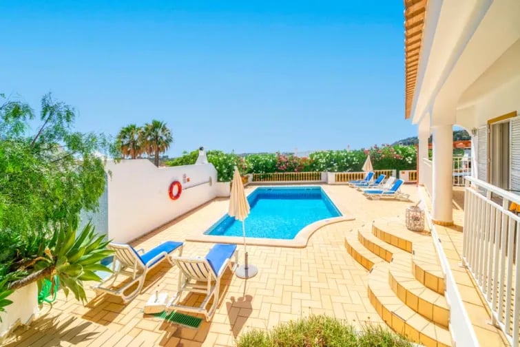 Kylpe kirkkaan auringon alla Portugalin etelärannikolla Villa Garbinossa. Albufeiran ulkopuolella kukkuloilla sijaitseva upea huvila on vain lyhyen ajomatkan päässä vilkkaasta keskustasta, kuuluisasta venesatamasta ja Albufeiran lomakohteen kauniista rannoista. Nauti päivistäsi auringonpaisteessa oman uima-altaasesi mukavuudesta käsin. Pulahda eloisaan siniseen veteen ja katsele iltapäivien kuluvan ohi rentoutuessasi kirkkaan sinisen taivaan ja upean lämmittävän auringon alla. Jos et halua kastua kastumalla, voit rentoutua aurinkotuoleissa kirjan parissa tai torkuilla. Tilavassa ja ilmavassa olo- ja ruokailutilassa voit rentoutua sisätiloissa tai nauttia molempien maailmojen parhaista puolista rentoutumalla parvekkeella, jolta on upeat näkymät Portugalin maaseudulle. Täysin varusteltu keittiö ja viihtyisät makuuhuoneet tekevät tästä majoituspaikasta kauniin paikan nauttia Portugalin etelärannikon rentouttavasta luonnosta. Hyödynnä Albufeiran parhaita nähtävyyksiä, jotka ovat vain alle kymmenen minuutin ajomatkan päässä. Katsele veneiden purjehtivan sisään ja ulos laiturialueelta ja ehkä jopa nappaa yksi niistä rannikkokierrokselle aalloilla. Muista piipahtaa lomakeskuksen keskustassa kokeilemassa ravintoloita ja baareja, joita on kaikkialla alueella, ja älä missaa Praia do Penecon ja Praia dos Prescadoresin valtavia hiekkarantoja rentoutumiseen meren rannalla. Jos etsit merenrannan rauhaa, kaupunkiseikkailuja tai maaseutumaisemia, Villa Garbino on oikea valinta.