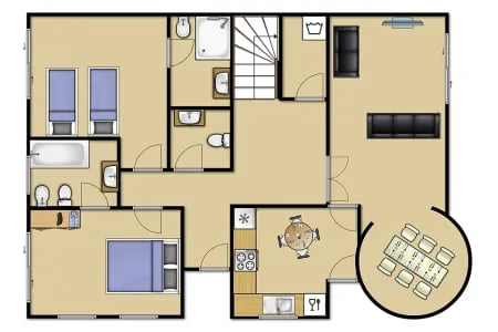 Huvilaan pääsee 85 cm leveää polkua pitkin, jossa on kuusi askelmaa. Etuoven leveys on 78 cm ja muut allasalueelle johtavat ovet ovat pohjakerroksen makuuhuoneiden ovia. Polkuja huvilalta allasalueelle on 150 cm leveää ja tontti on tasainen. Levein makuuhuoneen ovi pohjakerroksessa on 64 cm leveä, ja se on kahden hengen huoneen ovi, ja levein kylpyhuoneen ovi pohjakerroksessa on 64 cm leveä, ja se on oman kylpyhuoneen ovi. Keittiön/ruokailutilan ovi on 74 cm leveä ja olohuoneen ovi 200 cm leveä. *Huomaa, että vaikka olemme pyrkineet kaikin keinoin varmistamaan annettujen tietojen paikkansapitävyyden, virheitä voi esiintyä. Jos haluat lisätietoja huvilasta, ota rohkeasti yhteyttä.
