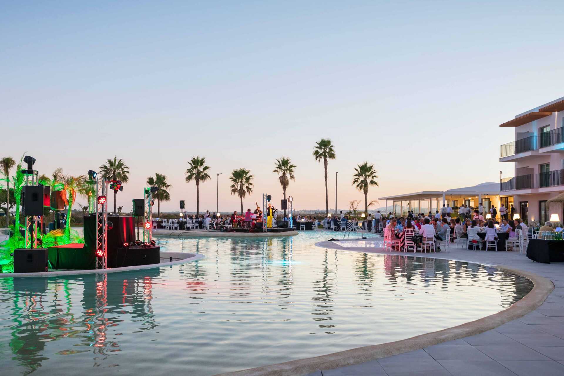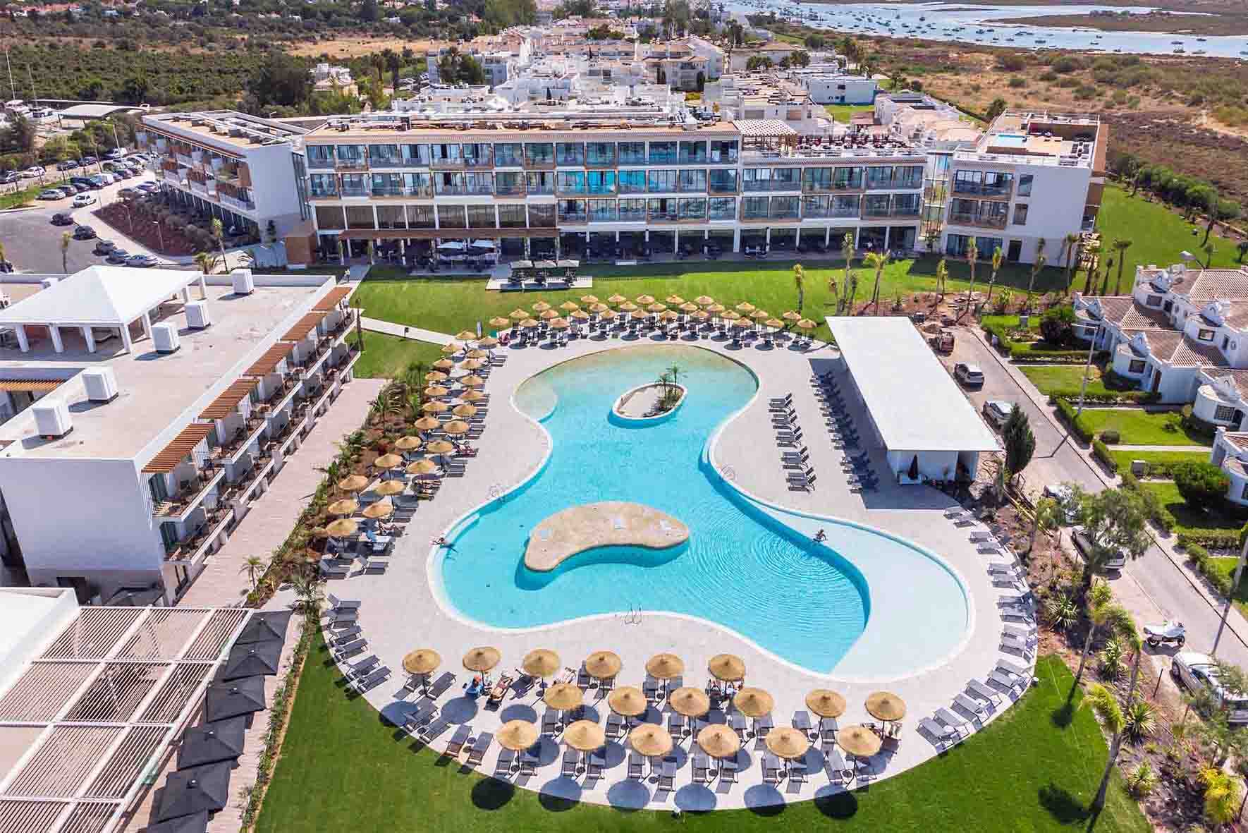 Hôtel situé à environ 45 min de l’aéroport de Faro (sans stop) Nous avons passé une agréable semaine en all inclusive du 16 au 23 octobre 2025. Hôtel situé dans un endroit calme, avec un paysage reposant sur les lagunes et les salines au loin. Hôtel sans enfant, acceptés à partir de 14 ans Mer à 900 m = 10 minutes à pied + 2 mn de traversée en navette bateau gratuite + encore 10 min de marche pour arriver à une belle plage, mais mer assez dangereuse car elle descend à pic. Salle de sport gratuite en dehors de l’hôtel, salle de télévision, salle de lecture, animation, excursions. L’hôtel reçoit toute l’année des groupes de golfeurs mais cela ne pose aucun problème. Accès gratuit au hammam, sauna, jacuzzi, piscine intérieure chauffée (bonnet obligatoire) ; massages, serviette de plage avec caution. Location de vélos et voiture (assez chère il est préférable de louer à l’aéroport) Nous avons pris UBER pour aller en ville. Petit déjeuner en musique avec un pianiste, bon café, et bouteilles de vin pétillant en libre-service Bonne restauration dans l'enemble, aussi bien au buffet (tables également à l’extérieur) qu’au restaurant RIA (inclus dans la formule, à raison de 2 fois par semaine sur réservation) Par contre le « restaurant grill » près de la piscine est très simpliste, plutôt un snack : burger, chips, steak haché, salades. Tous les midis, au bar principal, dégustation gratuite d’huitres (attention nous étions en octobre, peut-être n’est-ce pas la même chose en haute saison). Bouteilles de vin blanc, rosé et rouge en libre-service au bar principal, ce qui est une très bonne idée, cela évite de faire la queue. 3 piscines : belle piscine principale + une au rooftop avec bar, music live et DJ le soir, et une piscine chauffée au SPA. ATTENTION : fin octobre jusqu’à fin février environ, l’hôtel entre dans sa saison hivernale, certaines activités sont arrêtées, la piscine du rooftop n’est plus accessible, il n’y a plus qu’un service à 19h30 au restaurant RIA (au lieu de 2), les hamacs sont rentrés…. Seul bémol : le passage de l’aspirateur dans les couloirs à l’heure de la sieste (chambre 273) Dommage qu’il n’y ait pas grand-chose à voir autour de l’hôtel, si ce n’est le village de pêcheurs à Cabanas à 1 km et Tavira à 7 km. Sinon c'était très bien.