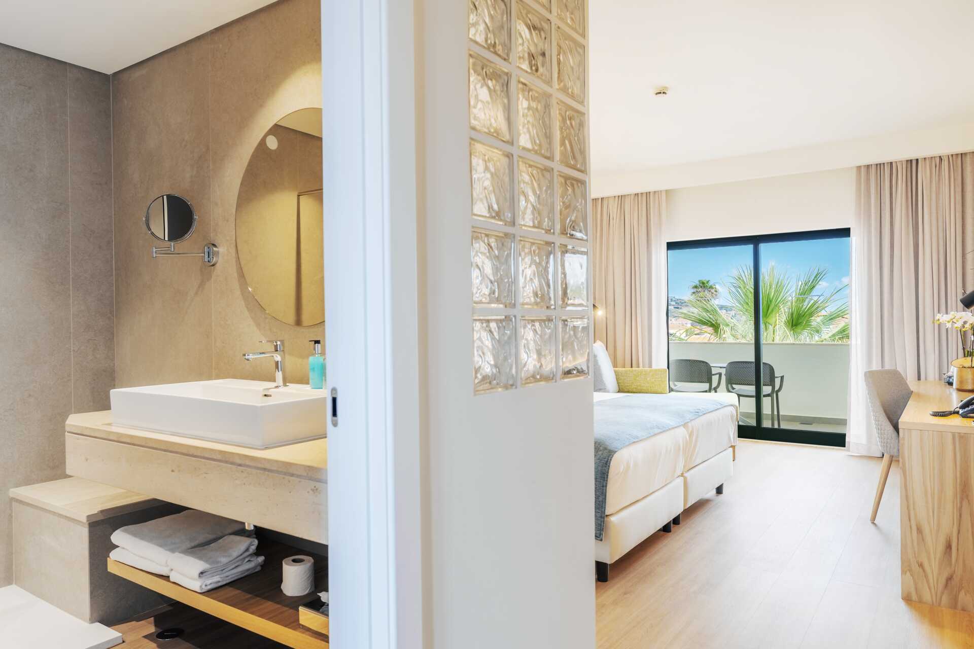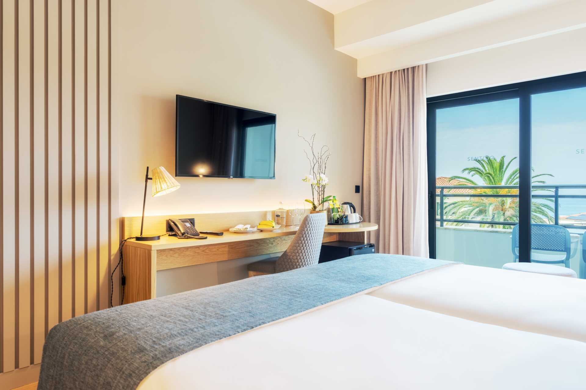 Kahden hengen huone parvekkeella tai terassilla. Parivuode tai kaksi yhden hengen vuodetta. Tyynymenu. Maksuton wifi, ilmastointi ja tallelokero. Jääkaappi. Vedenkeitin, kahvia ja teetä. Tv kansainvälisillä kanavilla. Hiustenkuivain. Suihku ja wc. Siivous 7 krt/viikko.