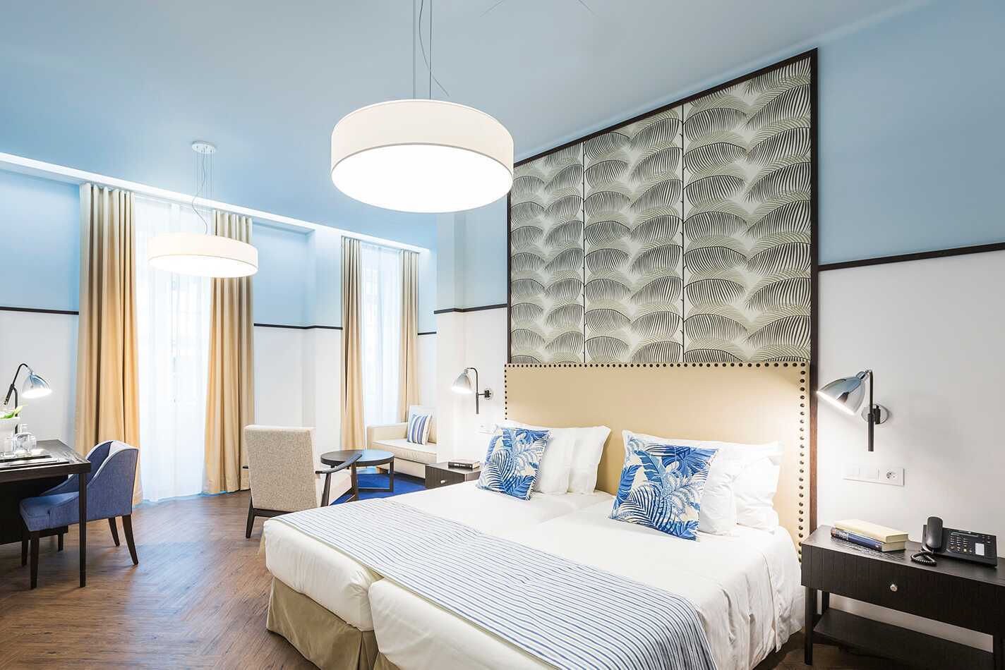 Juniorsviitti ranskalaisella parvekkeella. Parivuode tai kaksi yhden hengen sänkyä. Lisävuodemahdollisuus vuodenojatuolista tai vuodesohva. Maksuton wifi, ilmastointi ja tallelokero. Minibaari. Vedenkeitin, kahvia ja teetä. Tv kansainvälisillä kanavilla. Kylpytakit ja tossut. Hiustenkuivain. Kylpyhuoneessa suihku ja wc. Siivous 7 krt/viikko. Alle 2-vuotiaat lapset lasketaan lisävuoteella majoittuviksi henkilöiksi.