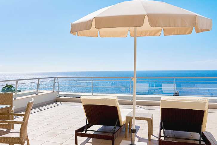 Tilava kulmahuoneisto, suuri kylpyhuone ja laaja terassi suoraan merelle. Hotellin sijainti loistava, kävelymatka keskustaan ja rantabulevardia pitkin upea pitkä kävelyreitti länteen.