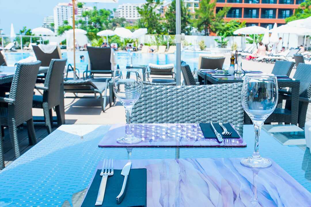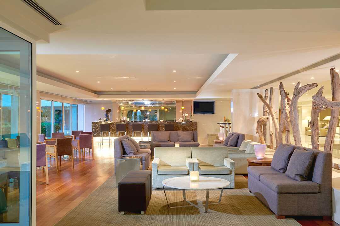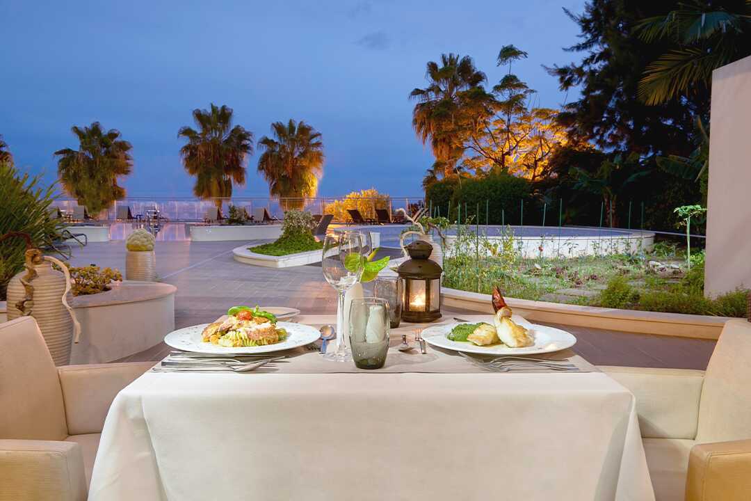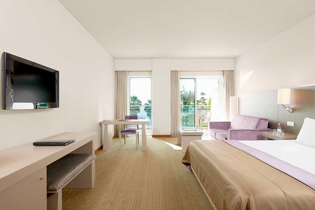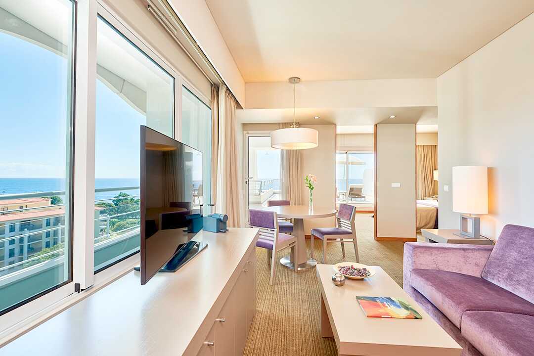 Sviitti jossa parveke tai terassi merinäköalalla. Sviitissä on makuuhuone, olohuonee minikeittiöllä ja iso terassi (32 neliömetriä), jossa on aurinkotuoleja, tuoleja ja pöytä. Parivuode tai kaksi yhden hengen sänkyä. Lisävuodemahdollisuus vuodesohvasta. Kokolattiamatto. minikeittiö, jossa mikroaaltouuni, liesi, jääkaappi, kahvikone, vedenkeitin kahvia ja teetä, yksinkertaiset keittiövarusteet. Maksuton wifi, ilmastointi ja tallelokero. Tv kansainvälisillä kanavilla. Hiustenkuivain. Kylpyhuoneessa kylpyamme, erillinen suihku ja wc. Siivous 7 krt/viikko. Alle 2-vuotiaat lapset lasketaan lisävuoteella majoittuviksi henkilöiksi.