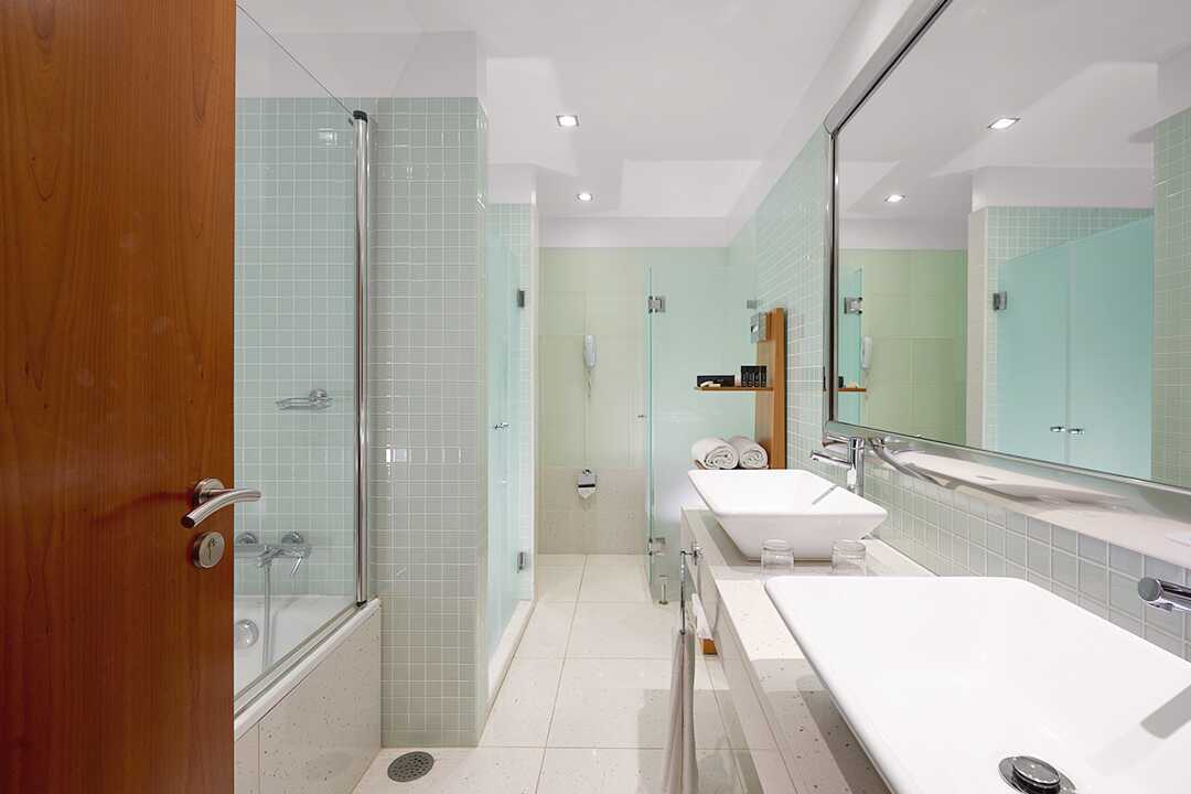 Kahden hengen huone 1-2 hengelle (n. 34 neliömetriä) parvekkeella tai terassilla, joista osasta on rajoitettu merinäköala. Kahden hengen huone 1-3 hengelle (n. 44 neliömetriä) parvekkeella tai terassilla ja merinäköalalla. Parivuode tai kaksi yhden hengen sänkyä. Isompiin huoneisiin on mahdollista saada lisävuode yhdelle hengelle. Maksuton wifi, ilmastointi ja tallelokero. Minibaari. Vedenkeitin, kahvia ja teetä. Tv kansainvälisillä kanavilla. Hiustenkuivain. Kaikissa kylpyhuoneissa on wc ja suihku, suuremmissa huoneissa on myös kylpyamme. Siivous 7 krt/viikko. Alle 2-vuotiaat lapset lasketaan lisävuoteella majoittuviksi henkilöiksi.