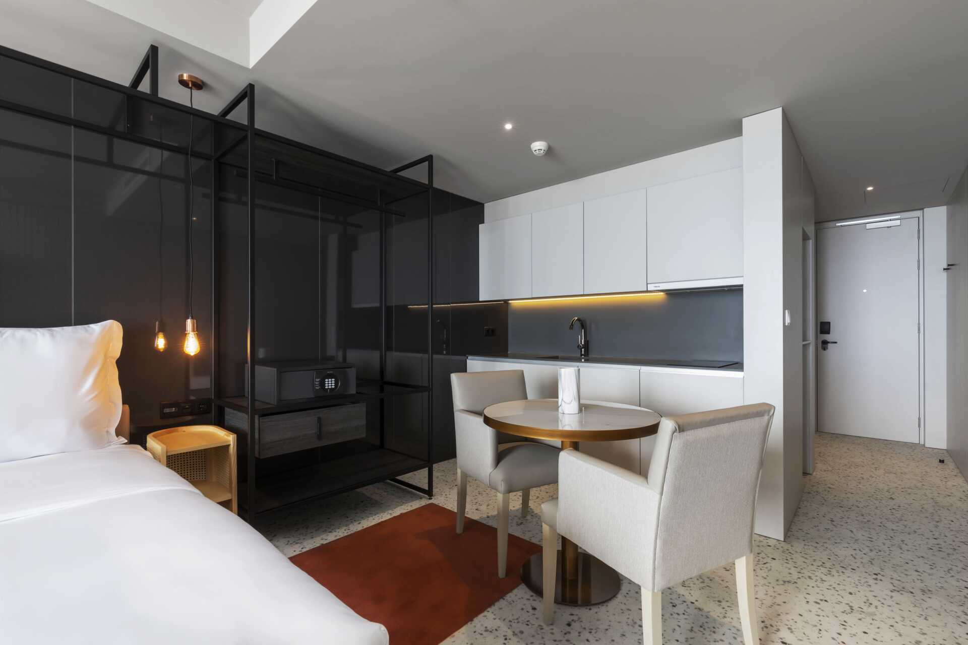 Yksiö parvekkeella. Yhdistetty makuuhuone ja minikeittiö. Parivuode tai kaksi yhden hengen sänkyä. Minikeittiössä keittolevyt, jääkaappi, vedenkeitin ja yksinkertainen keittiövarustus. Maksuton wifi ja ilmastointi. Tallelokero lisämaksusta. Tv kansainvälisillä kanavilla. Hiustenkuivain. Suihku ja wc. Siivous 7 krt/viikko. Alle 2-vuotiaat lapset lasketaan lisävuoteella majoittuviksi henkilöiksi.