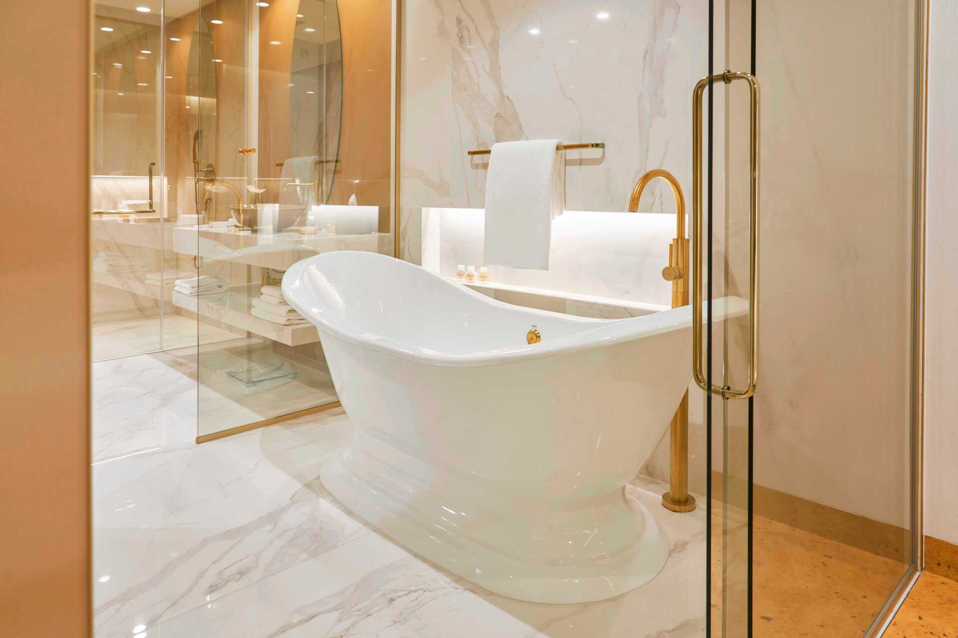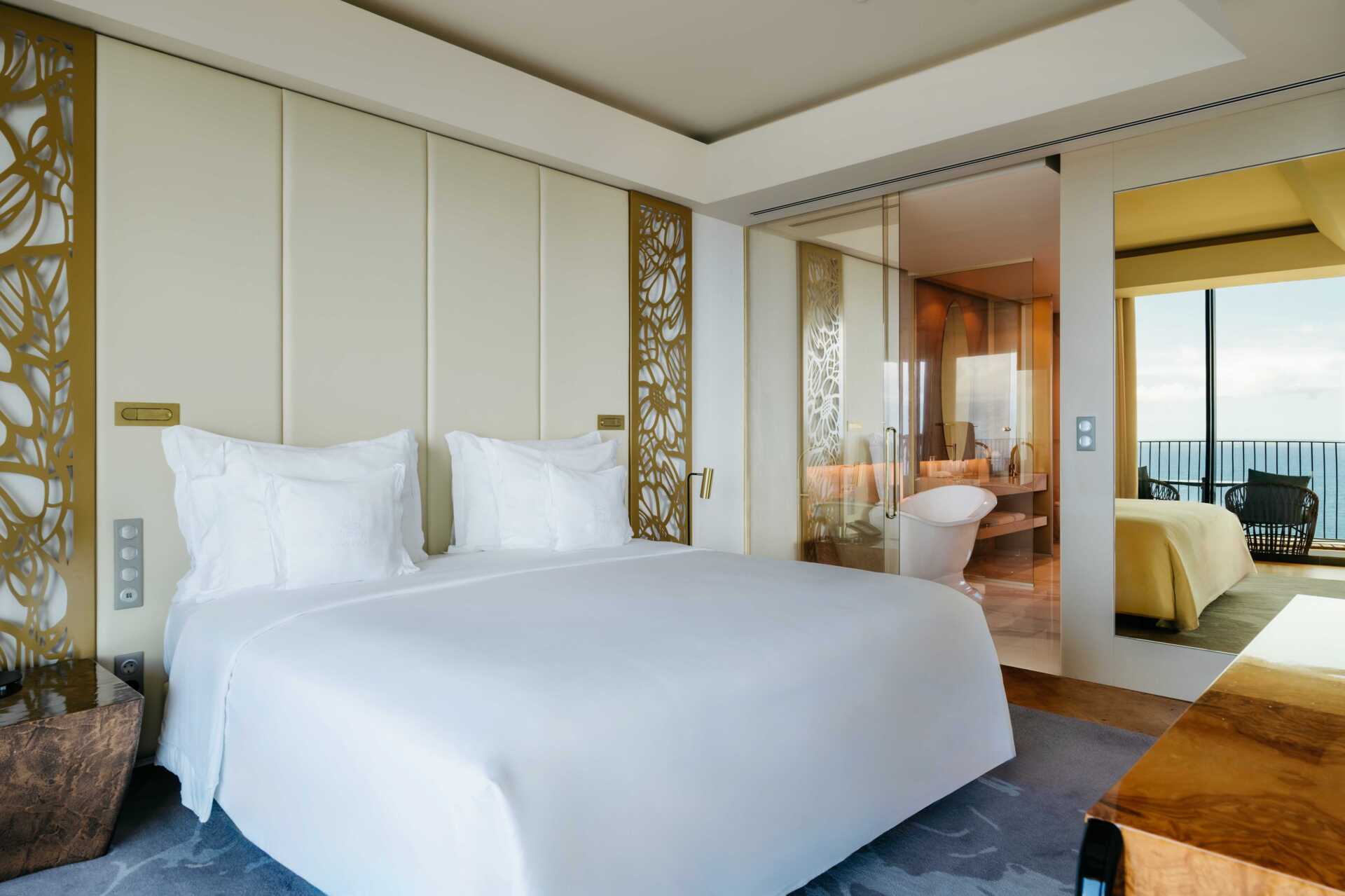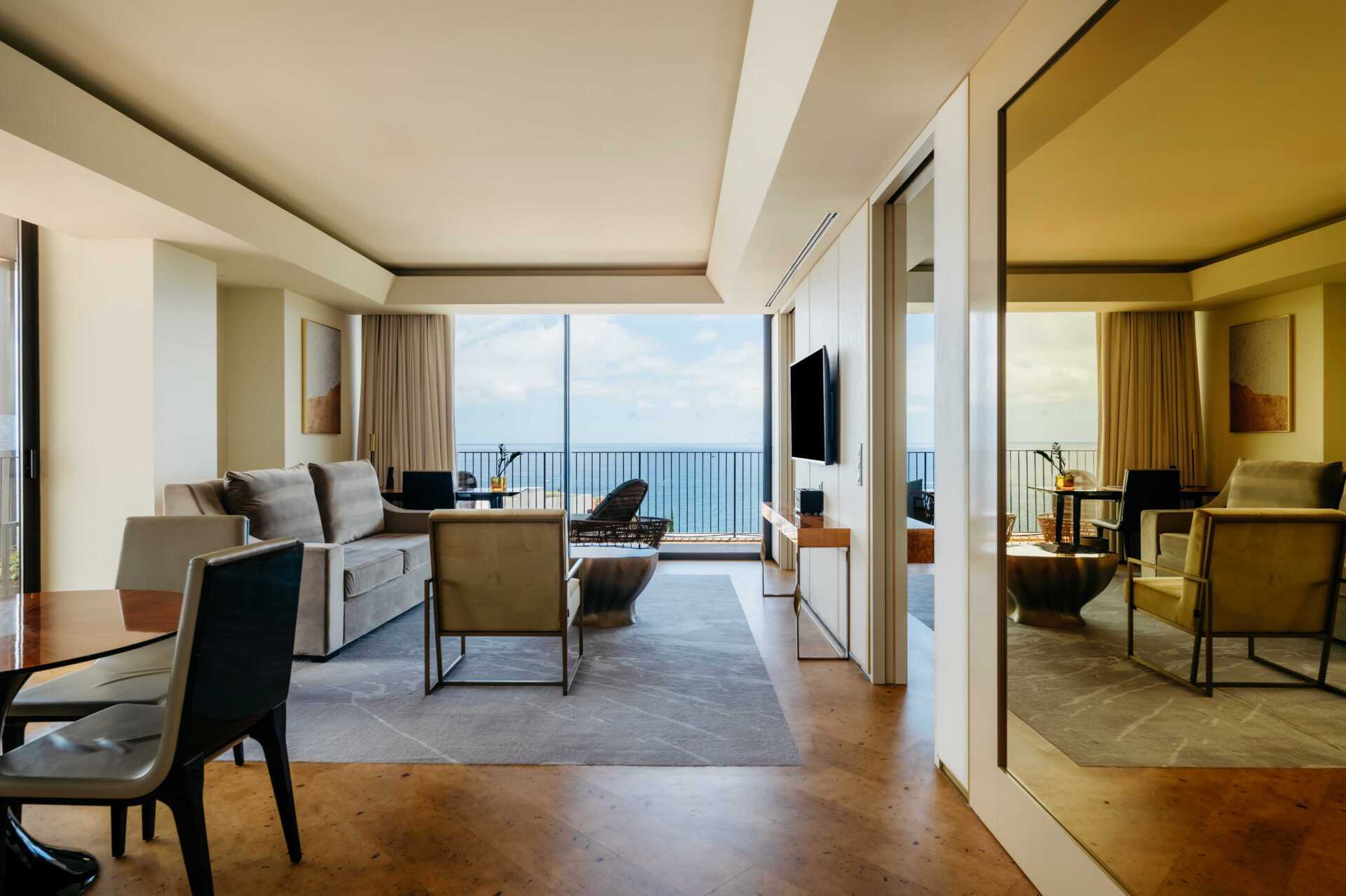 Sviitti parvekkeella ja merinäköalalla. Sviitissä on makuuhuone ja olohuone, jossa on liukuovet, sohva ja ruokailutila. Parivuode tai kaksi yhden hengen sänkyä. Lisävuodemahdollisuus vuodesohvasta. Tyynymenu. Maksuton wifi, ilmastointi ja tallelokero. Minibaari. Vedenkeitin, kahvia ja teetä. Nespresso-kahvinkeitin - kapselit mukana ja täytetään päivittäin. Tv kansainvälisillä kanavilla. Silitysrauta ja -lauta. Kylpytakit ja tossut. Hiustenkuivain. Kylpyhuone koostuu osasta, jossa on kylpyamme ja suihku, osasta, jossa on kaksi pesuallasta, ja osasta, jossa on erillinen suihku ja erillinen wc. Siivous 7 krt/viikko.