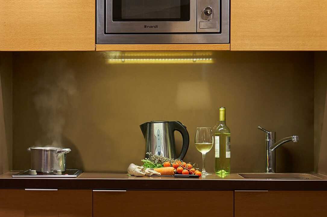 Yksiöitä, joissa yhdistetty olohuone, makuuhuone ja minikeittiö. Parveke rajoitetulla merinäköalalla. Kaksi yhden hengen vuodetta ja mahdollisuus lisävuoteeseen tavallisesta vuoteesta. Maksuton wifi, ilmastointi ja tallelokero. Keittolevyt, jääkaappi pakastelokerolla, mikro, leivänpaahdin, vedenkeitin, kahvin ja teen keittomahdollisuus ja yksinkertainen keittiövarustelu. Kokolattiamatto. Tv kansainvälisillä kanavilla. Hiustenkuivain. Kylpytakki ja tossut. Kylpyhuone, jossa kylpyamme ja wc. Siivous 7 krt/viikko. Huomioithan, että alle 2-vuotiaat lasketaan lisävuoteella majoittuvaksi henkilöksi.