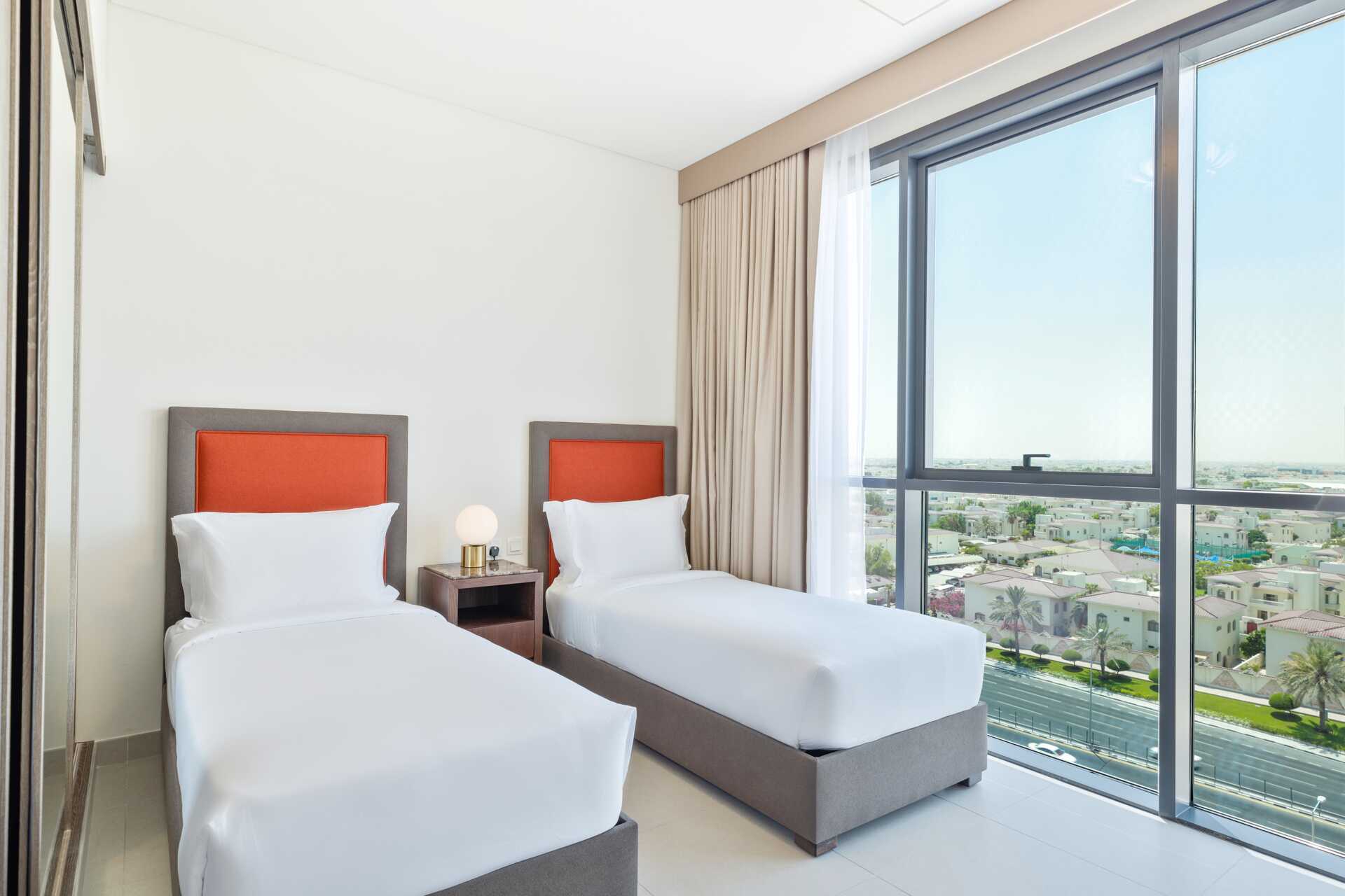 Kolmiossa on parveke. Kaksi makuuhuonetta, olohuone sohvaryhmällä ja ruokailutila sekä keittiö. Toisessa makuuhuoneessa parivuode ja toisessa kaksi erillistä sänkyä. Vuodesohvalla lisävuodemahdollisuus. Maksuton wifi, ilmastointi ja tallelokero. Keittiössä jääkaappi ja pakastin, liesi, mikro, vedenkeitin, astianpesukone ja yksinkertainen keittiövarustus sekä pesukone. Tv kansainvälisillä kanavilla makuuhuoneissa ja olohuoneessa. Silitysrauta ja -lauta. Hiustenkuivain. Kaksi kylpyhuonetta, joissa suihku ja wc. Siivous 7 krt/viikko.