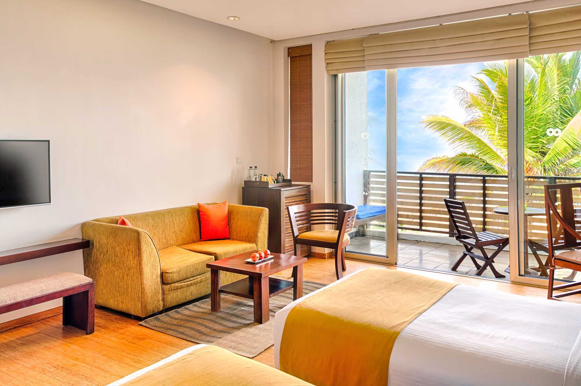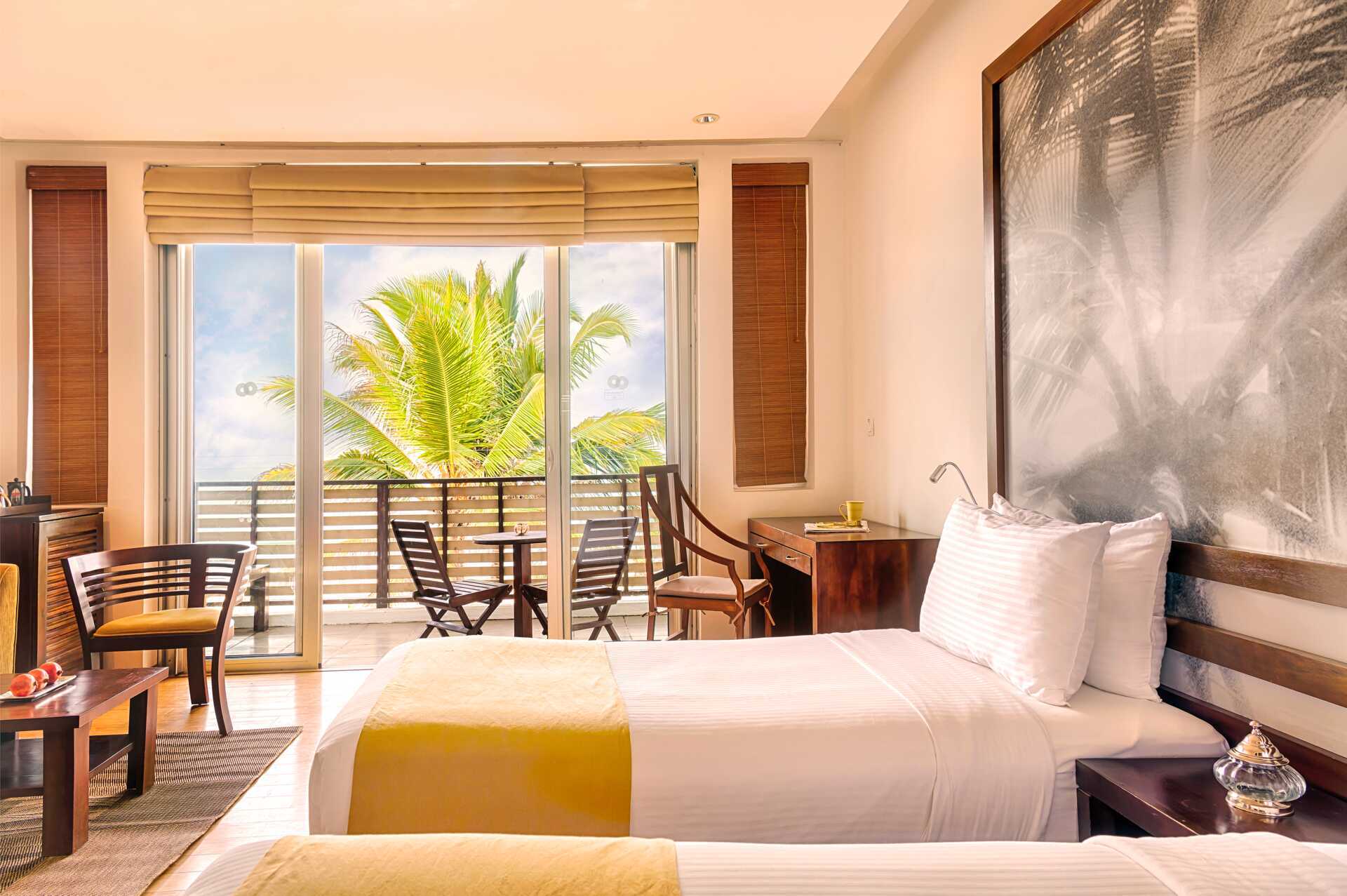 Deluxe-huone parvekkeella tai terassilla. Parivuode tai kaksi yhden hengen sänkyä. Lisävuodemahdollisuus yhdelle hengelle. Maksuton wifi, ilmastointi ja tallelokero. Jääkaappi. Vedenkeitin, kahvia ja teetä. Tv kansainvälisillä kanavilla. Silitysrauta ja -lauta. Kylpytakit ja tossut. Hiustenkuivain. Kylpyhuoneessa kylpyamme, erillinen suihku ja wc. Siivous 7 krt/viikko.