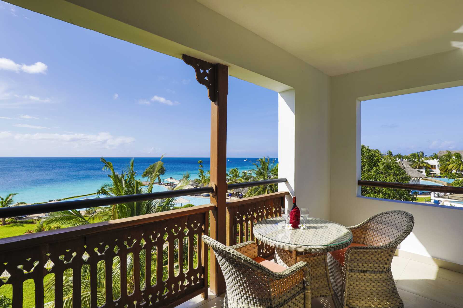 Deluxe-huone parvekkeella tai terassilla. Yksi parisänky tai kaksi leveää erillistä sänkyä. Maksuton wifi, ilmastointi ja tallelokero. Jääkaappi. Vedenkeitin, kahvia ja teetä. Tv kansainvälisillä kanavilla. Hiustenkuivain. Kylpyhuoneessa kaksi pesuallasta, kylpyamme, erillinen suihku ja wc. Siivous 7 krt/viikko.