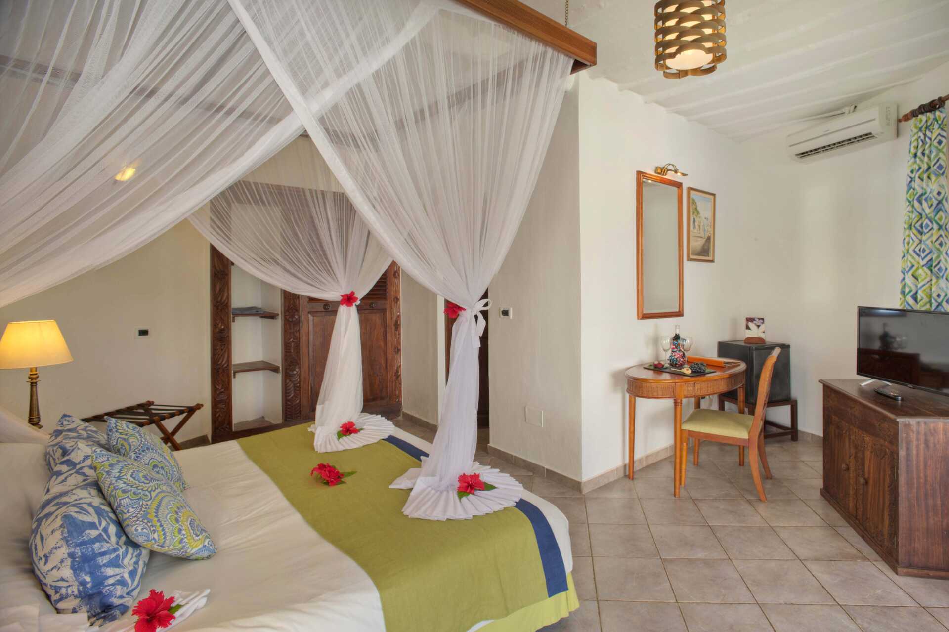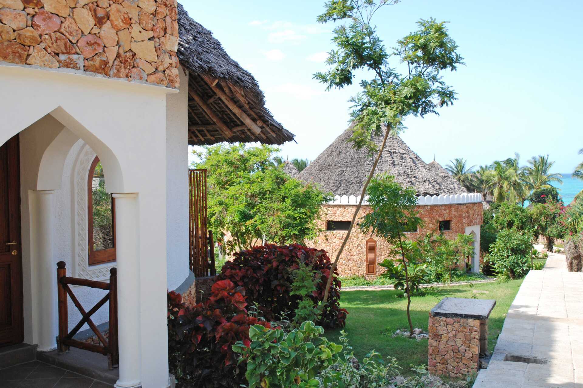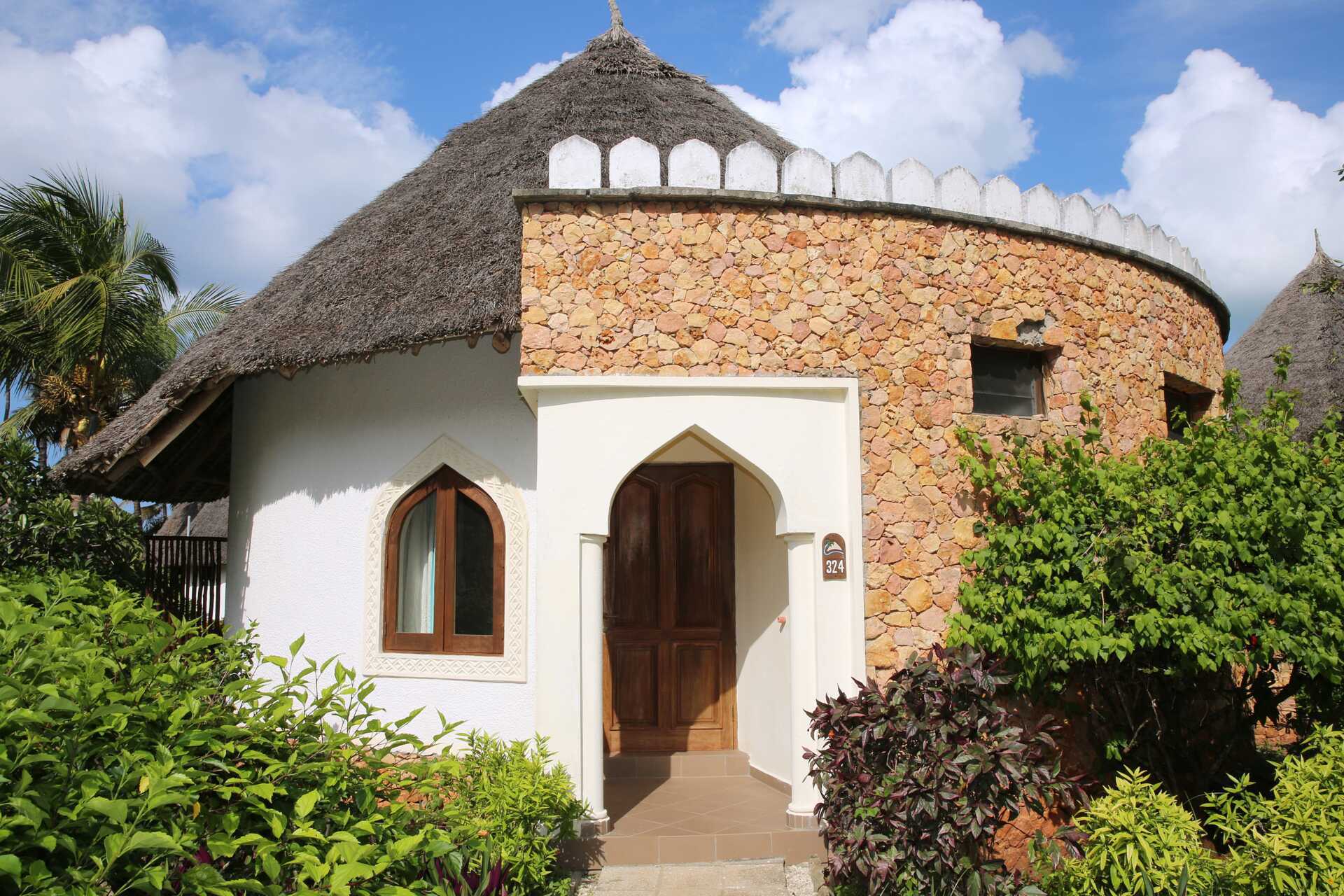 Kahden hengen huone, parvekkeella tai terassilla, osasta merinäköala. Huoneet sijaitsevat pyöreissä olkikattoisissa rakennuksissa hotellin puutarhassa. Huoneet, joista ei ole merinäköalaa, sijaitsevat pyöreissä rakennuksissa, joissa on useita huoneita. Merinäköalalla varustetut huoneet sijaitsevat lähimpänä rantaa ja lähellä pientä uima-allasta. Parivuode tai kaksi yhden hengen sänkyä. Mahdollisuus lisävuoteeseen kokoontaitettavasta vuoteesta. Maksuton wifi, ilmastointi ja tallelokero. Kattotuuletin. Jääkaappi. Hyttysverkot ovat kaikkien sänkyjen yläpuolella. Joissakin huoneissa voi olla tasoeroja huoneessa, jossa on askelma. Hiustenkuivain. Suihku ja wc. Merinäköalalla varustetuissa huoneissa on myös poreallas kylpyhuoneessa. Siivous 7 krt/viikko.