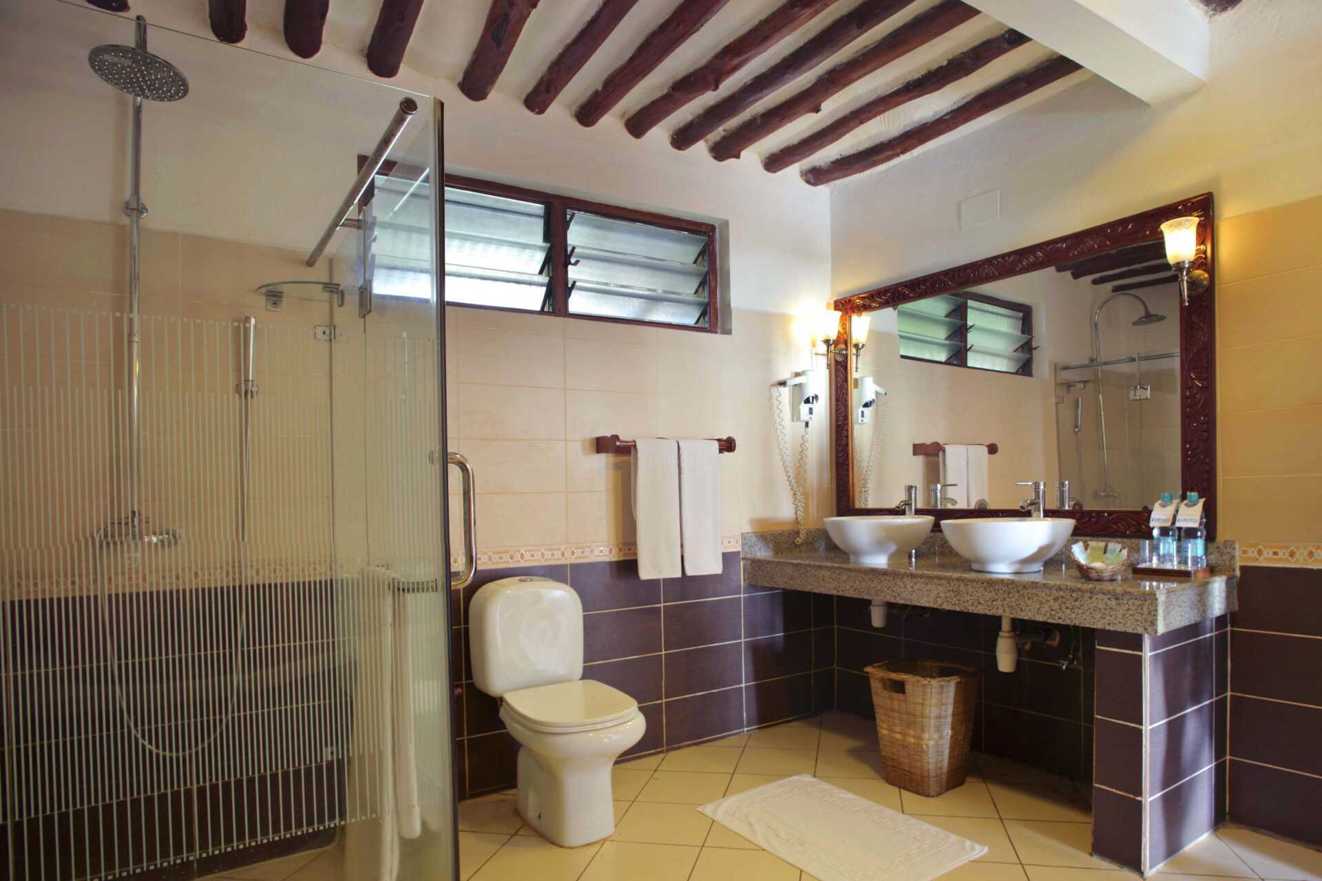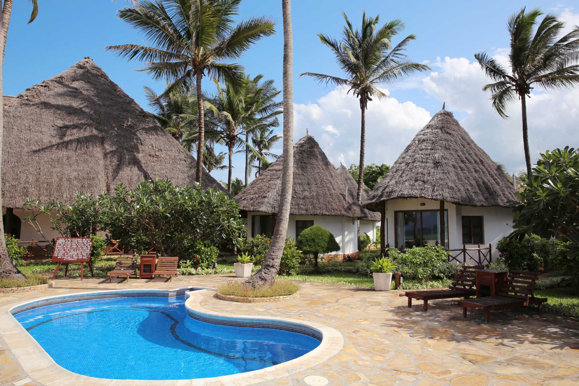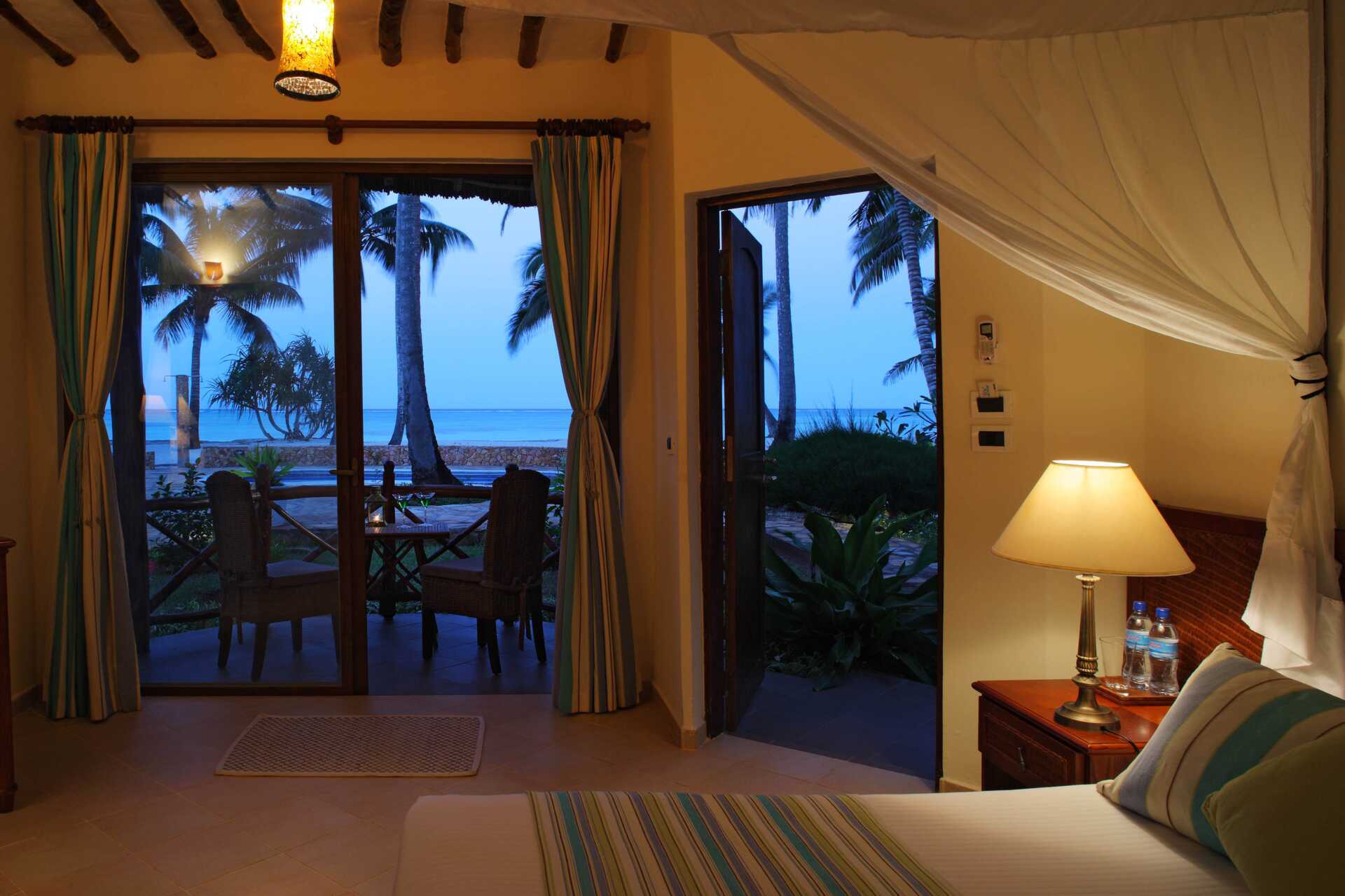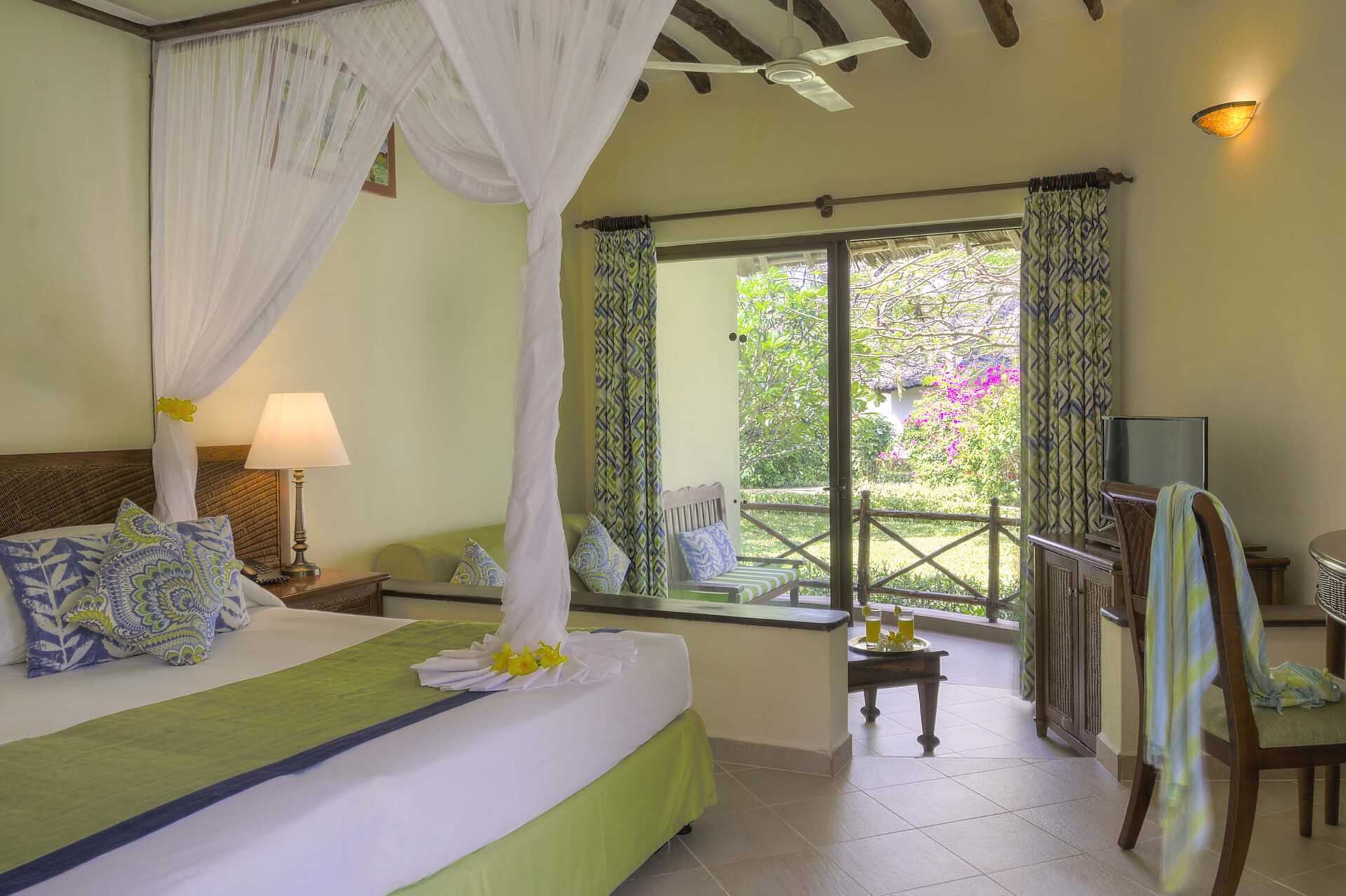 Kahden hengen huone, parvekkeella tai terassilla, osasta merinäköala. Huoneet sijaitsevat pyöreissä olkikattoisissa rakennuksissa hotellin puutarhassa. Huoneet, joista ei ole merinäköalaa, sijaitsevat pyöreissä rakennuksissa, joissa on useita huoneita. Merinäköalalla varustetut huoneet sijaitsevat lähimpänä rantaa ja lähellä pientä uima-allasta. Parivuode tai kaksi yhden hengen sänkyä. Mahdollisuus lisävuoteeseen kokoontaitettavasta vuoteesta. Maksuton wifi, ilmastointi ja tallelokero. Kattotuuletin. Jääkaappi. Hyttysverkot ovat kaikkien sänkyjen yläpuolella. Joissakin huoneissa voi olla tasoeroja huoneessa, jossa on askelma. Hiustenkuivain. Suihku ja wc. Merinäköalalla varustetuissa huoneissa on myös poreallas kylpyhuoneessa. Siivous 7 krt/viikko.