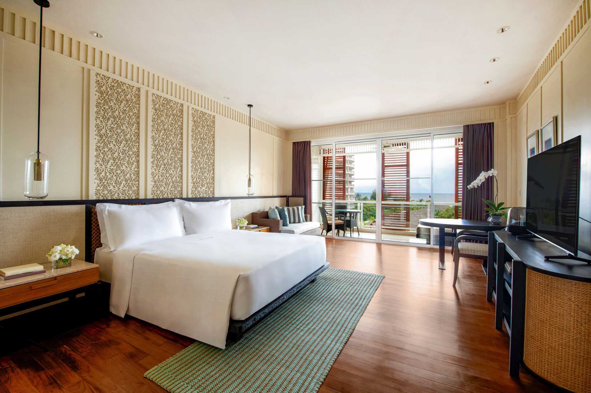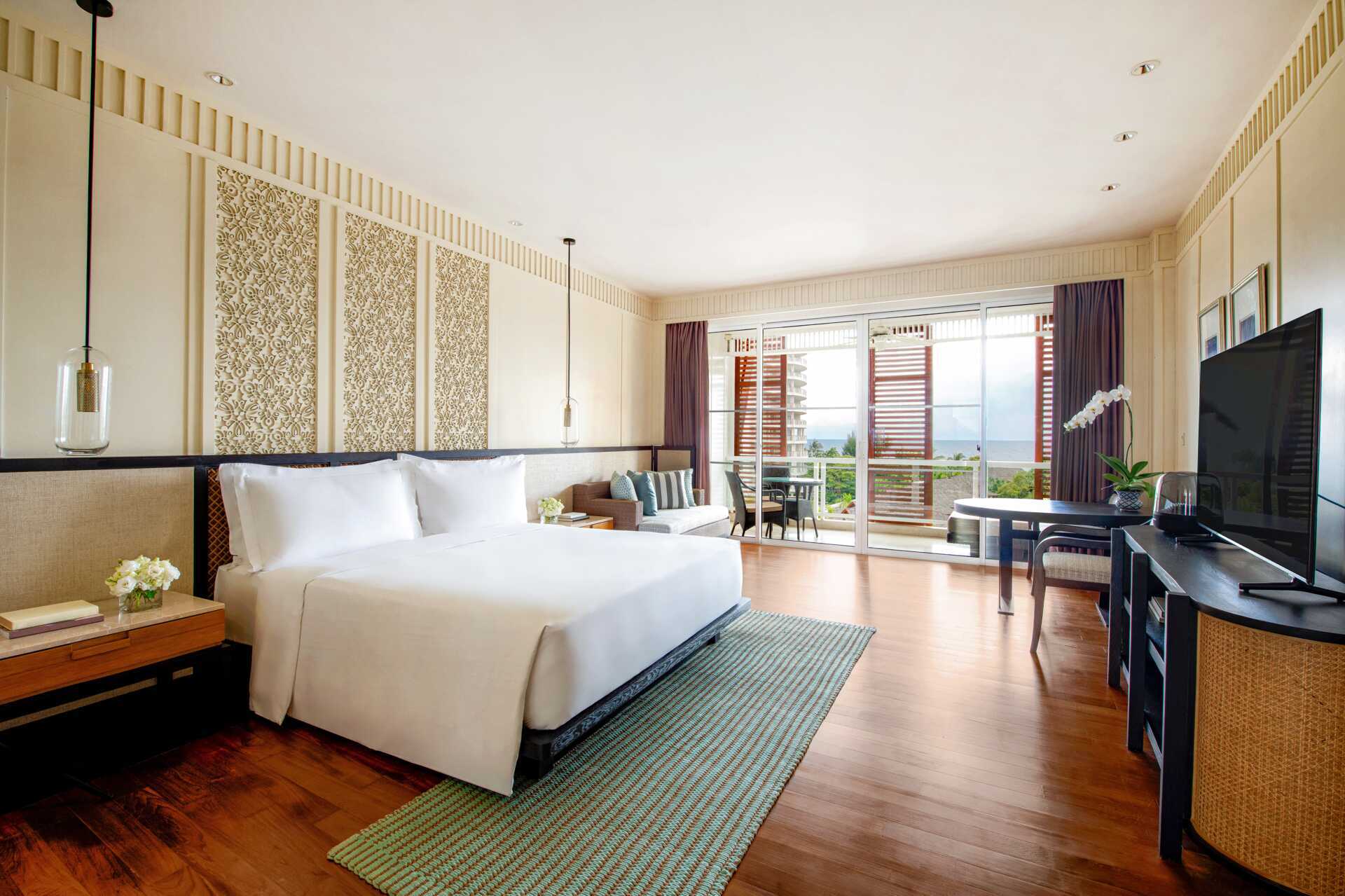 Deluxe-huone plus parvekkeella ja merinäköalalla. Parvekkeella on leposohva ja pöytä ja tuolit. Huoneet sijaitsevat Beach Wing -siivessä, ja niitä kutsutaan nimellä Premium Room. Parivuode tai kaksi yhden hengen vuodetta. Mahdollisuus lisävuoteisiin. Maksuton wifi, ilmastointi ja tallelokero. Minibaari, yksi vesipullo päivässä sisältyy hintaan. Vedenkeitin, kahvia ja teetä. Tv kansainvälisillä kanavilla. Silitysrauta ja -lauta. Kylpytakit ja tossut. Hiustenkuivain. Kylpyhuoneessa kylpyamme, erillinen suihku ja wc. Siivous 7 krt/viikko. Alle 2-vuotiaat lapset lasketaan lisävuoteella majoittuviksi henkilöiksi.