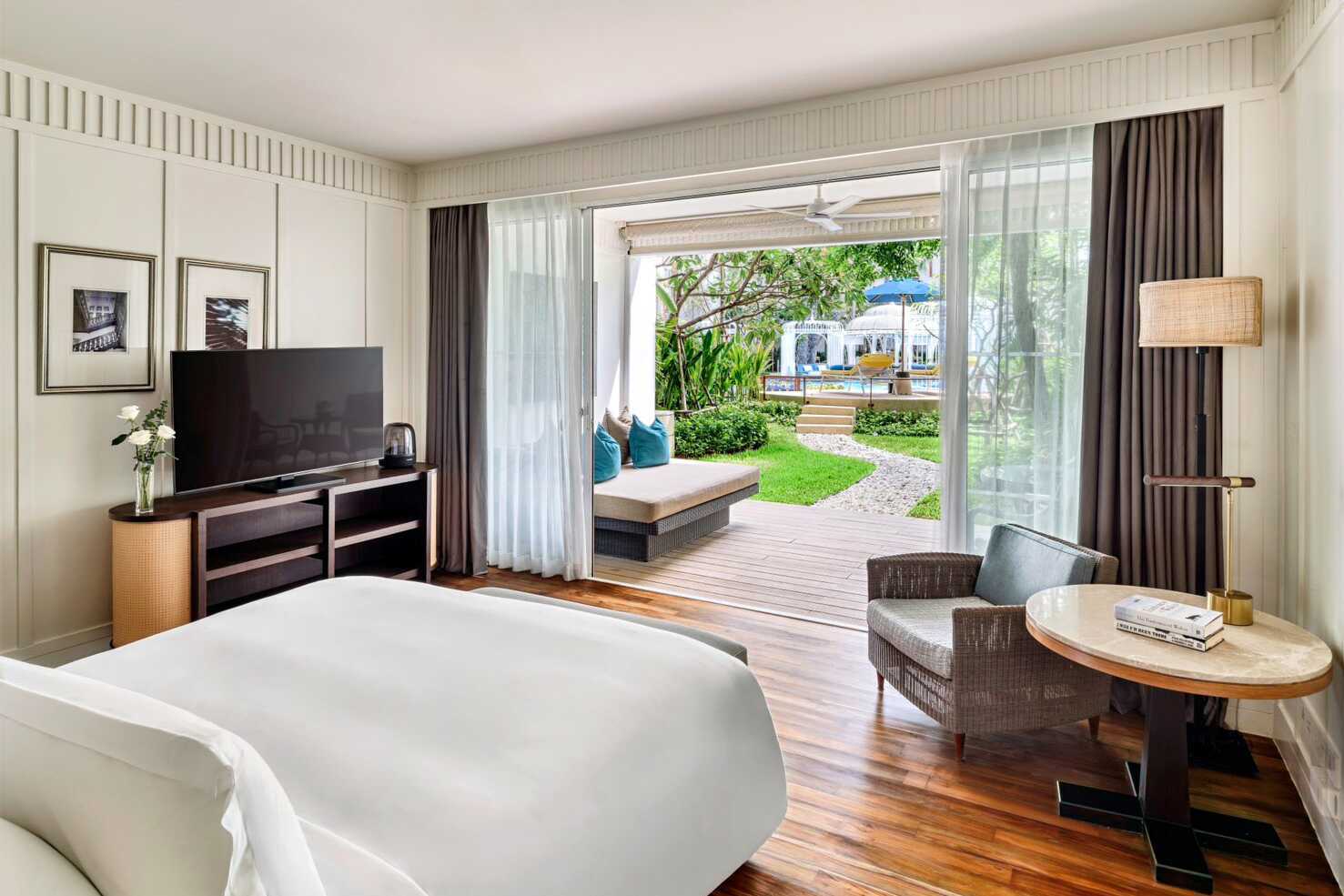 Sviitti maaterassilla ja pienen sohvan kanssa, josta voit nauttia trooppisesta puutarhasta. Sviitti sijaitsee Beach Wingissä ja sitä kutsutaan nimellä Private garden sviitti. Parivuode. Mahdollisuus lisävuoteisiin. Maksuton wifi, ilmastointi ja tallelokero. Minibaari, yksi vesipullo päivässä sisältyy hintaan. Vedenkeitin, kahvia ja teetä. Tv satelliittikanavilla. Silitysvälineet. Kylpytakit ja tossut. Hiustenkuivain. Suihku ja wc. Väliseinä makuuhuoneen ja kylpyhuoneen välillä. Siivous 7 krt/viikko. Alle 2-vuotiaat lapset lasketaan lisävuoteella majoittuviksi henkilöiksi.