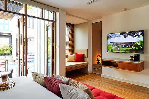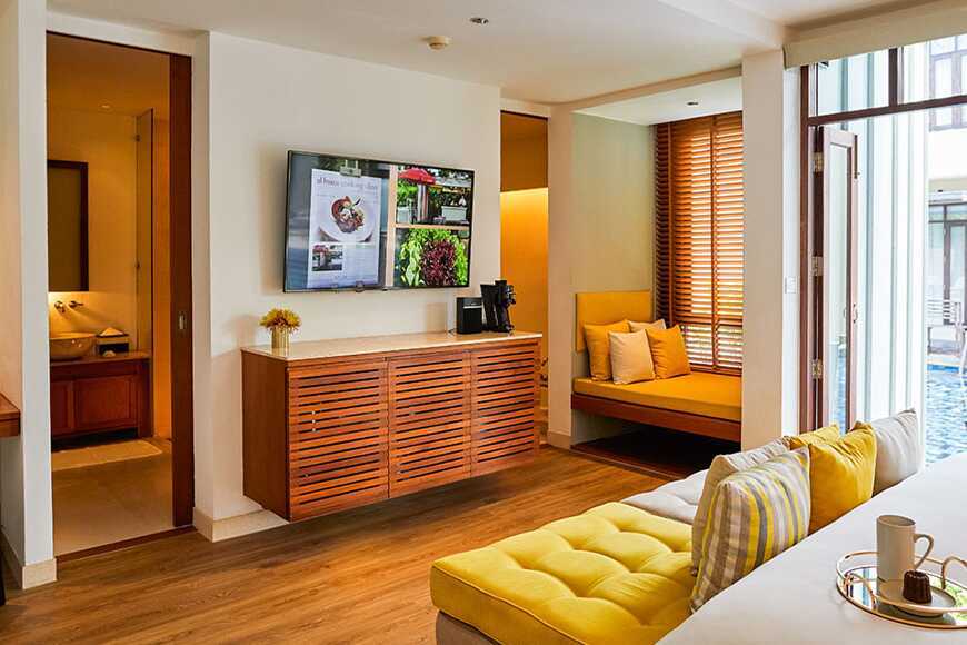 Deluxe-sviittejä, joiden ulkotilasta pääsy jaetulle uima-altaalle. Parivuode tai kaksi yhden hengen sänkyä. Maksuton wifi, ilmastointi ja tallelokero. Minibaari. Kahvinkeitin. Vedenkeitin, kahvia ja teetä. Tv kansainvälisillä kanavilla. Silitysrauta ja -lauta. Kylpytakit ja tossut. Hiustenkuivain. Kylpyhuoneessa jacuzzi, erillinen suihku ja wc. Siivous 7 krt/viikko.