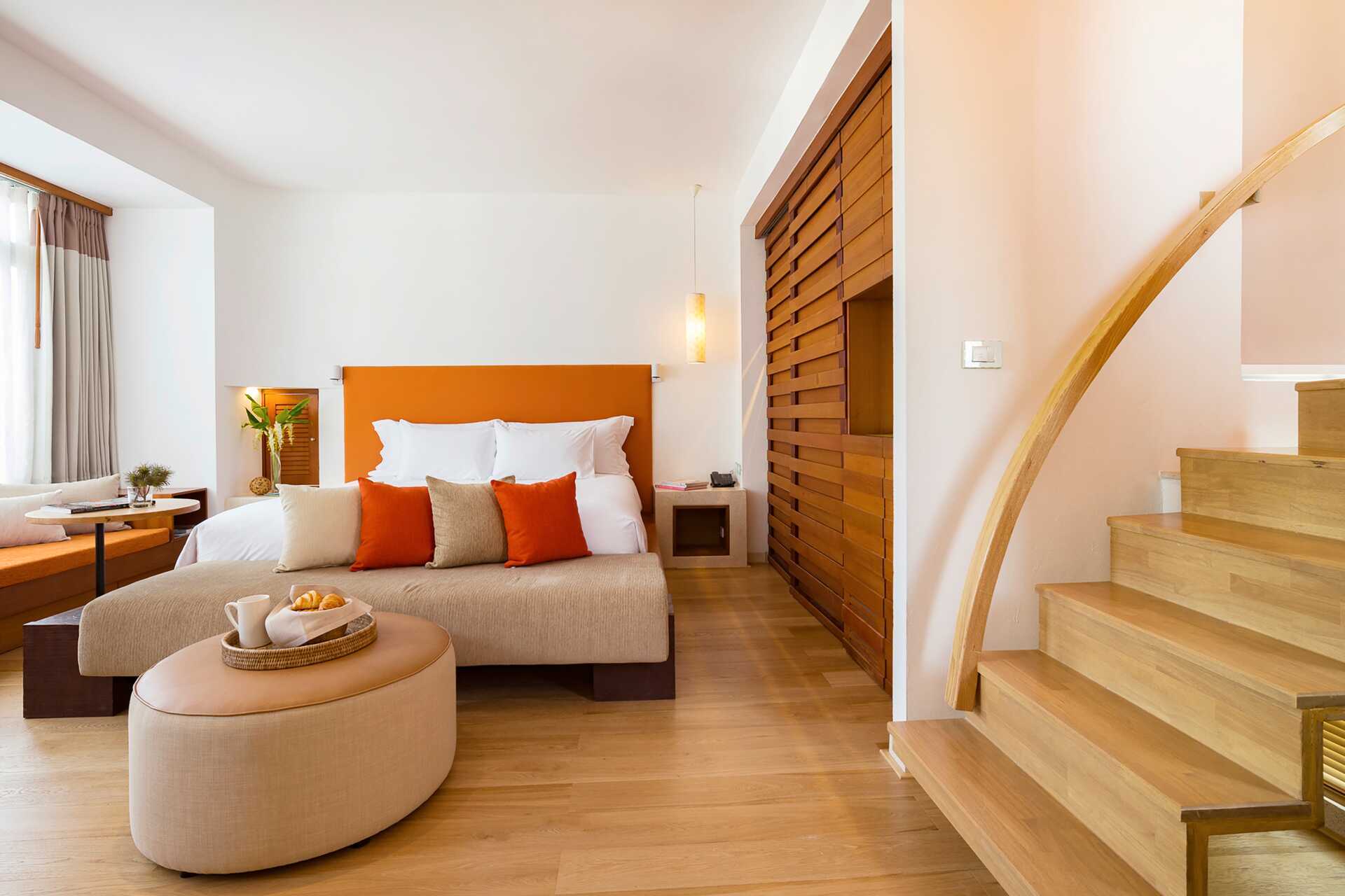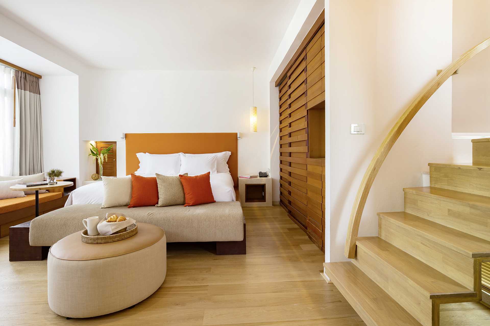 Sviittejä, joissa on kattoterassi ja rajoitettu merinäköala. Portaat kalustetulle kattoterassille, jossa on jacuzzi. Rakennusten välistä kulkee portaat altaalle. Parivuode tai erilliset vuoteet. Minibaari sekä kahvin ja teen keittomahdollisuus. Tv satelliittikanavilla. Maksuton wifi, ilmastointi ja tallelokero. Silitysvälineet. Hiustenkuivain, kylpytakki ja tossut. Kylpyamme ja wc. Siivous 7 krt/viikko.