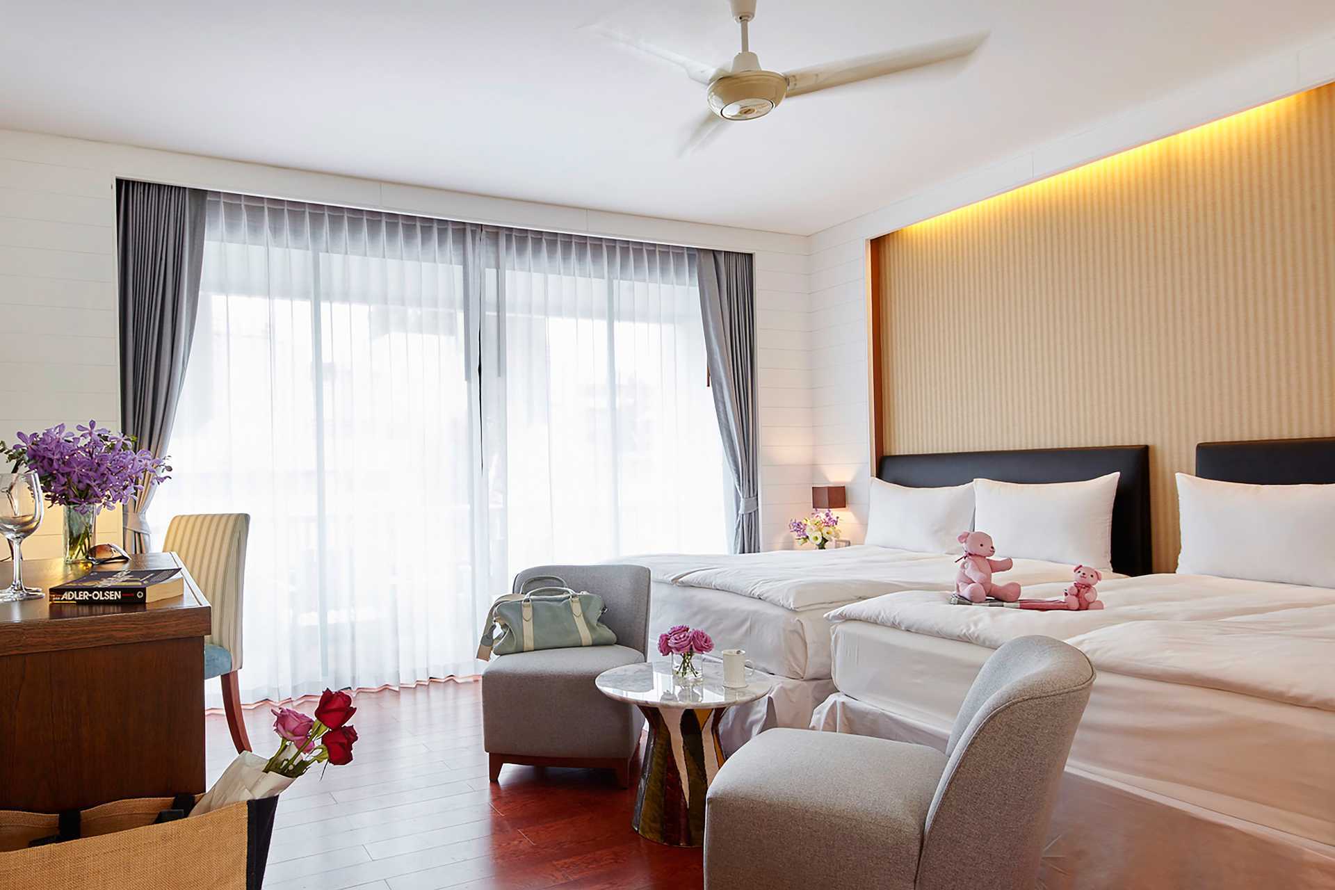Deluxe-huoneita, joissa on maaparveke. Parivuode tai erilliset vuoteet. Mahdollisuus lisävuoteeseen vuodesohvasta. Neljäs ja viides henkilö majoittuvat kokoontaitettavassa vuoteessa. Maksuton wifi, ilmastointi ja tallelokero. Maksuton minibaari (ei alkoholia), sekä kahvin ja teen keittomahdollisuus. Tv kansainvälisillä kanavilla. Hiustenkuivain. Kylpyamme/suihku ja wc. Siivous 7 krt/viikko.