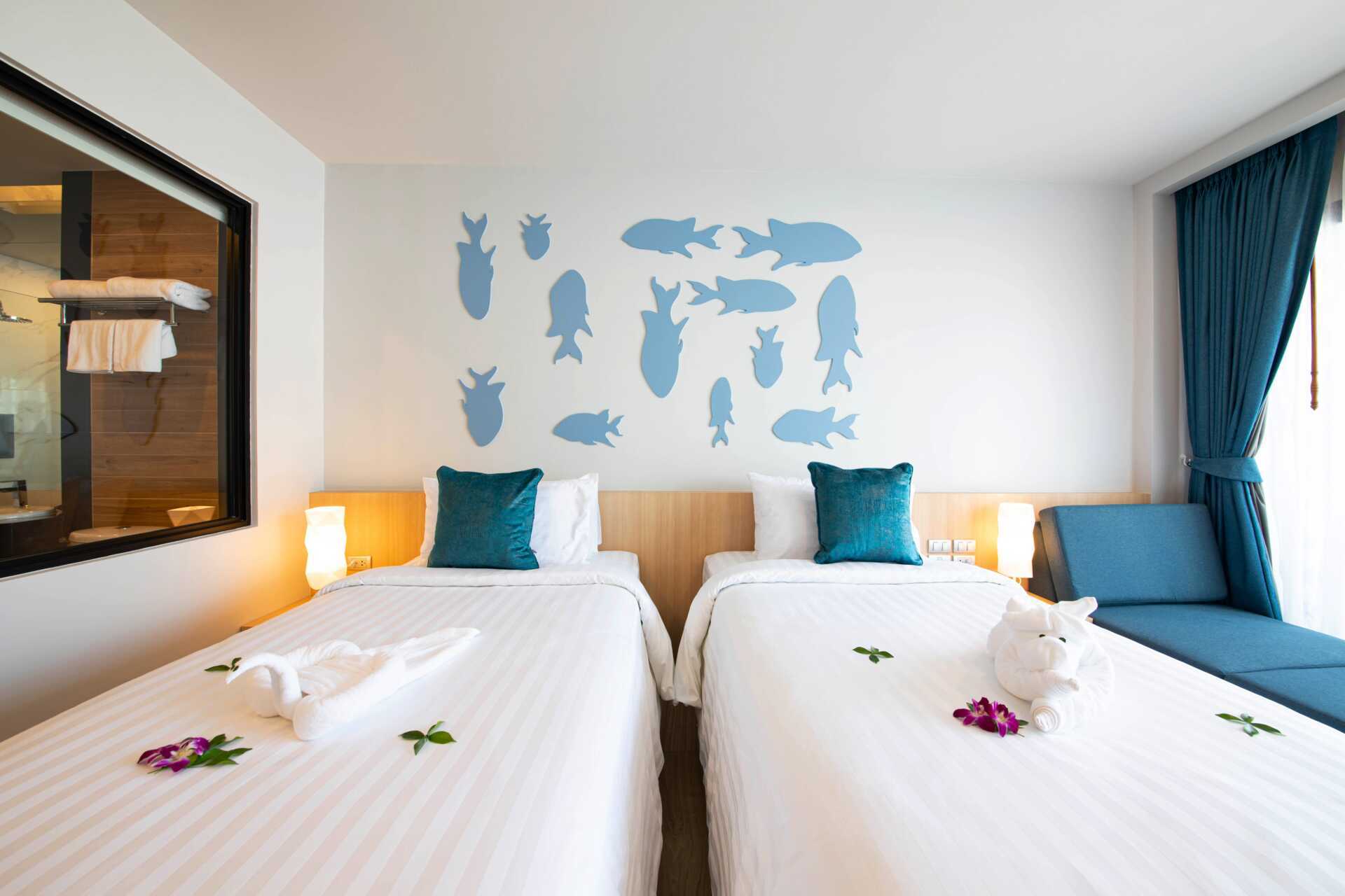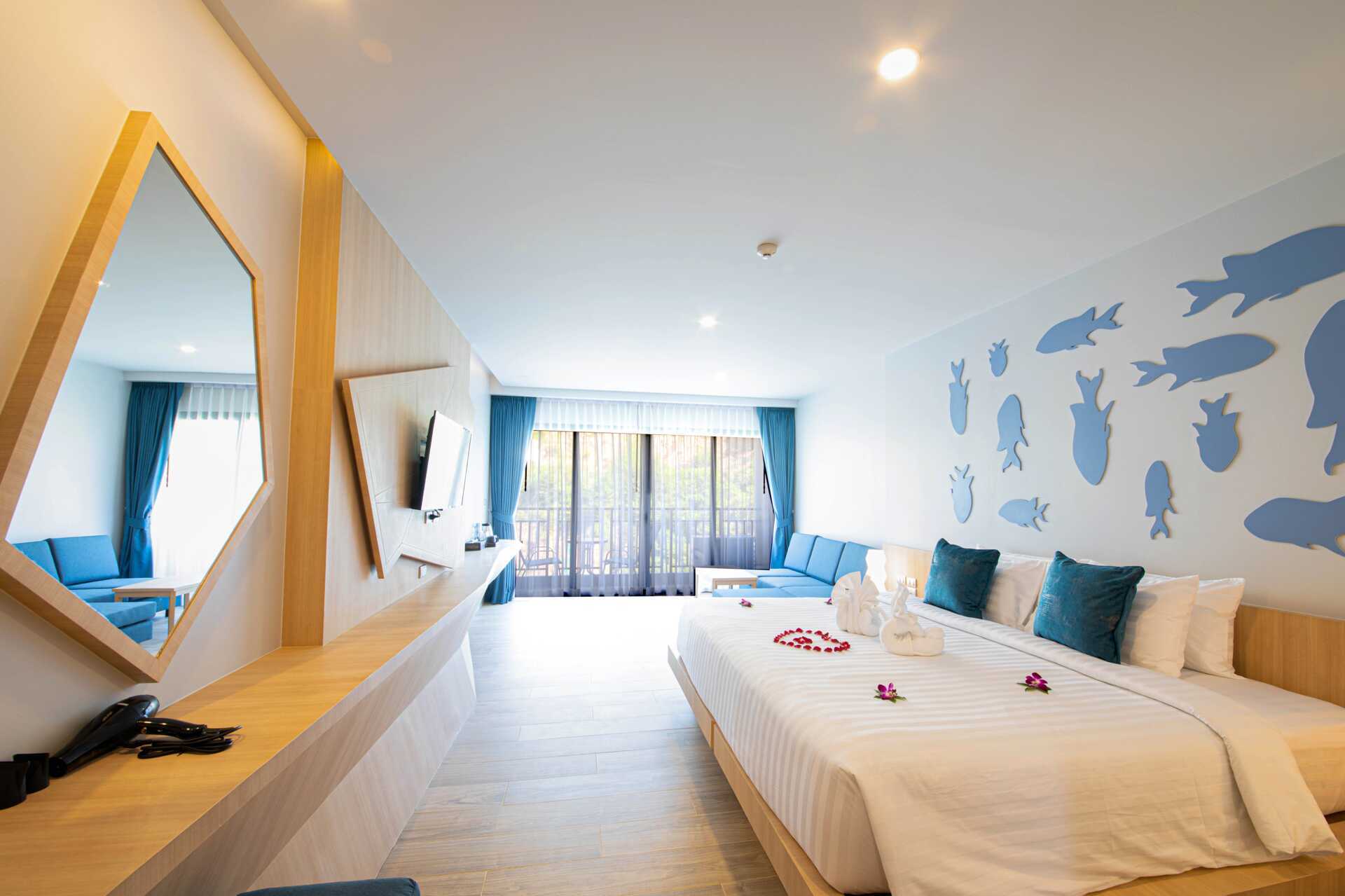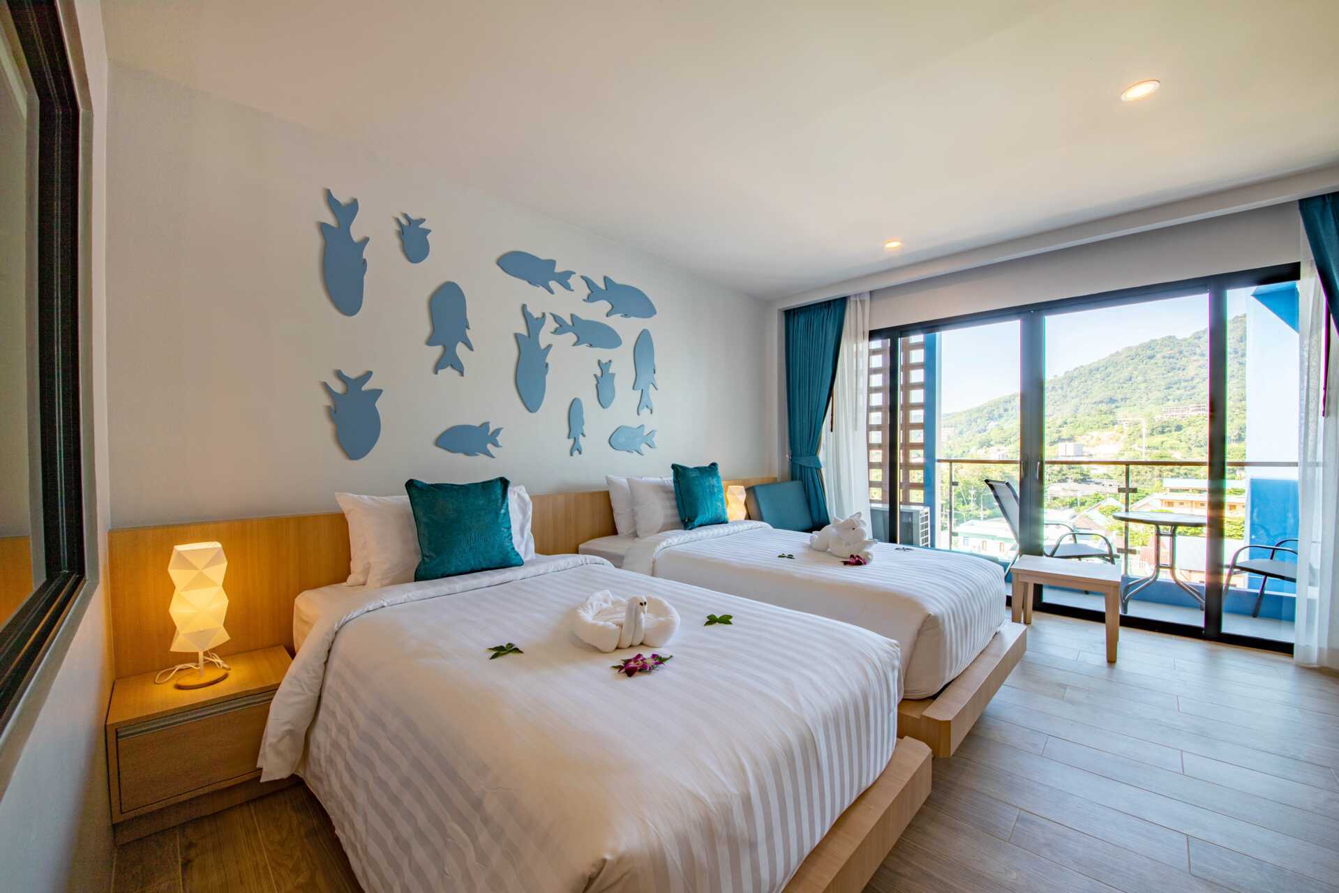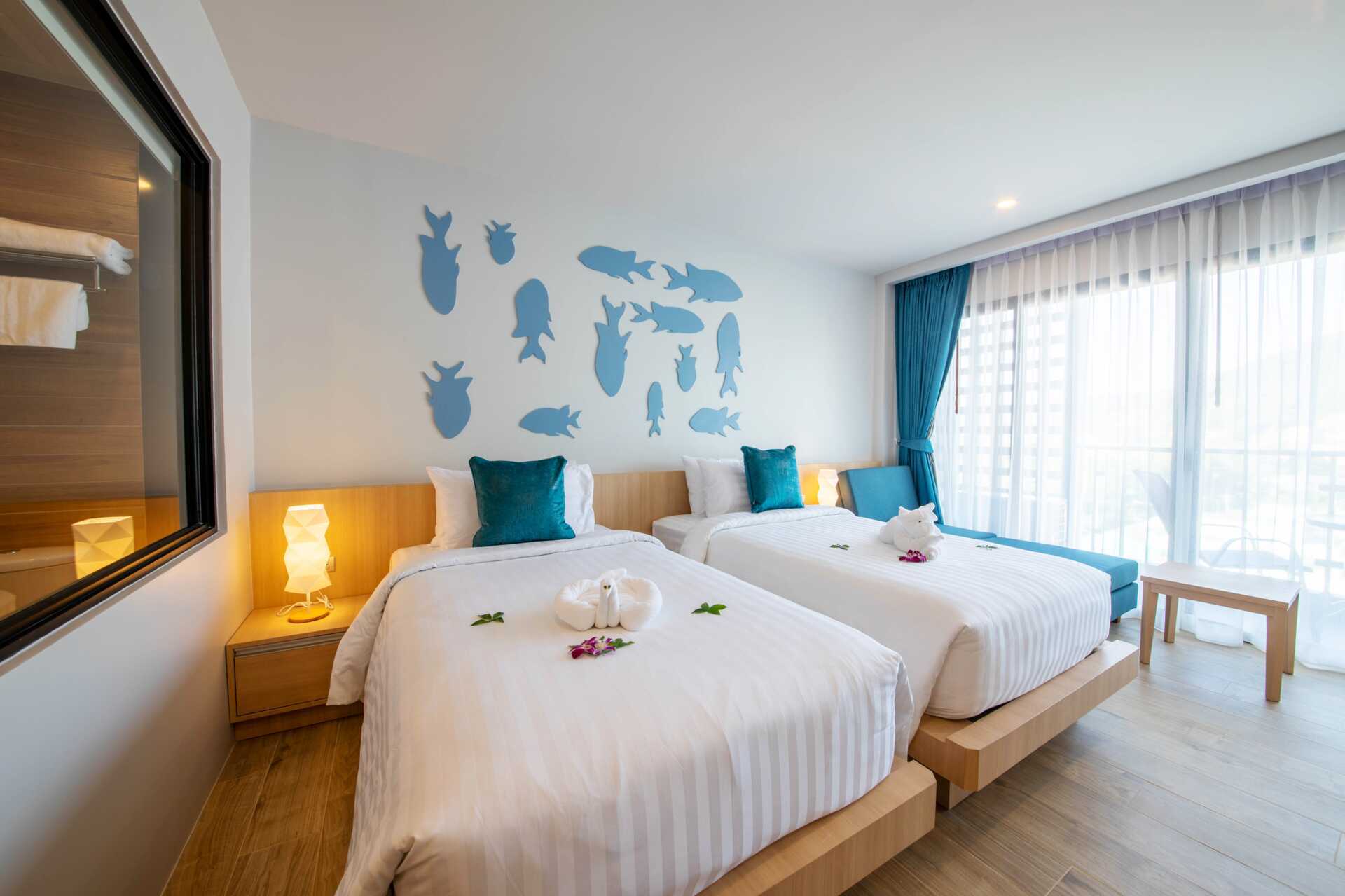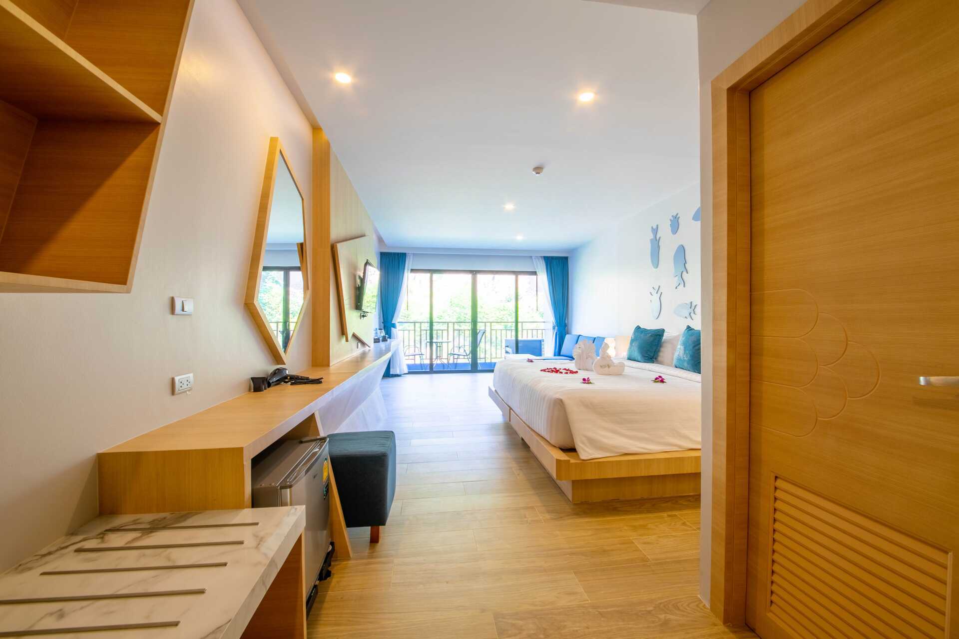 Deluxe-huone parvekkeella. Parivuode ja mahdollisuus lisävuoteeseen yhden hengen vuoteessa. Maksuton wifi, ilmastointi ja tallelokero. Jääkaappi. Vedenkeitin, kahvia ja teetä. Tv kansainvälisillä kanavilla. Kylpytakit ja tossut. Hiustenkuivain. Suihku ja wc. Siivous 7 krt/viikko.