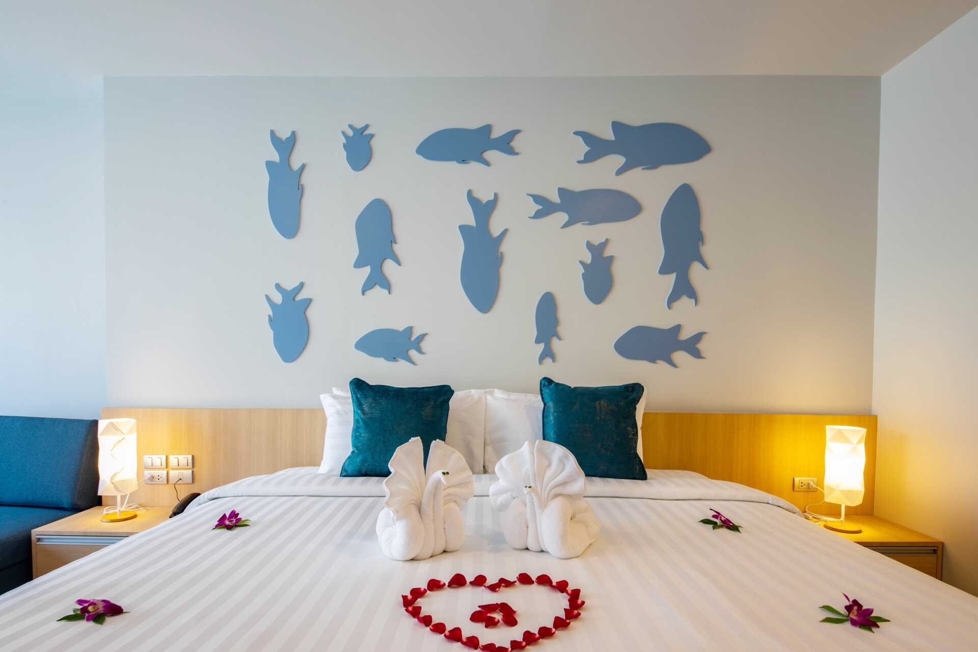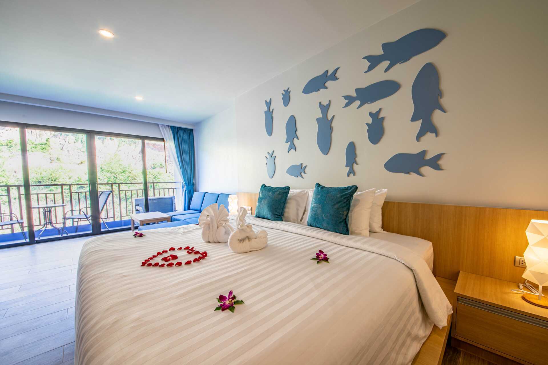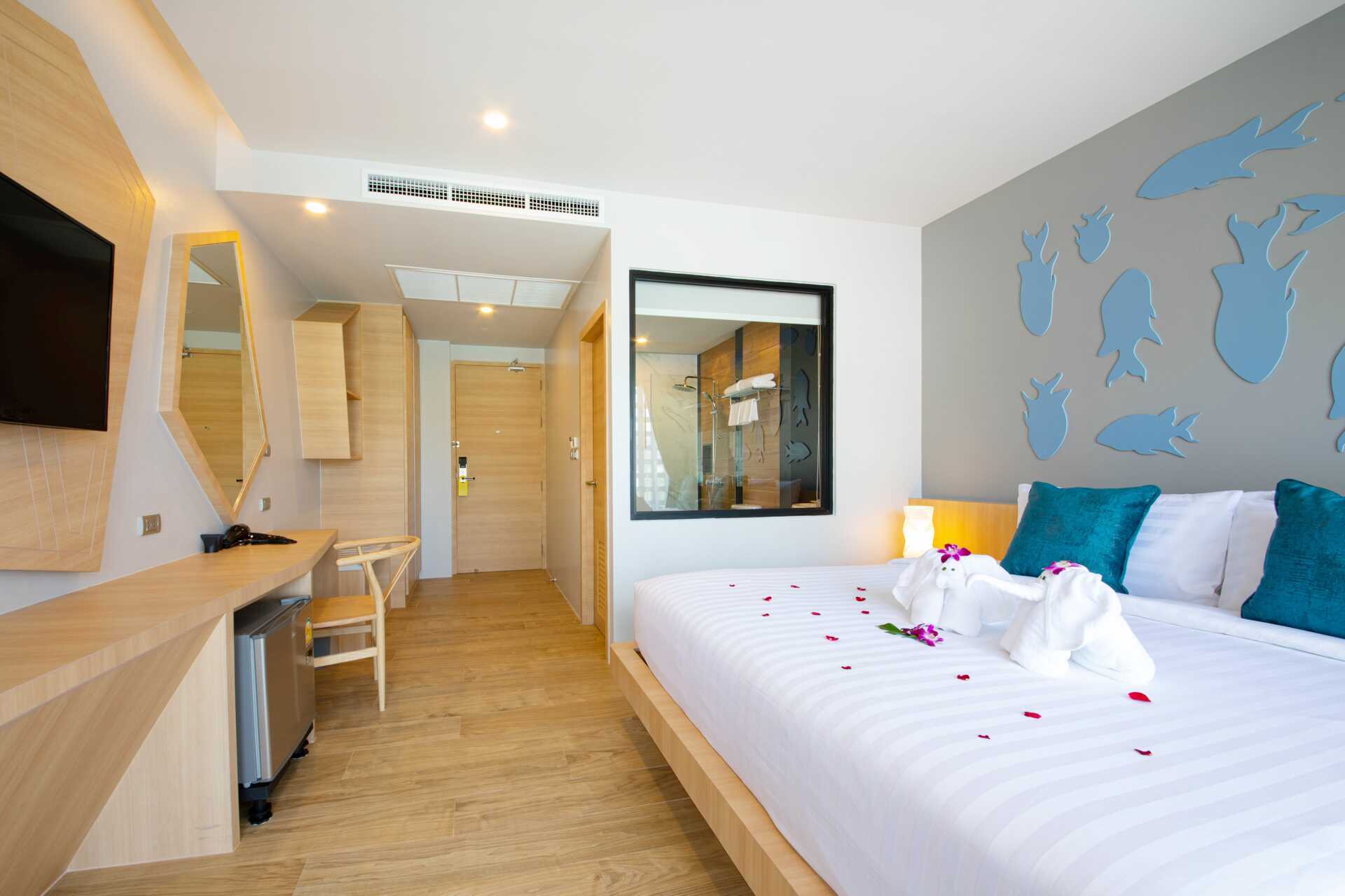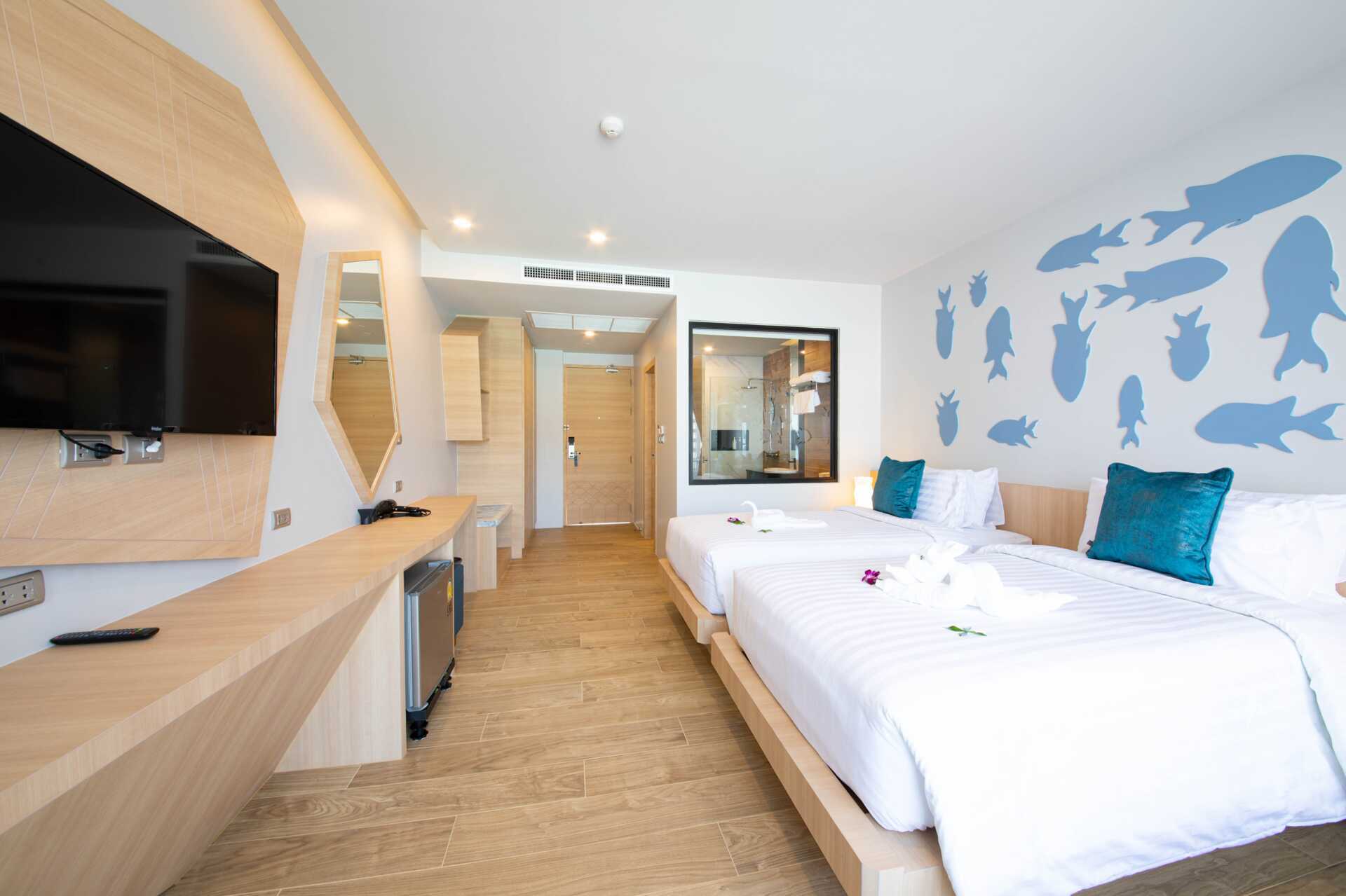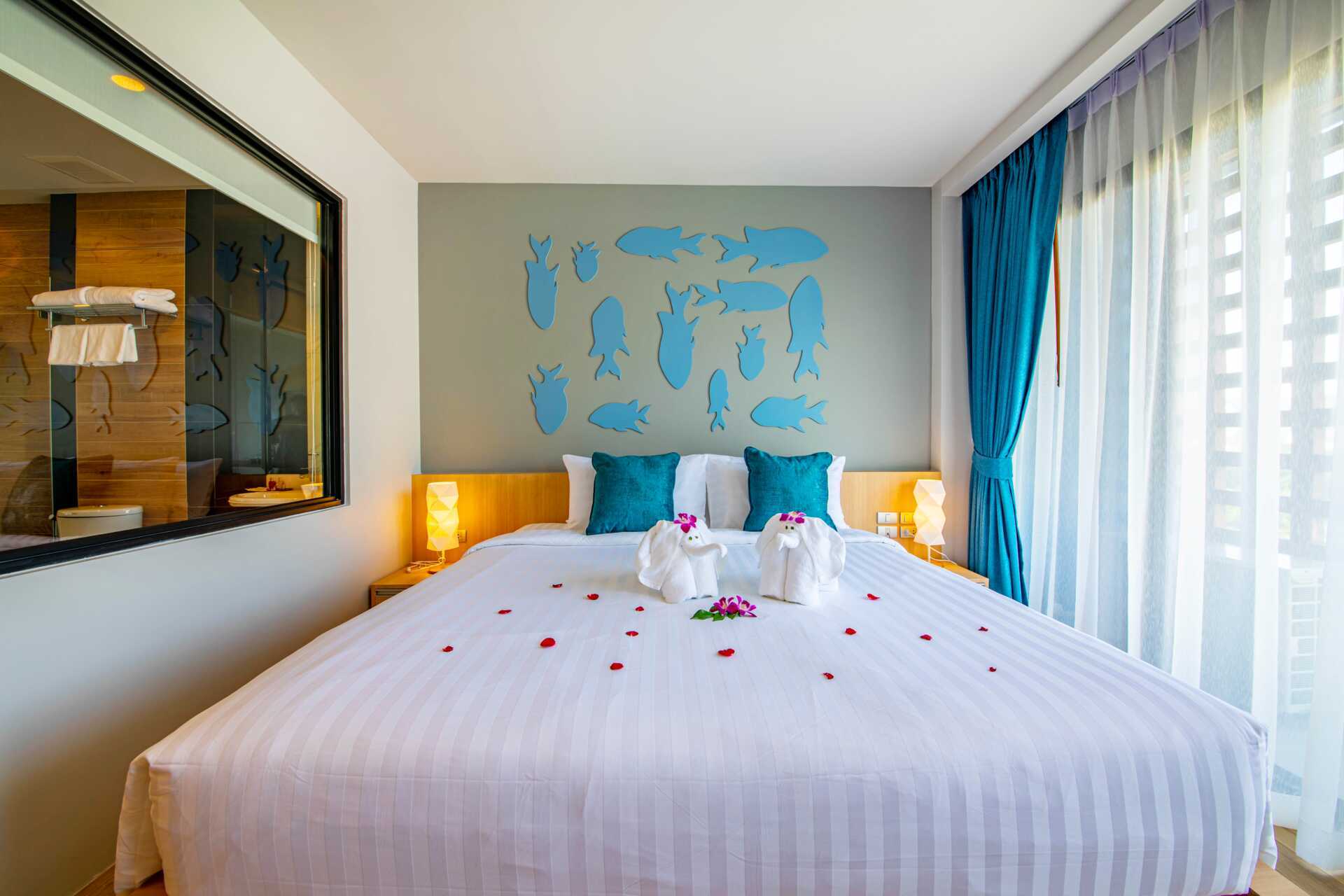Deluxe-huone parvekkeella. Parivuode ja mahdollisuus lisävuoteeseen yhden hengen vuoteessa. Maksuton wifi, ilmastointi ja tallelokero. Jääkaappi. Vedenkeitin, kahvia ja teetä. Tv kansainvälisillä kanavilla. Kylpytakit ja tossut. Hiustenkuivain. Suihku ja wc. Siivous 7 krt/viikko.