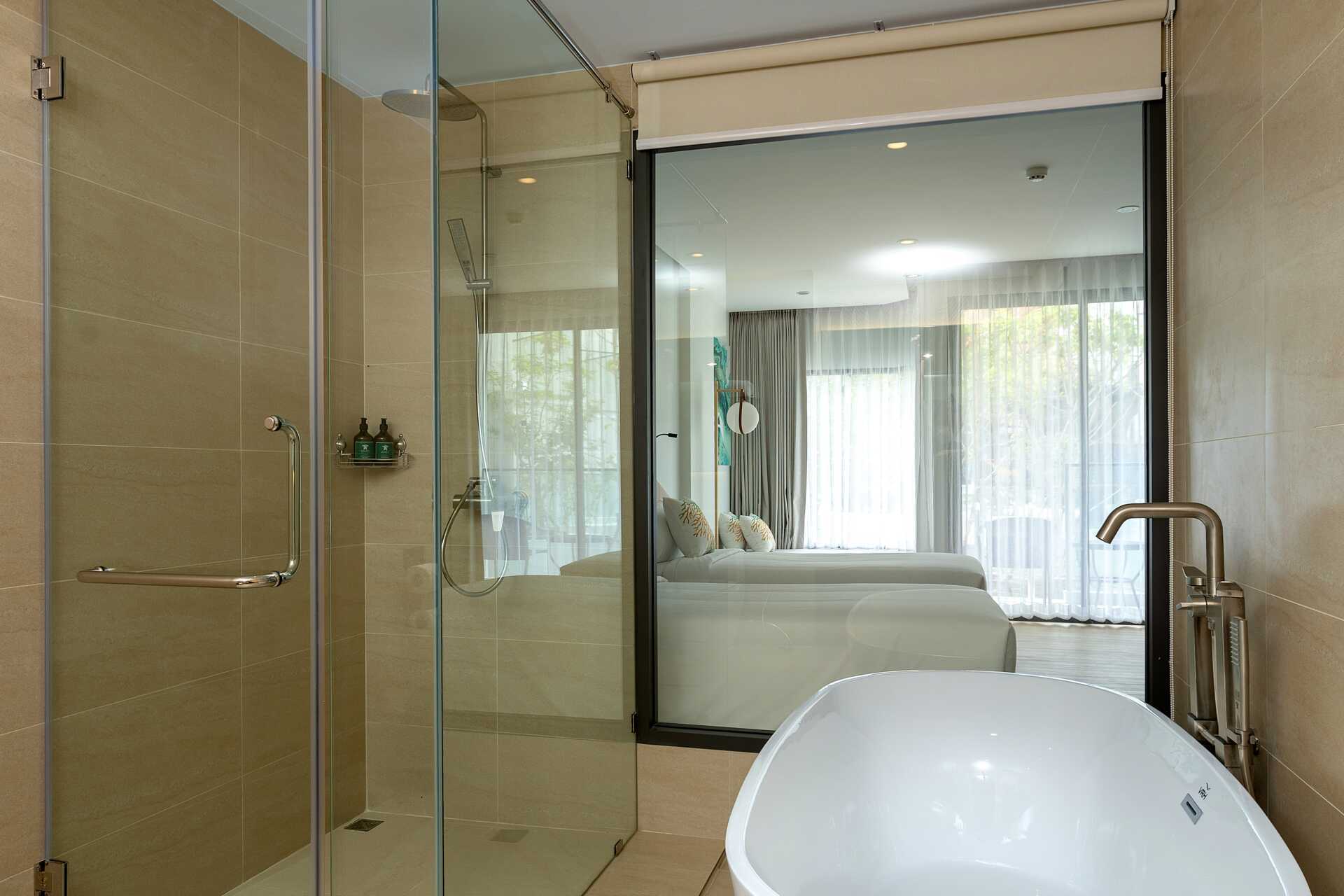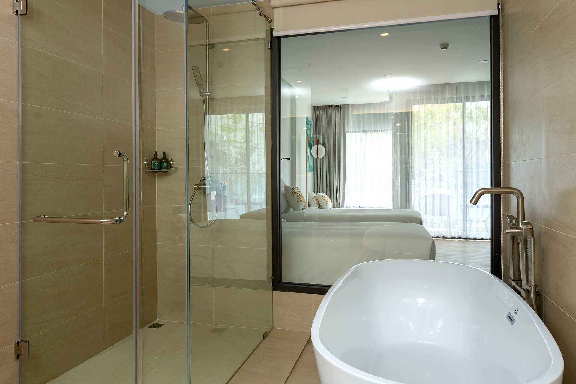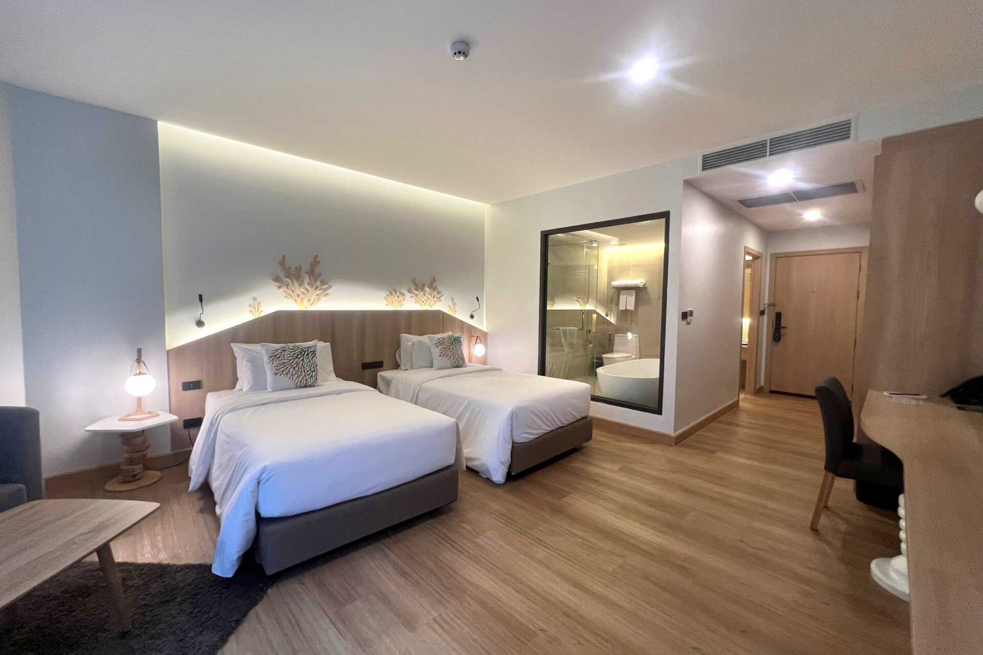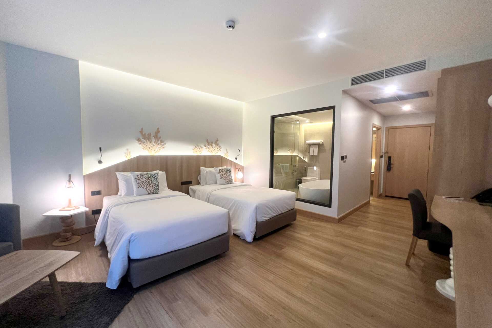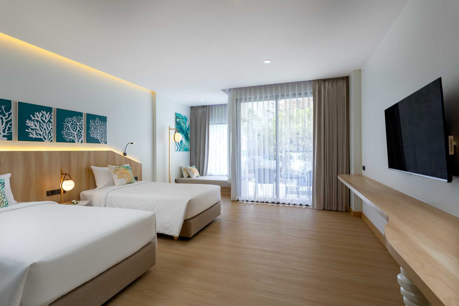 Deluxe-huoneita, joissa on ulkotila ja pääsy jaetulle altaalle. Parivuode ja yhden hengen vuode. Lisävuodemahdollisuus olemassa oleviin vuoteisiin. Maksuton wifi, ilmastointi ja tallelokero. Jääkaappi. Vedenkeitin, kahvia ja teetä. Mikro. Tv kansainvälisillä kanavilla. Hiustenkuivain. Suihku ja wc. Siivous 7 krt/viikko. Alle 2-vuotiaat lapset katsotaan majoittuviksi lisävuoteessa.