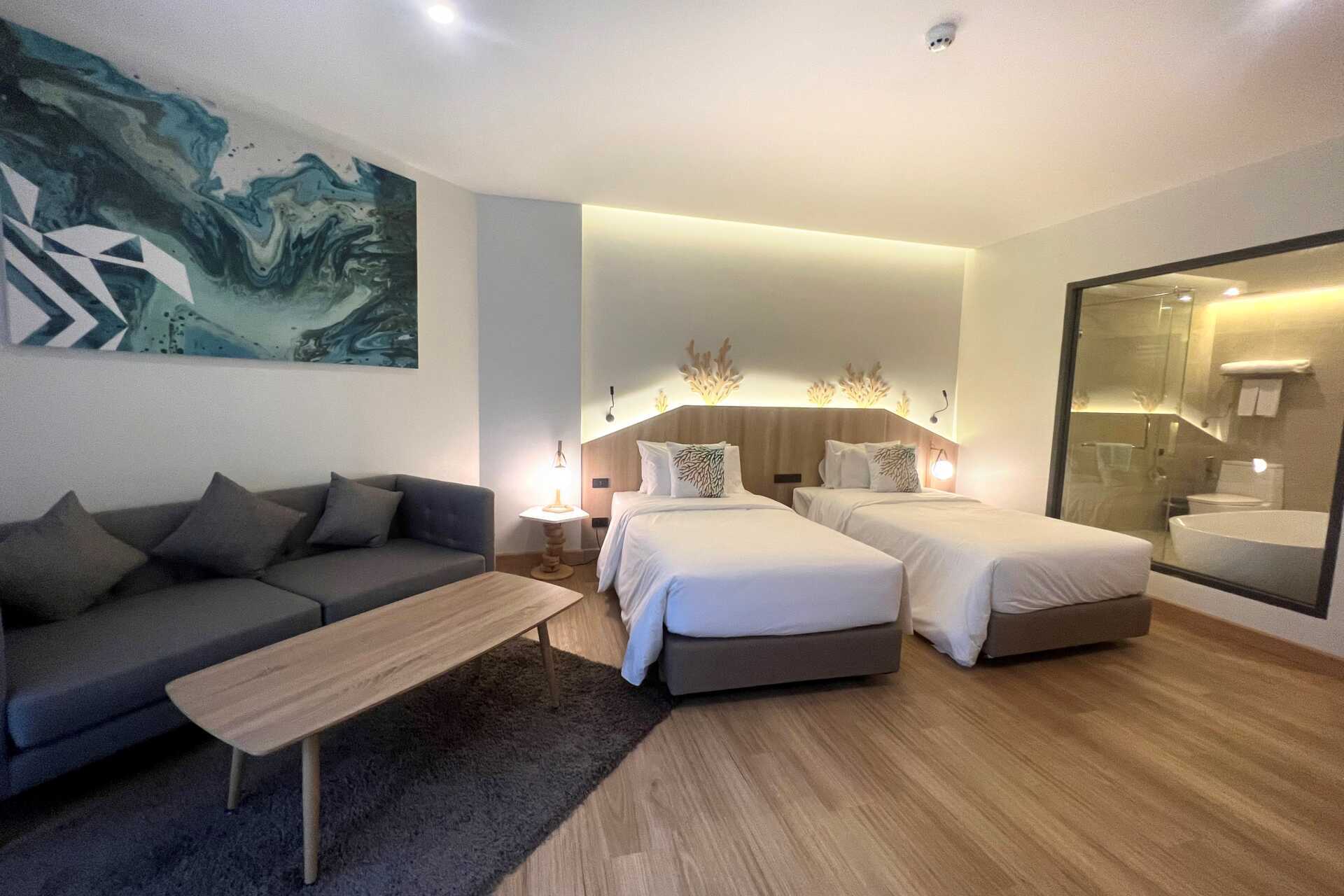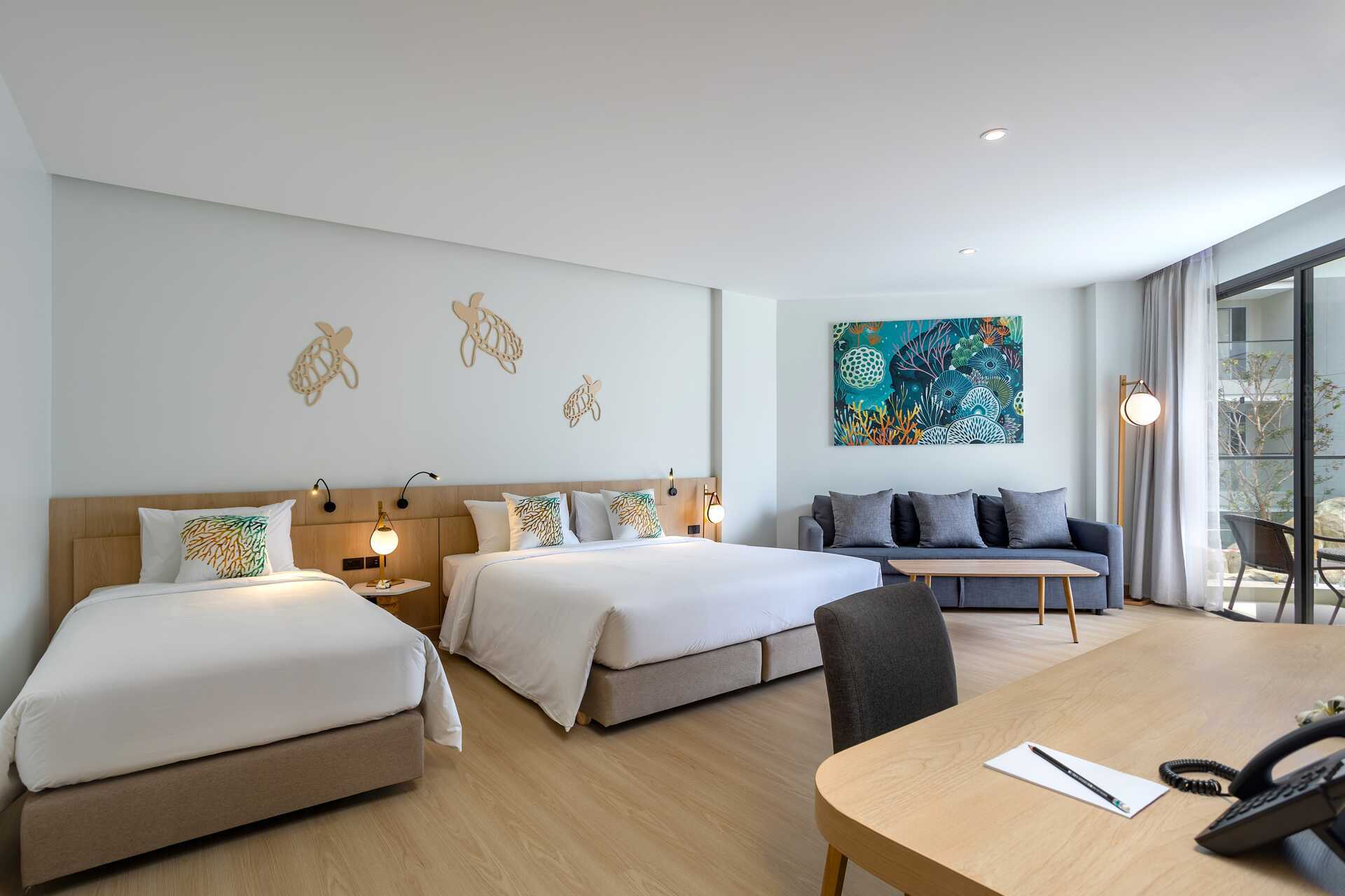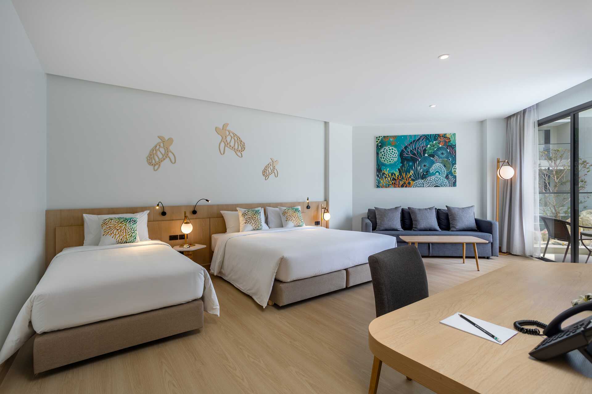 Deluxe perhehuoneita, joissa on maaterassi. Kaksi makuuhuonetta, joiden välissä ovi. Toisessa makuuhuoneessa parivuode ja lisävuodemahdollisuus vuodesohvasta, toisessa parivuode ja lisävuodemahdollisuus kerrossängystä. Maksuton wifi, ilmastointi ja tallelokero. Jääkaappi. Vedenkeitin, kahvia ja teetä. Mikro. Tv kansainvälisillä kanavilla. Hiustenkuivain. Suihku ja wc. Siivous 7 krt/viikko. Alle 2-vuotiaat lapset katsotaan majoittuviksi lisävuoteessa.