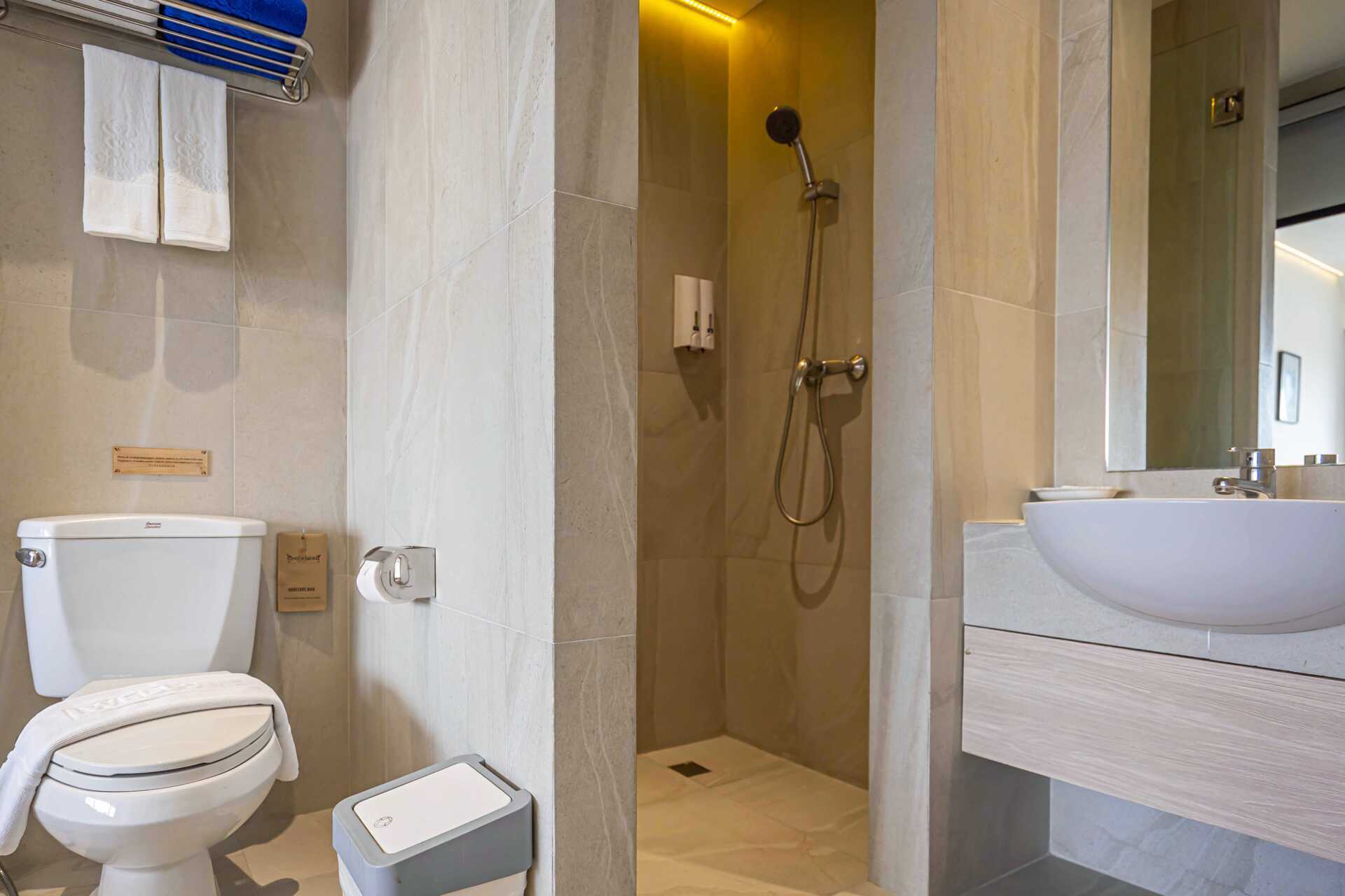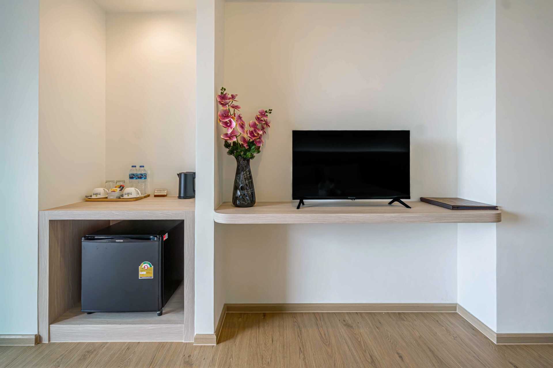 Superior-huone parvekkeella. Parivuode tai kaksi yhden hengen sänkyä. Lisävuodemahdollisuus kolmannelle henkilölle. Maksuton wifi, tallelokero ja ilmastointi. Jääkaappi. Vedenkeitin, kahvia ja teetä. Tv kansainvälisillä kanavilla. Hiustenkuivain. Kylpyhuoneessa suihku ja wc. Siivous 7 krt/viikko.