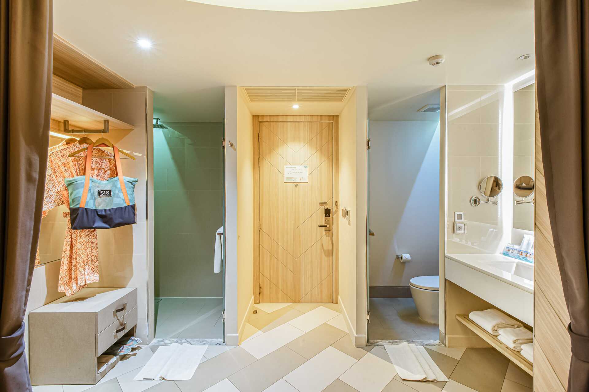 Kahden hengen huoneissa on parveke, joissakin huoneissa on näköala uima-altaalle, joissakin huoneissa on rajoitettu merinäköala ja joissakin huoneissa on näköala puutarhaan. Parivuode tai kaksi yhden hengen sänkyä. Maksuton wifi, ilmastointi ja tallelokero. Jääkaappi - kaksi pulloa vettä maksutta per päivä. Vedenkeitin, kahvia ja teetä. Tv kansainvälisillä kanavilla. Hiustenkuivain. Erillinen suihku ja erillinen wc. Siivous 7 krt/viikko.