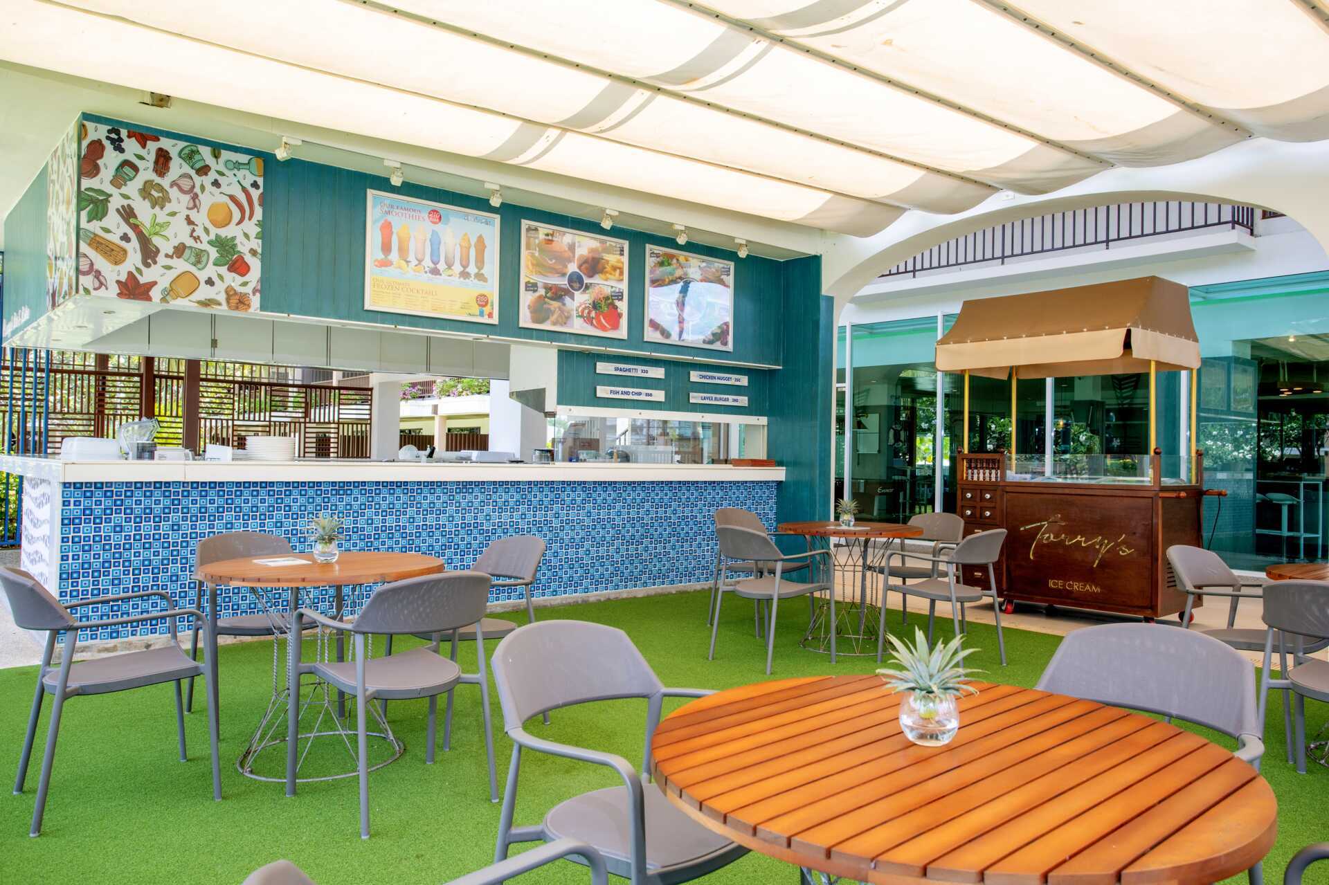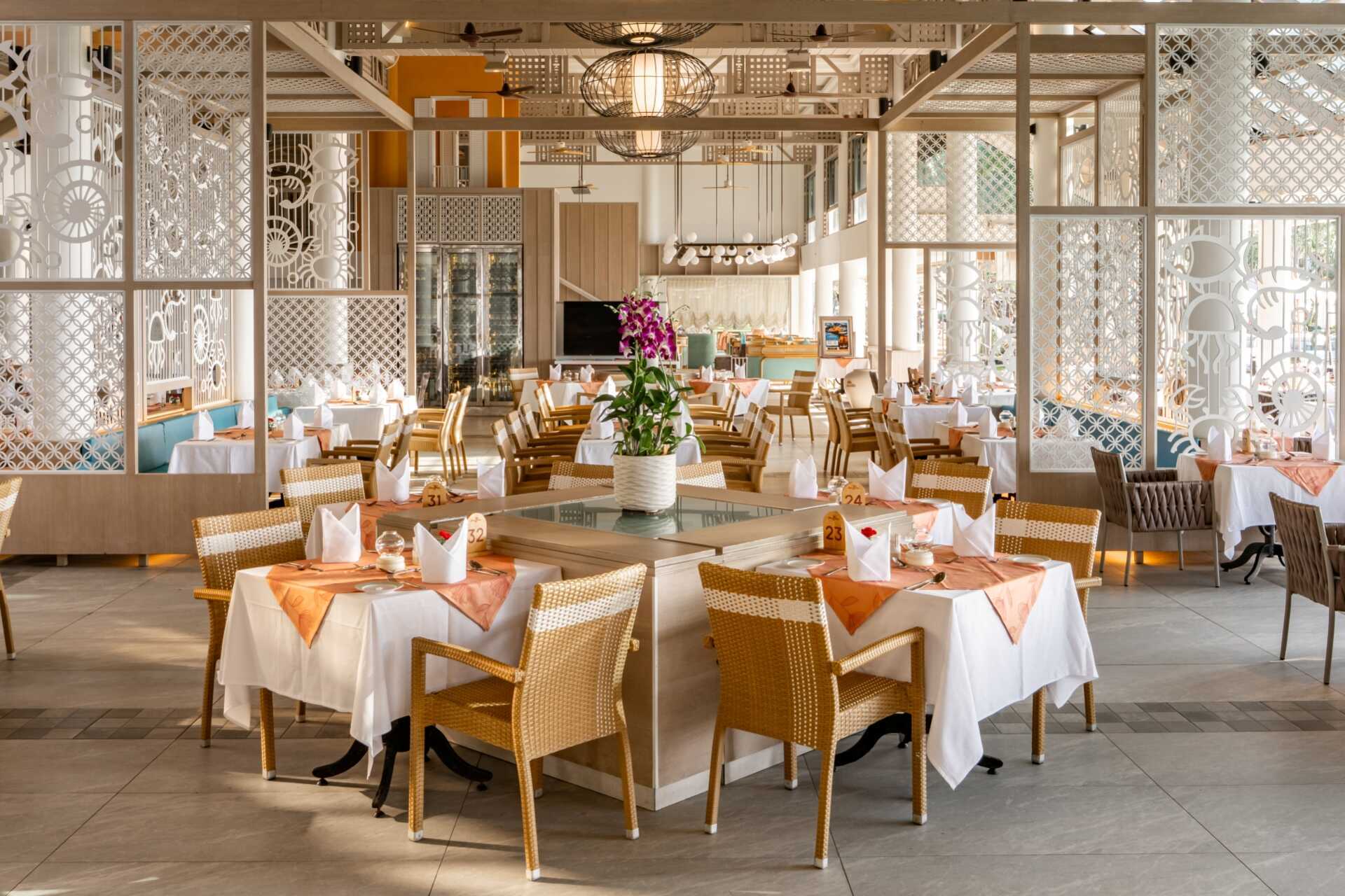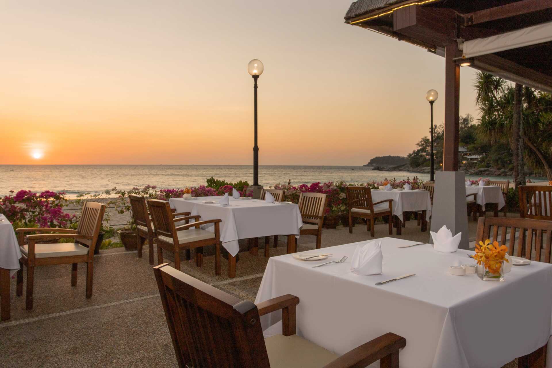 Hotellin alueella on kuusi ravintolaa, jotka on jaettu hotellin molempiin osiin. Chanadda Royal Thai Cuisine tarjoilee suosittuja thaimaalaisia ruokia, ja Chom Talay tarjoilee sekä länsimaisia että thaimaalaisia ruokia aamiaiseksi ja päivälliseksi. Fisherman’s Wharf houkuttelee kaloillaan ja tuoreilla merenelävillään aivan rannalla. La Scala tarjoilee italialaista ruokaa, ja The Cove Bistro tarjoaa eurooppalaisia suosikkeja. Seacret Restaurant tarjoaa kansainvälisiä ruokia aamiaiseksi ja lounaaksi. Tree House tarjoaa grilliherkkuja. Nuudeleita on saatavilla Bamboo Bowlissa ja liharuokia tarjoillaan Prime & Flamessa. Pippin Restaurant tarjoilee aamiaista ja "comfort foodia" päivän aikana. Maaliskuussa 2026 Captain Tully's Burger avaa ovensa ja tarjoaa hampurilaisia, wrappeja ja rapeita suupaloja. Useita baareja, mukaan lukien allasbaari ja rantabaari.