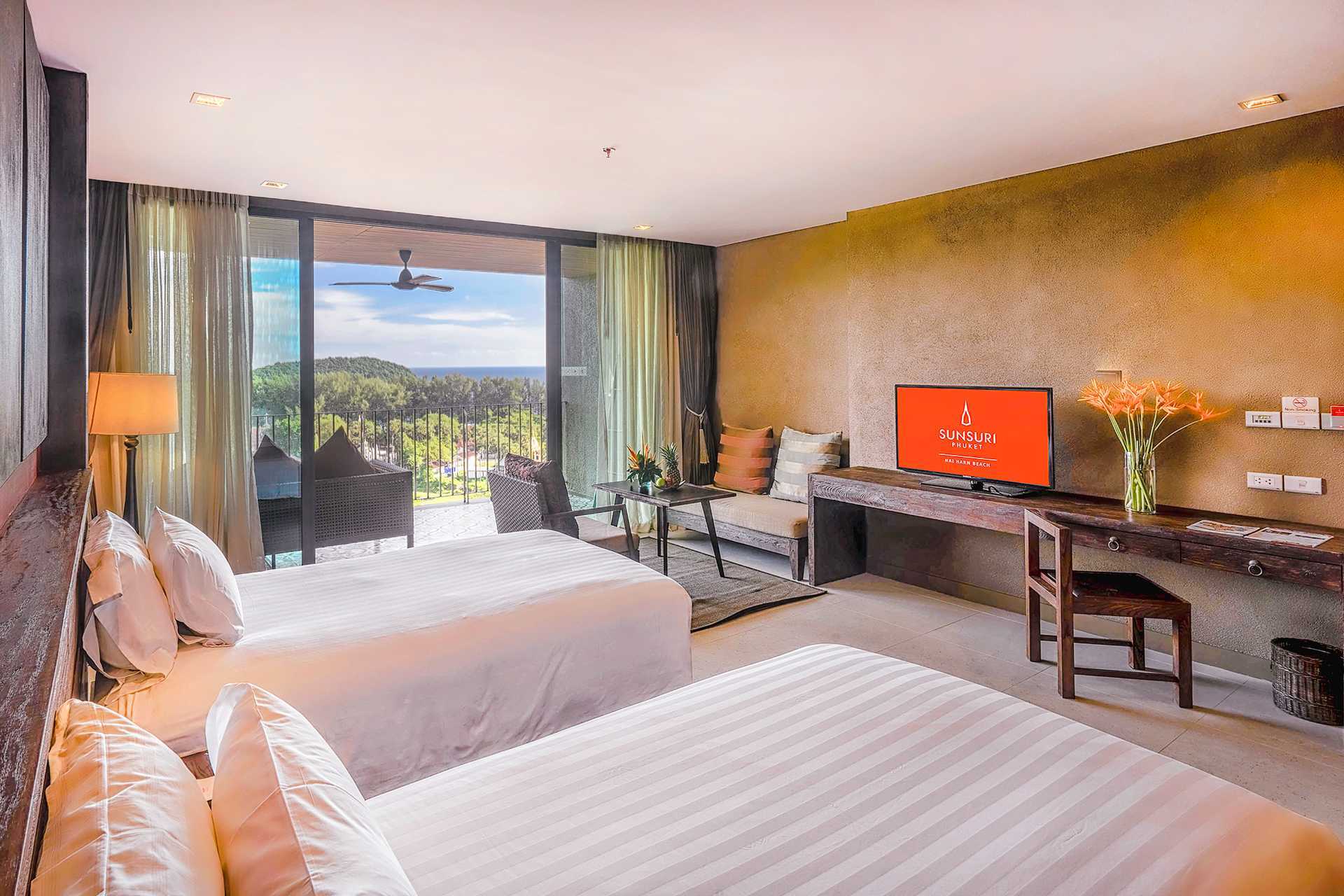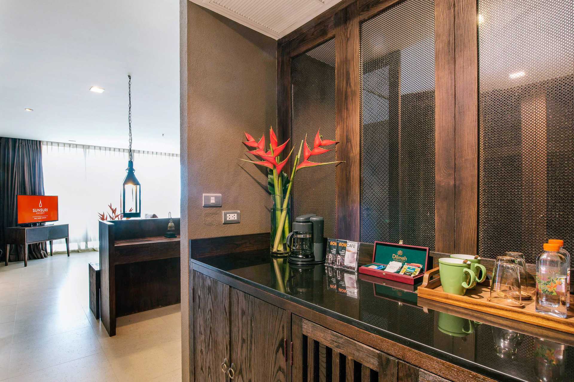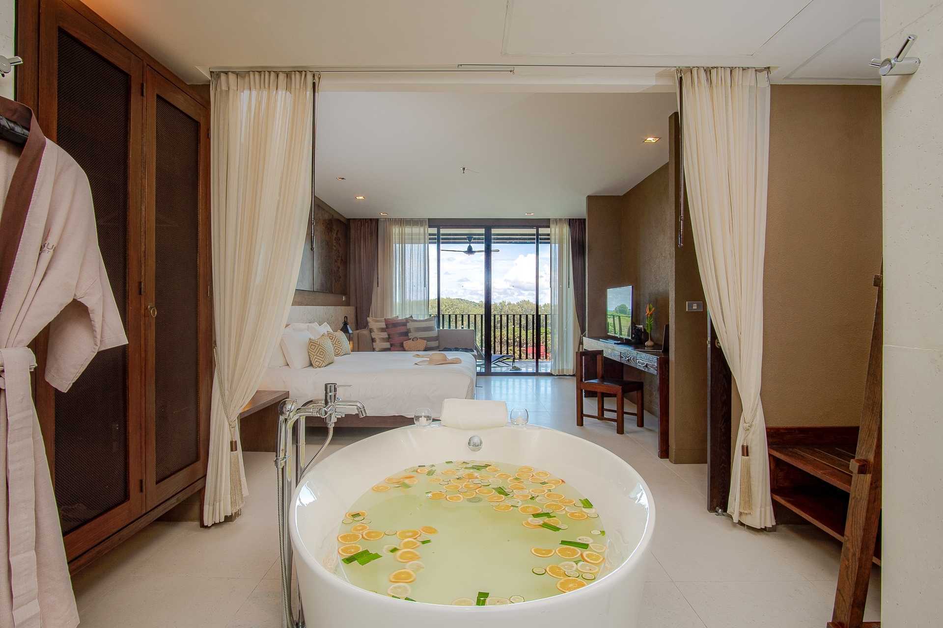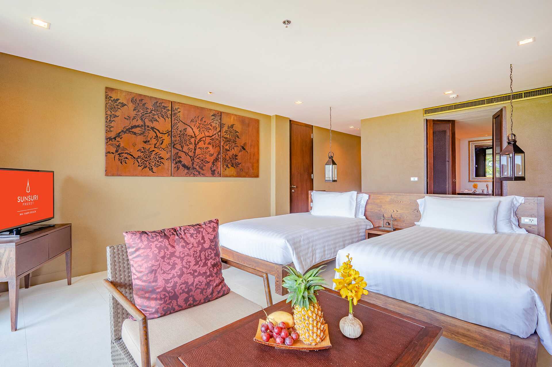 Bungaloweissa on oma uima-allas ja kauniit näkymät Nai Harn -järvelle ja läheisille vuorille. Terassilla on pöytä, tuoleja ja aurinkotuoleja. Allas on kooltaan noin 24 neliömetriä. Parivuode tai kaksi yhden hengen sänkyä. Mahdollisuus lisävuoteisiin. Minibaari. Vedenkeitin, kahvia ja teetä. Kahvinkeitin. Tv kansainvälisillä kanavilla. Kylpytakit ja tossut. Hiustenkuivain. Kylpyhuoneessa kylpyamme, erillinen suihku ja wc. Siivous 7 krt/viikko.