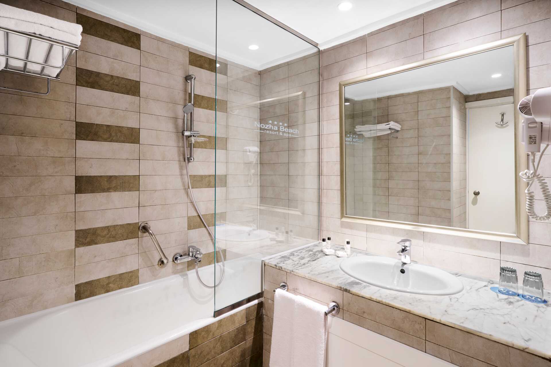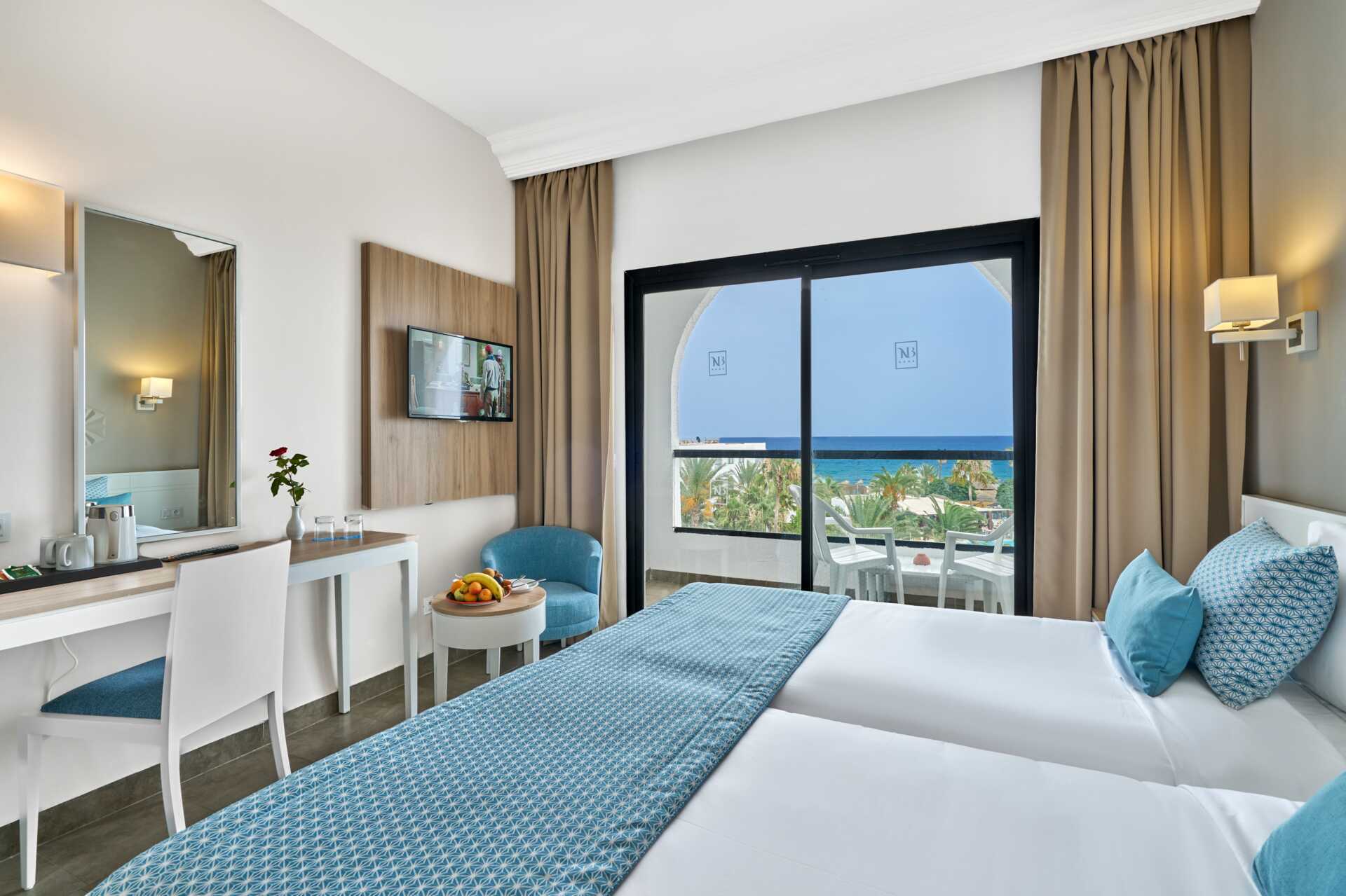 Kahden hengen huone jossa parveke ja merinäköala. Yksi parivuode tai kaksi erillistä vuodetta. Lisävuodemahdollisuus vuodesohvaan. Maksuton wifi, ilmastointi ja tallelokero. Minibaari. Tv kansainvälisillä kanavilla. Hiustenkuivain. Kylpyhuoneessa suihku ja wc. Siivous 7 krt/viikko.