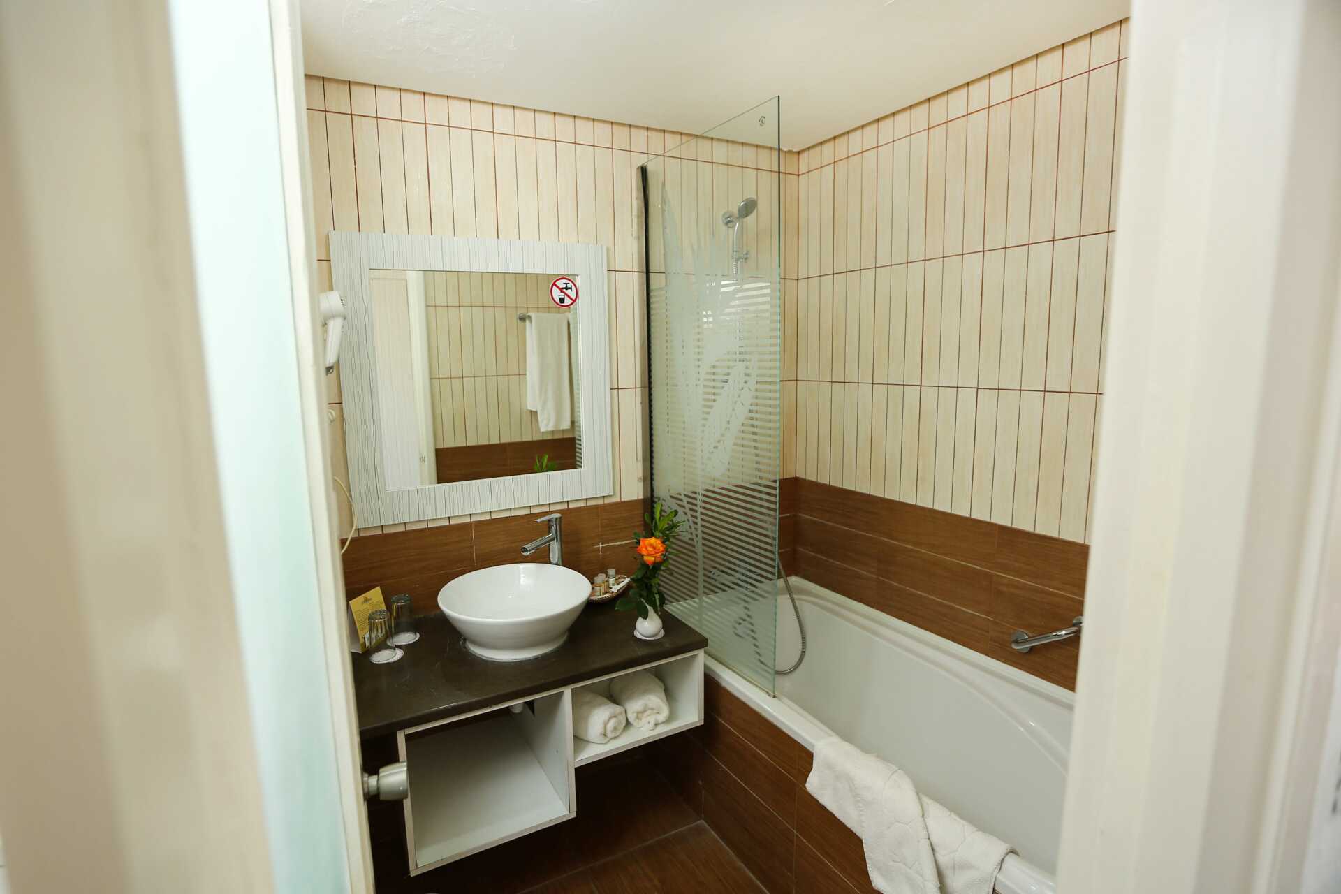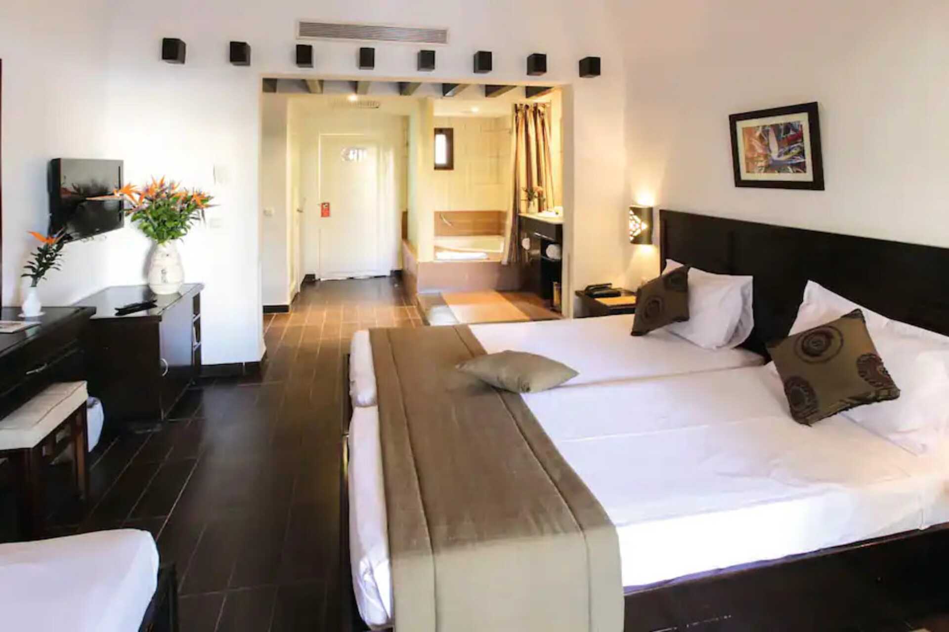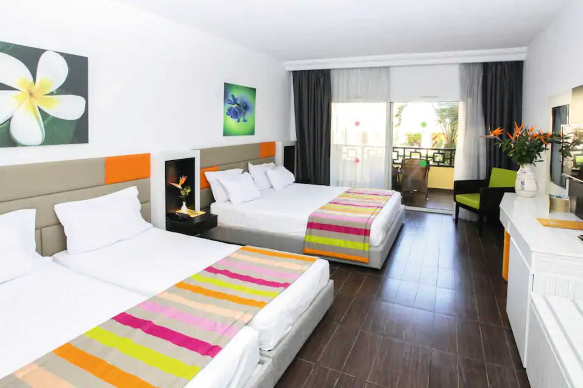 Perhehuoneessa parveke tai terassi. Huoneet sijaitsevat hotellin päärakennuksessa. Kaksi erillistä sänkyä. Lisävuodemahdollisuus kahdessa yhden hengen vuoteessa. Maksuton wifi ja ilmastointi. Huomaathan, että huoneissa on ilmastointi vain 15.6.-30.9. Tallelokero lisämaksulla. Maksullinen minibaari, vesipullo sisältyy hintaan ja täytetään päivittäin. Tv kansainvälisillä kanavilla. Kokolattiamatto. Hiustenkuivain. Kylpyhuoneessa amme/suihku ja wc. Siivous 7 krt/viikko.