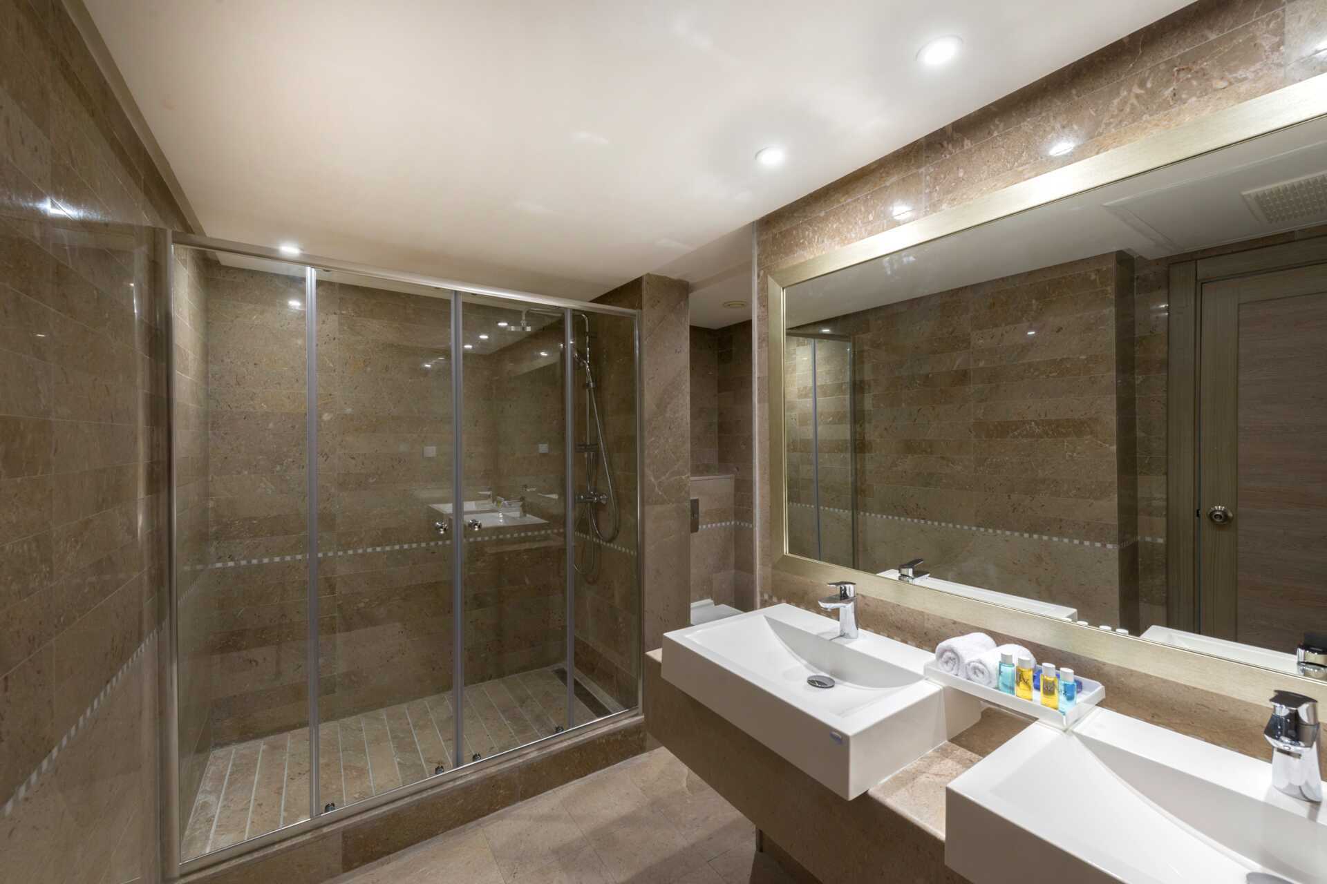 Kahden hengen huoneissa on parveke, osassa merinäköala. Parivuode tai kaksi erillistä sänkyä. Lisävuodemahdollisuus. Maksuton wifi, ilmastointi ja tallelokero. Minibaarissa vesipullo, joka täytetään päivittäin, muut tuotteet lisämaksusta. Vedenkeitin, kahvia ja teetä. Tv kansainvälisillä kanavilla. Hiustenkuivain. Kylpyhuoneessa kylpyamme, suihku ja wc. Siivous 7 krt/viikko.