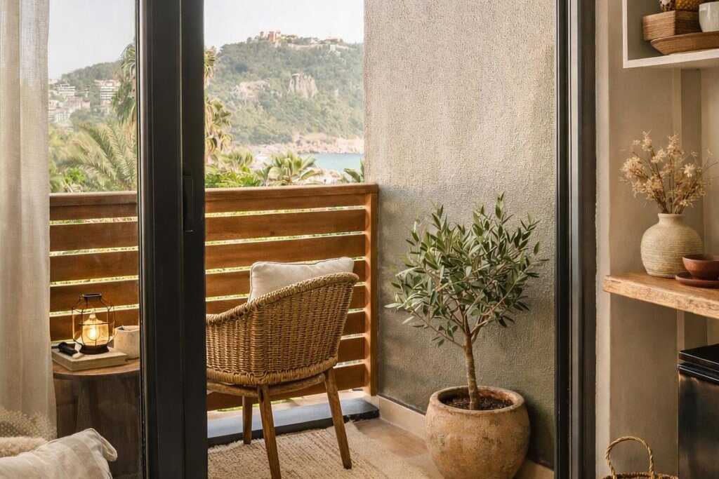 Sviitti parvekkeella tai terassilla, osassa merinäköala tai rajoitettu merinäköala. Yksi makuuhuone, jossa parivuode tai kaksi erillistä vuodetta, ja olohuoneessa vuodesohva. Maksuton wifi, ilmastointi ja tallelokero. Jääkaappi ja vedenkeitin. Tv kansainvälisillä kanavilla. Hiustenkuivain. Suihku ja wc. Siivous 7 krt/viikko.