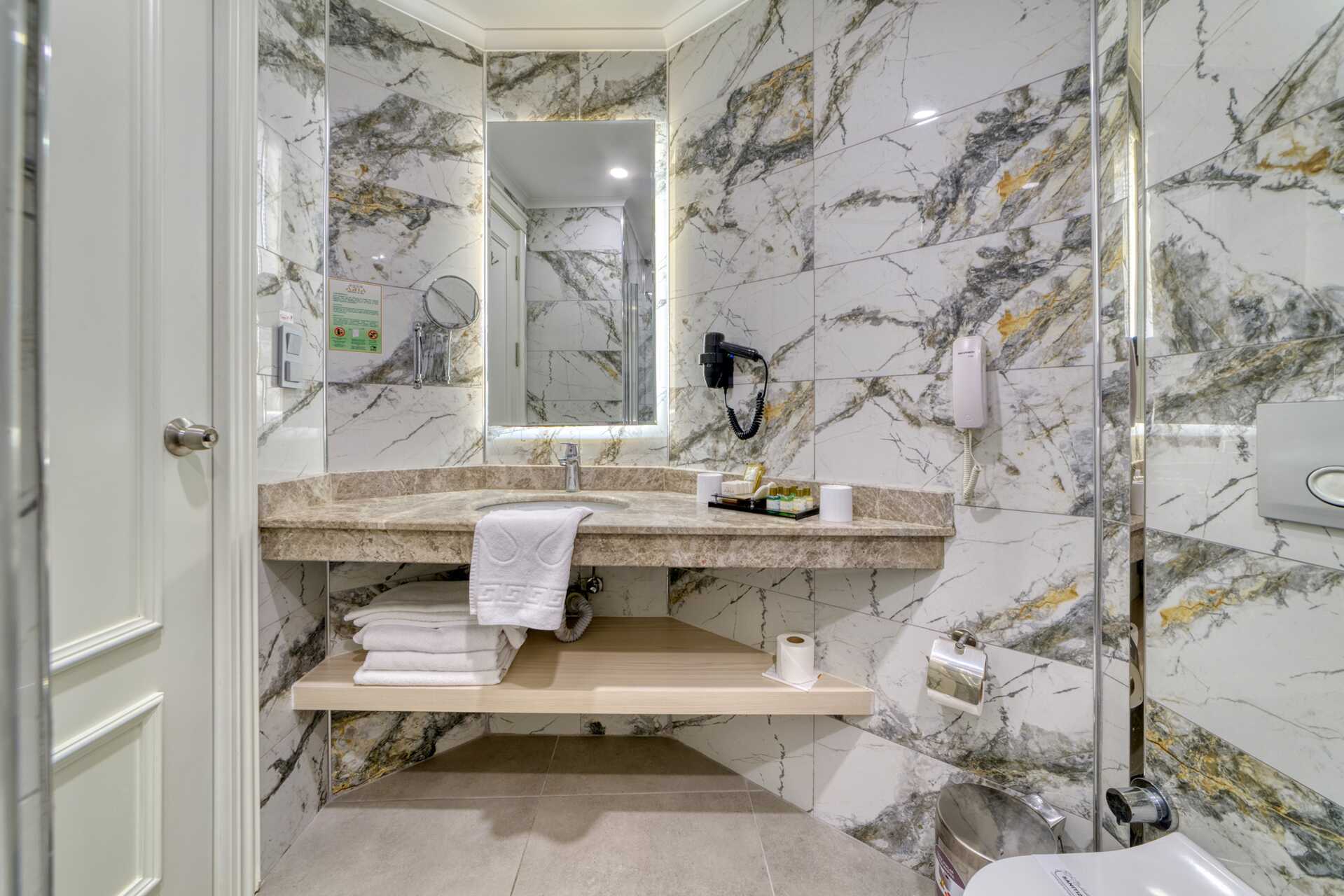 Kahden hengen huone, kaikissa on parveke, joissakin rajoitettu merinäköala tai merinäköala. Parivuode ja yhden hengen vuode. Maksuton wifi, ilmastointi ja tallelokero. Minibaari täytetään päivittäin virvoitusjuomilla ja vedellä. Vedenkeitin, kahvia ja teetä. Tv kansainvälisillä kanavilla. Tohvelit. Hiustenkuivain. Kylpyhuoneessa suihku ja wc.