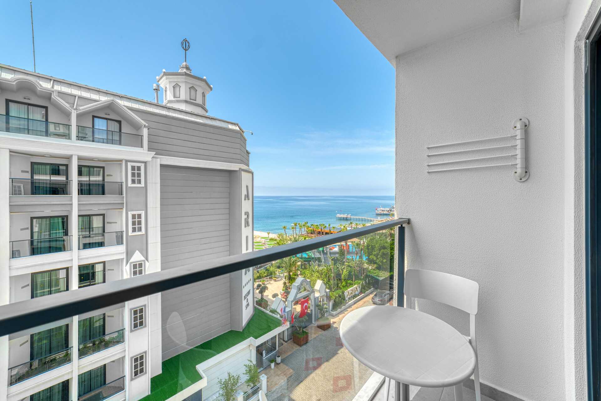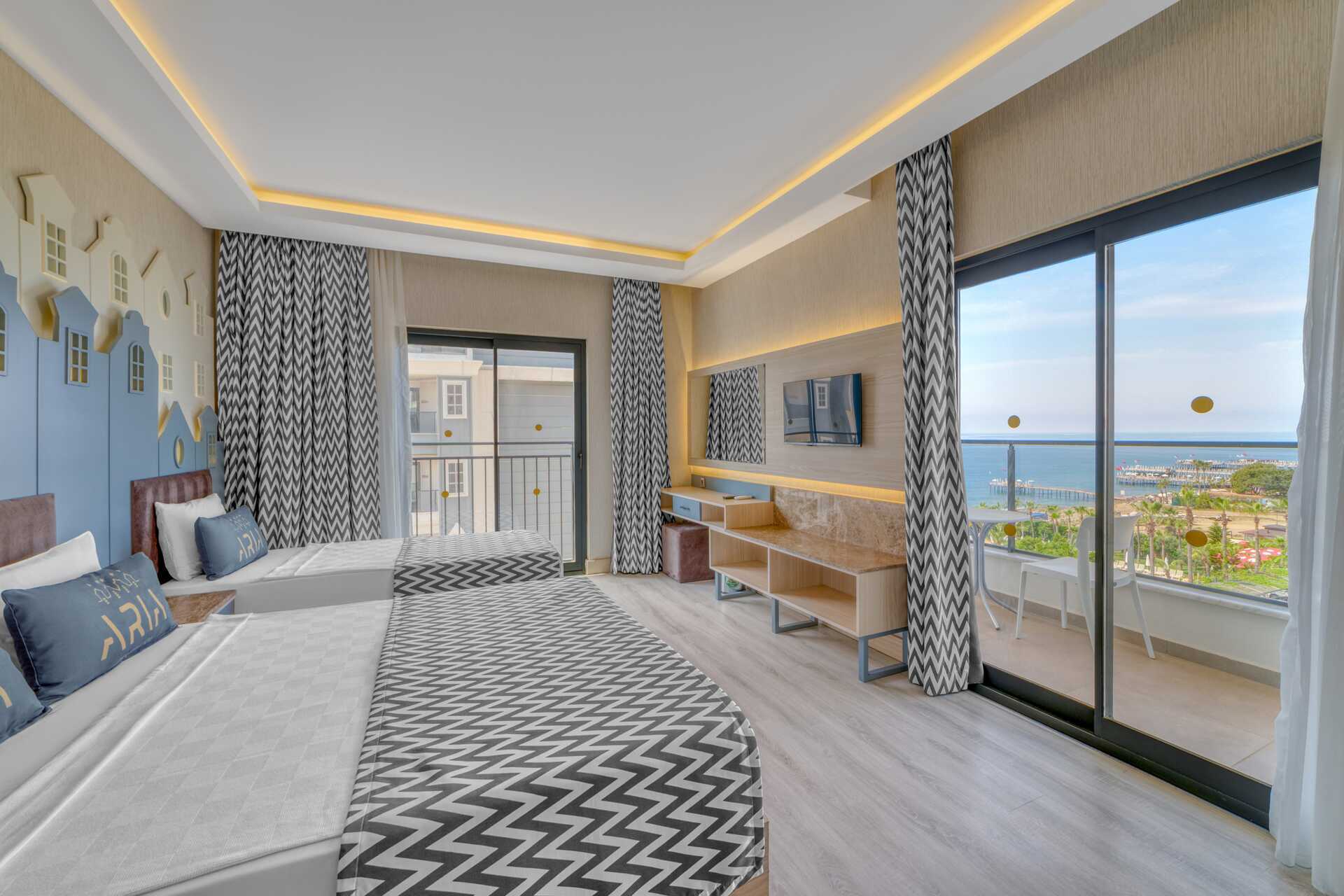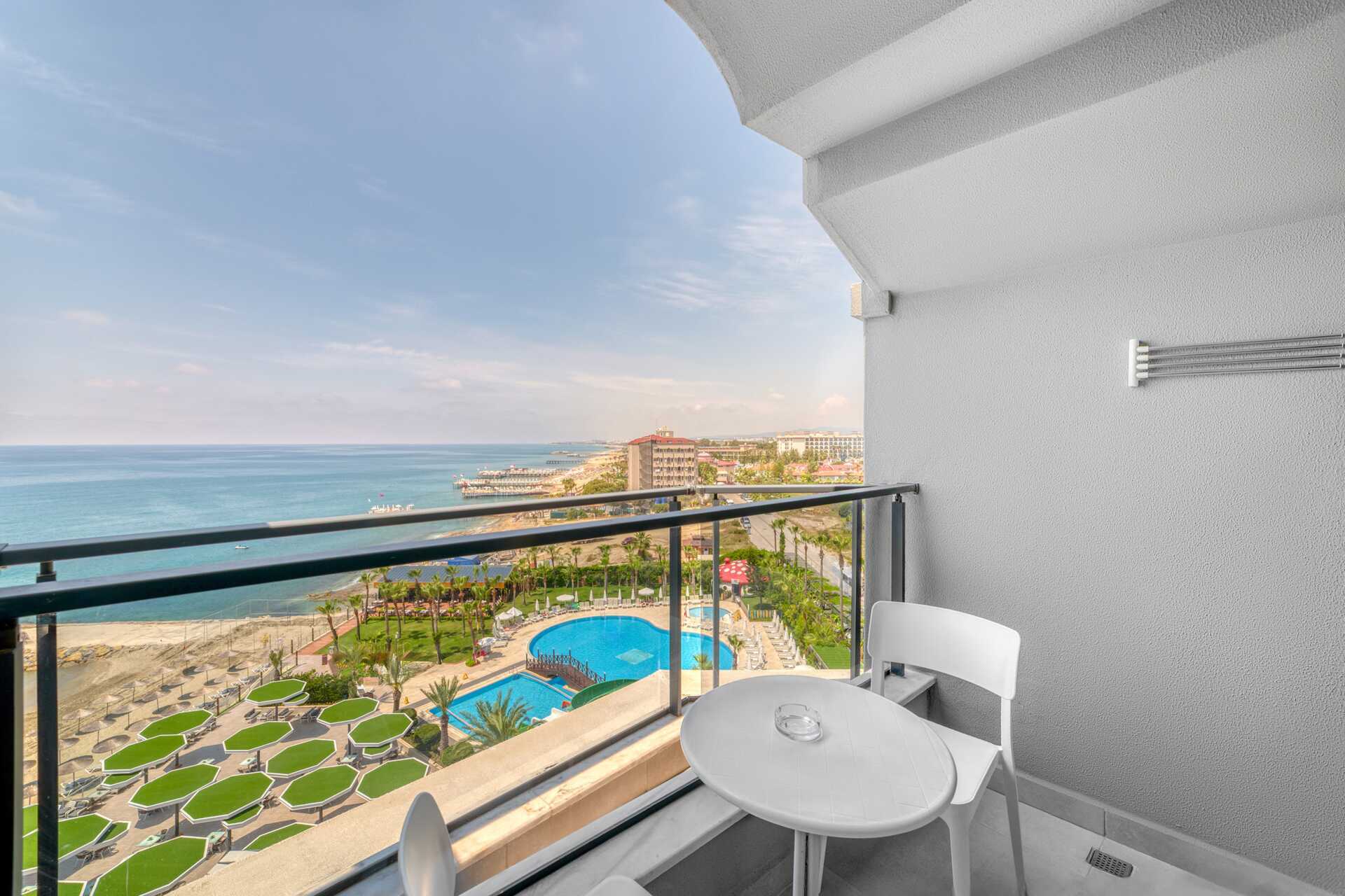 Deluxe-huone parvekkeella ja merinäköalalla. Parivuode ja yhden hengen vuode. Maksuton wifi, ilmastointi ja tallelokero. Minibaari. Vedenkeitin, kahvia ja teetä. Tv kansainvälisillä kanavilla. Tohvelit. Hiustenkuivain. Kylpyhuoneessa suihku ja wc.