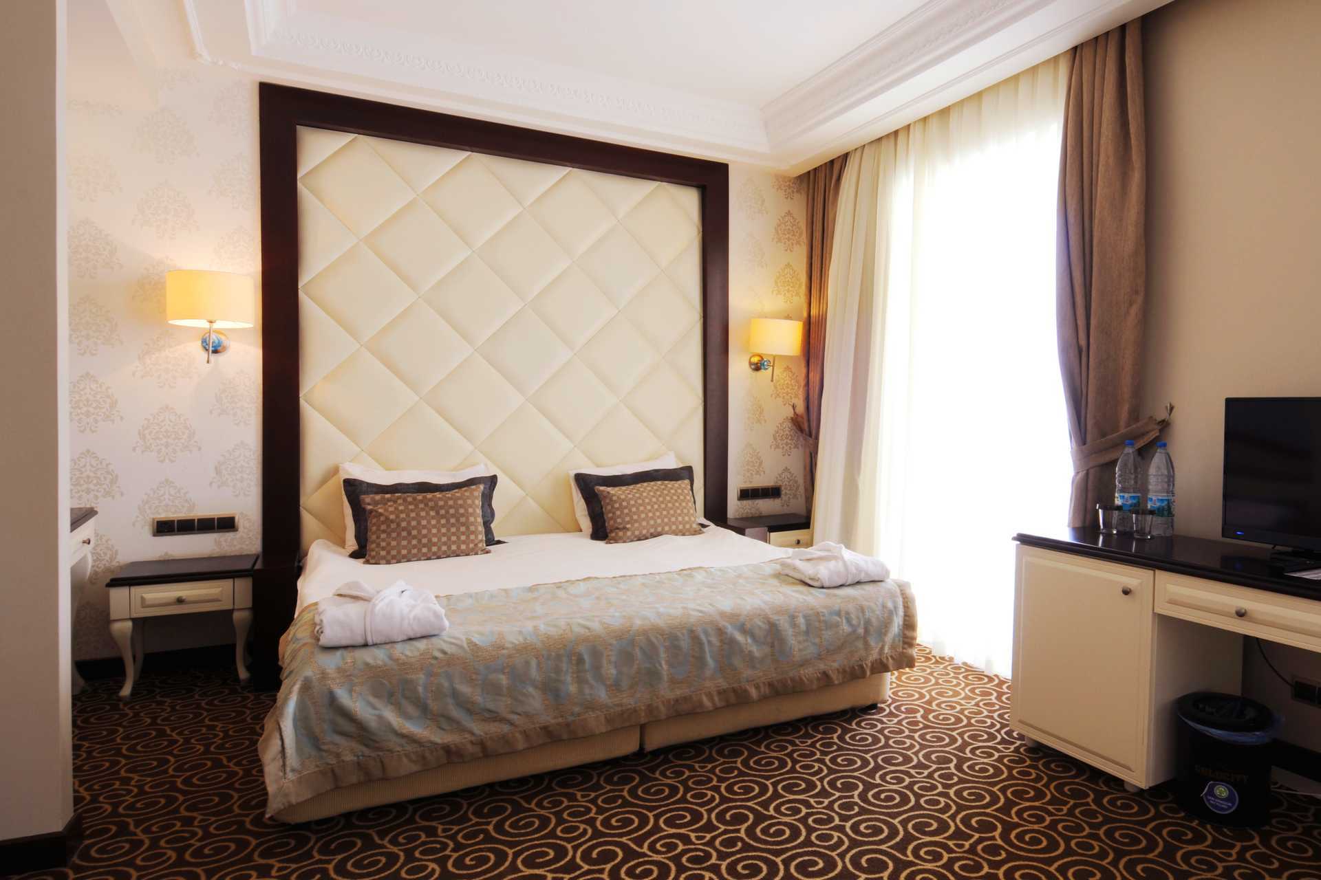 Kahden hengen huone parvekkeella. Huoneet sijaitsevat päärakennuksessa. Parivuode tai kaksi yhden hengen sänkyä. Joissakin huoneissa on kokolattiamatto. Maksuton wifi, ilmastointi ja tallelokero. Minibaari lisämaksulla. Tv kansainvälisillä kanavilla. Hiustenkuivain. Kylpyhuoneessa suihku ja wc. Siivous 7 krt/viikko. Alle 2-vuotiaat lapset lasketaan lisävuoteella majoittuviksi henkilöiksi.