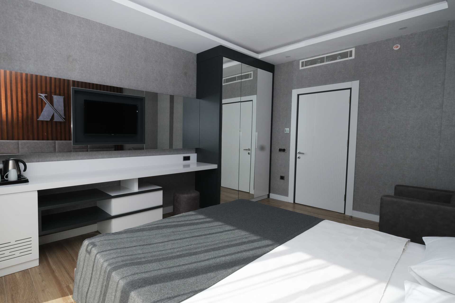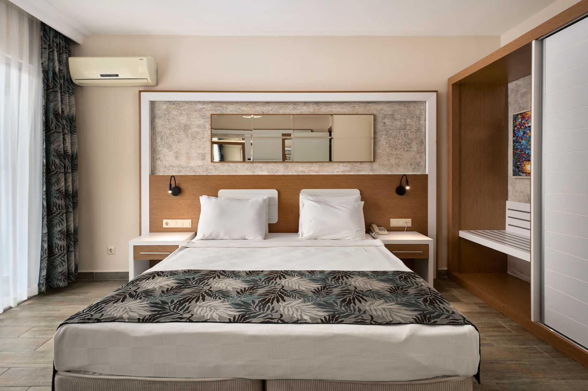Perhehuoneessa on parveke. Perhehuoneessa on kaksi makuuhuonetta. Yhdessä makuuhuoneessa on parivuode ja toisessa makuuhuoneessa kaksi erillistä vuodetta. Lisävuodemahdollisuus nojatuolissa tai kokoontaitettavassa sängyssä. Maksuton wifi ja ilmastointi. Tallelokero lisämaksulla. Minibaari. Vedenkeitin, kahvia ja teetä. Tv kansainvälisillä kanavilla. Hiustenkuivain. Kylpyhuoneessa on suihku ja wc. Siivous 7 krt/viikko. Alle 2-vuotiaat lapset lasketaan lisävuoteella majoittuviksi henkilöiksi.