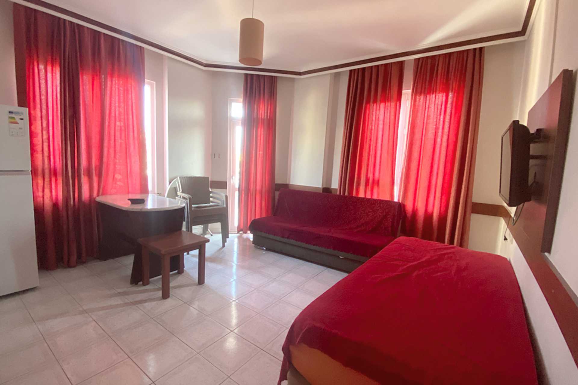 Kaksio parvekkeella. Makuuhuone sekä yhdistetty olohuone ja minikeittiö. Kaksi yhden hengen sänkyä. Lisävuodemahdollisuus kahteen vuodesohvaan. Minikeittiö, jossa jääkaappi, liesi, vedenkeitin ja yksinkertaiset keittiövälineet. Maksuton wifi. Ilmastointi ja tallelokero lisämaksusta. Tv kansainvälisillä kanavilla. Hiustenkuivain. Kylpyhuoneessa suihku ja wc. Siivous 7 krt/viikko.