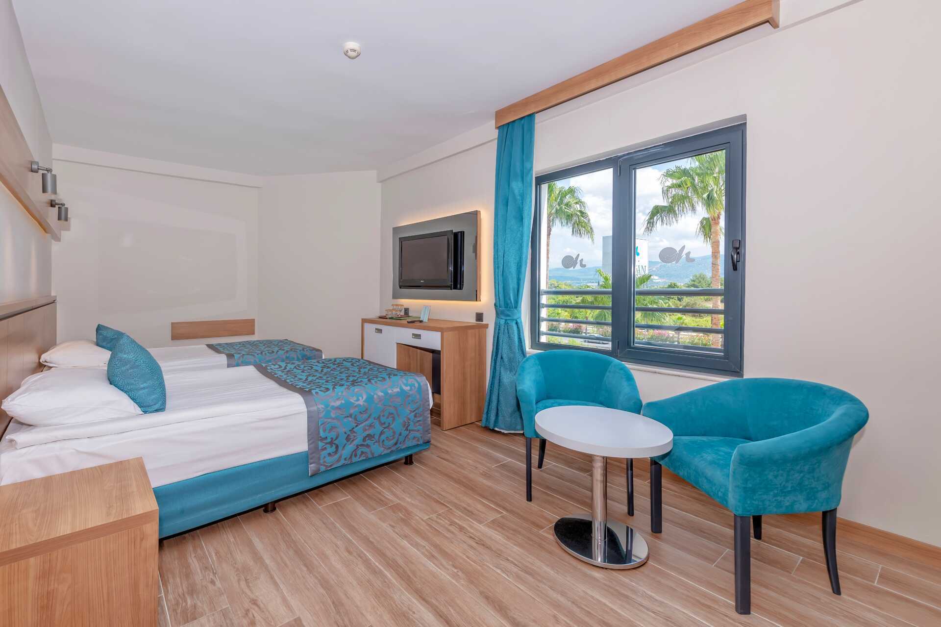 Kahden hengen huone parvekkeella. Parivuode tai kaksi yhden hengen sänkyä. Maksuton wifi, ilmastointi ja tallelokero. Minibaari. Vedenkeitin, kahvia ja teetä. Tv kansainvälisillä kanavilla. Hiustenkuivain. Kylpytakit. Kylpyhuoneessa suihku ja wc. Siivous 7 krt/viikko.