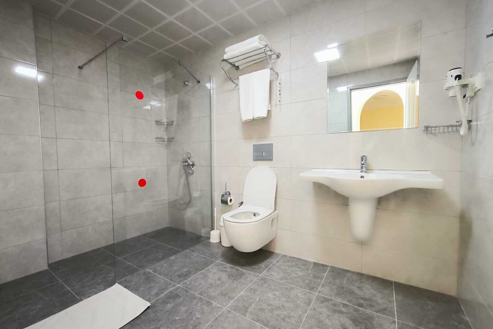 Suurehko kaksio kahdella parvekkeella. Makuuhuone sekä yhdistetty olohuone ja minikeittiö. Kaksi yhden hengen sänkyä. Lisävuodemahdollisuus kahteen vuodesohvaan. Minikeittiö, jossa jääkaappi, keittolevyt, peruskeittiövälineet, vedenkeitin ja kahvinkeitin. Maksuton wifi. Ilmastointi ja tallelokero lisämaksusta. Joissakin suuremmissa kaksioissa ilmastointi on saatavilla vain makuuhuoneessa. Tv paikallisilla kanavilla. Hiustenkuivain. Suihku ja wc. Siivous 6 krt/viikko.