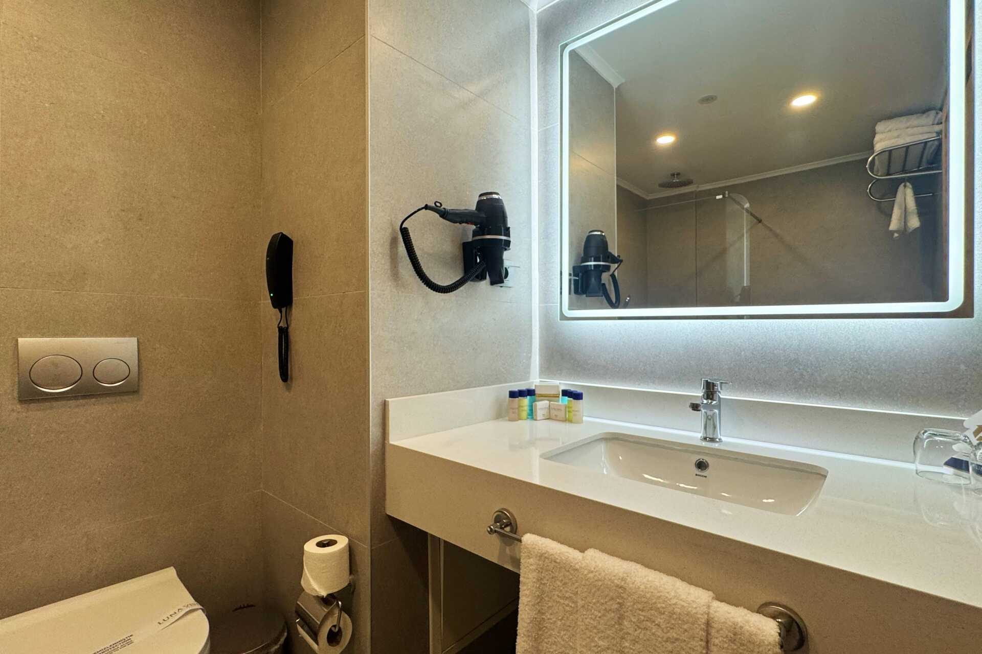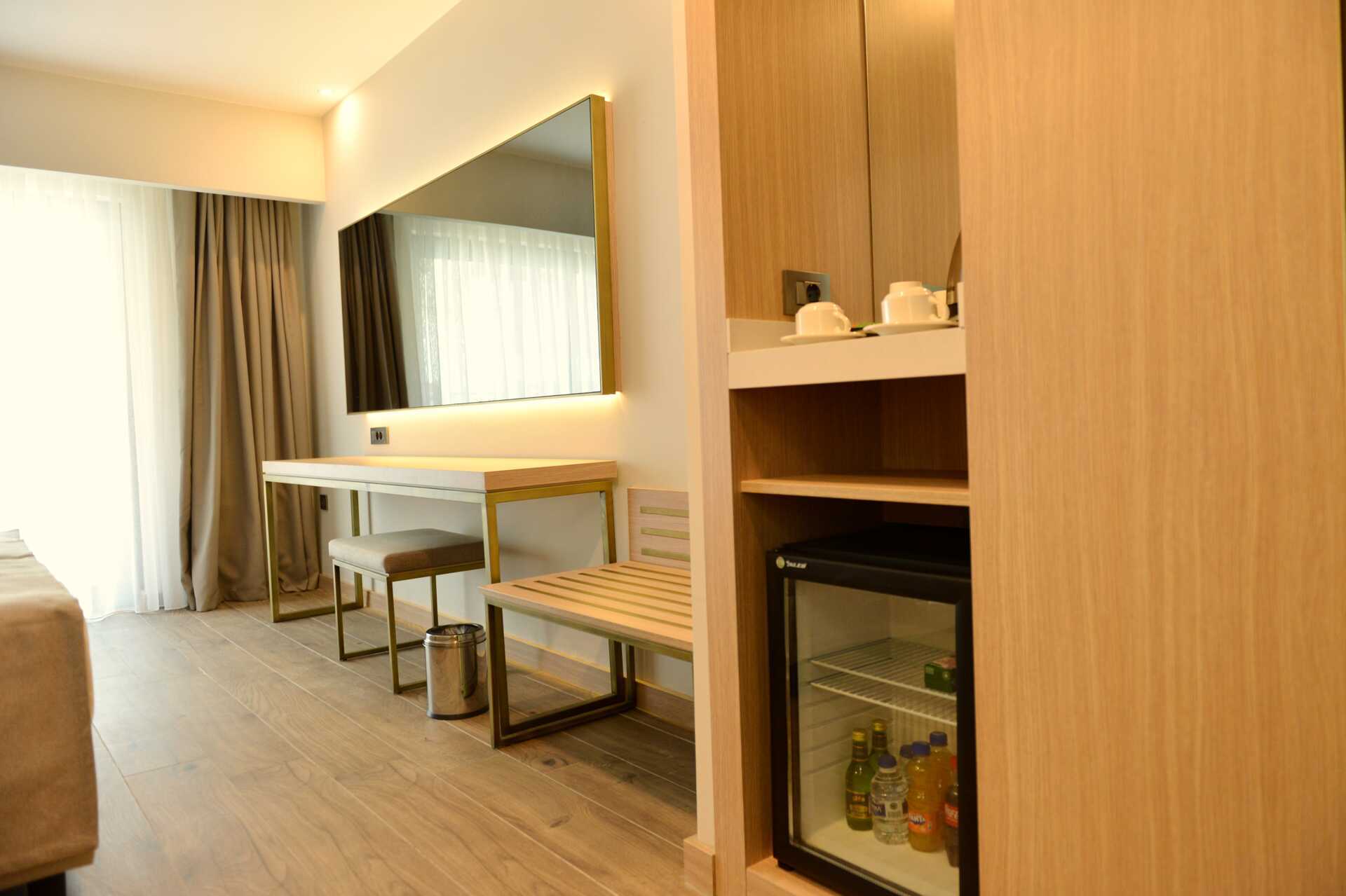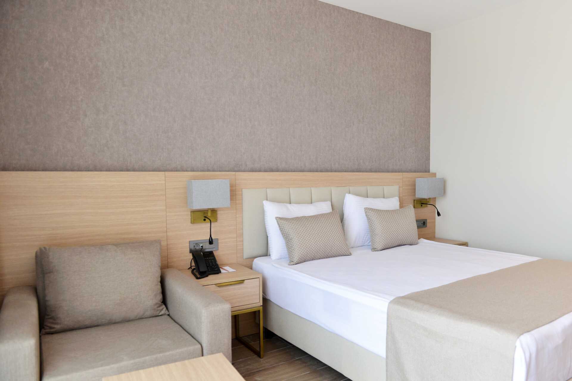 Superior-huone parvekkeella. Parivuode tai kaksi yhden hengen sänkyä. Lisävuodemahdollisuus yhden hengen vuoteesta. Maksuton wifi, ilmastointi ja tallelokero. Minibaari (täytetään päivittäin). Kapselikeitin kahvin valmistukseen. Vedenkeitin, kahvia ja teetä. Tv kansainvälisillä kanavilla. Kylpytakit ja tossut. Hiustenkuivain. Suihku ja wc. Siivous 7 krt/viikko. Alle 2-vuotiaat lapset lasketaan lisävuoteella majoittuviksi henkilöiksi.