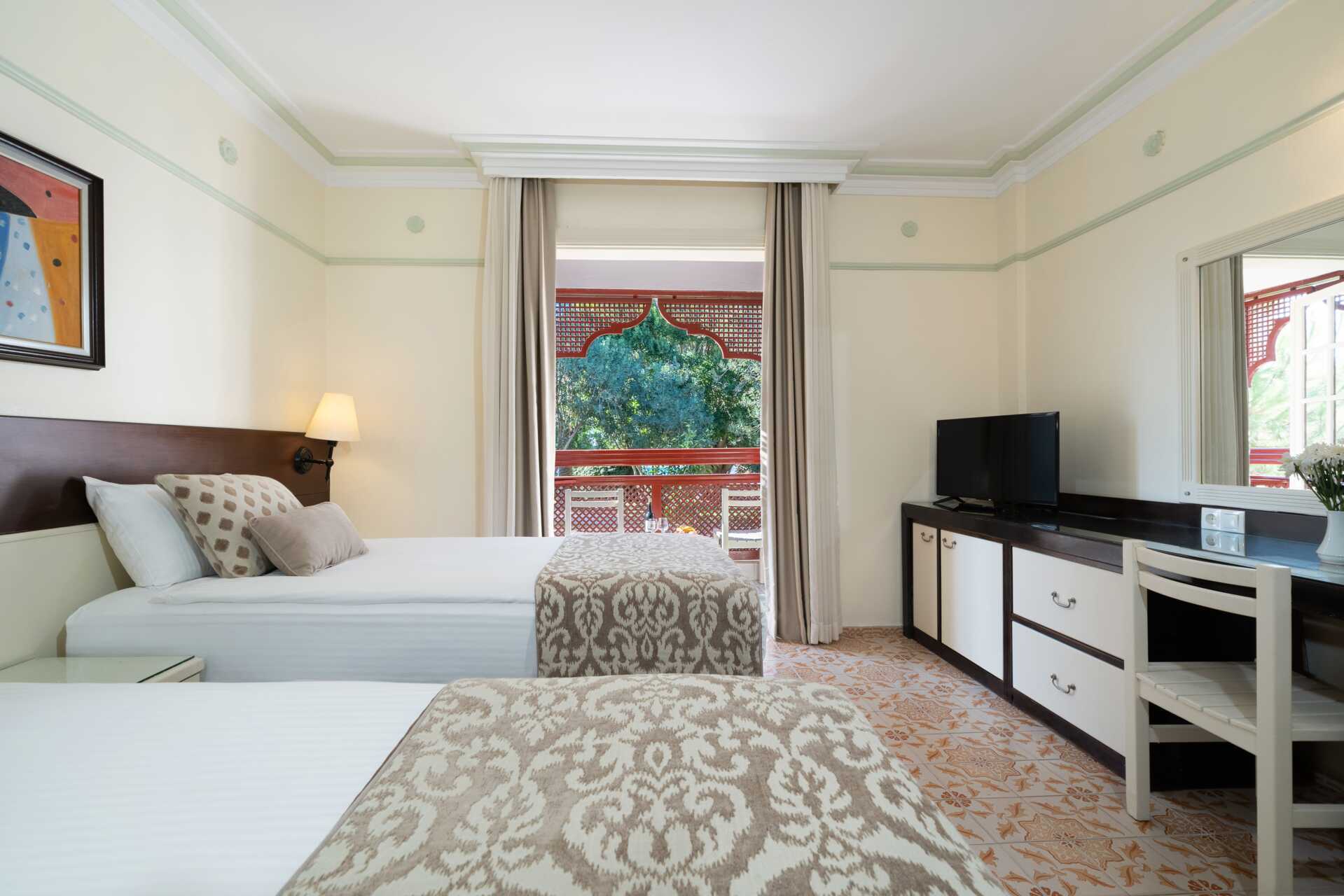 Kahden hengen huone parvekkeella tai terassilla. Parivuode tai kaksi yhden hengen sänkyä. Lisävuodemahdollisuus kolmannelle henkilölle. Tyynymenu. Maksuton wifi, ilmastointi ja tallelokero. Minibaari. Vedenkeitin, kahvia ja teetä. Tv kansainvälisillä kanavilla. Hiustenkuivain. Kylpyhuoneessa suihku ja wc. Siivous 7 krt/viikko.
