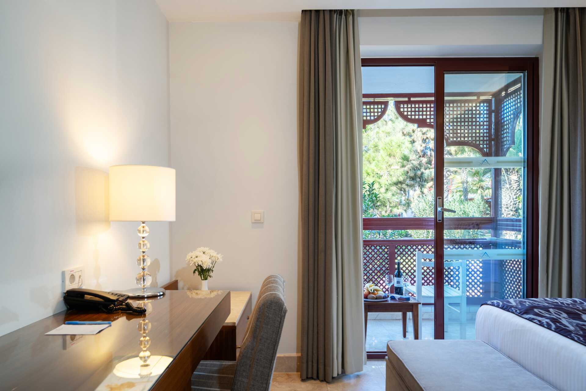 Superior-huone parvekkeella tai terassilla. Parivuode tai kaksi yhden hengen sänkyä. Lisävuodemahdollisuus kolmannelle henkilölle. Tyynymenu. Maksuton wifi, ilmastointi ja tallelokero. Minibaari. Vedenkeitin, kahvia ja teetä. Tv kansainvälisillä kanavilla. Hiustenkuivain. Kylpyhuoneessa suihku ja wc. Siivous 7 krt/viikko.