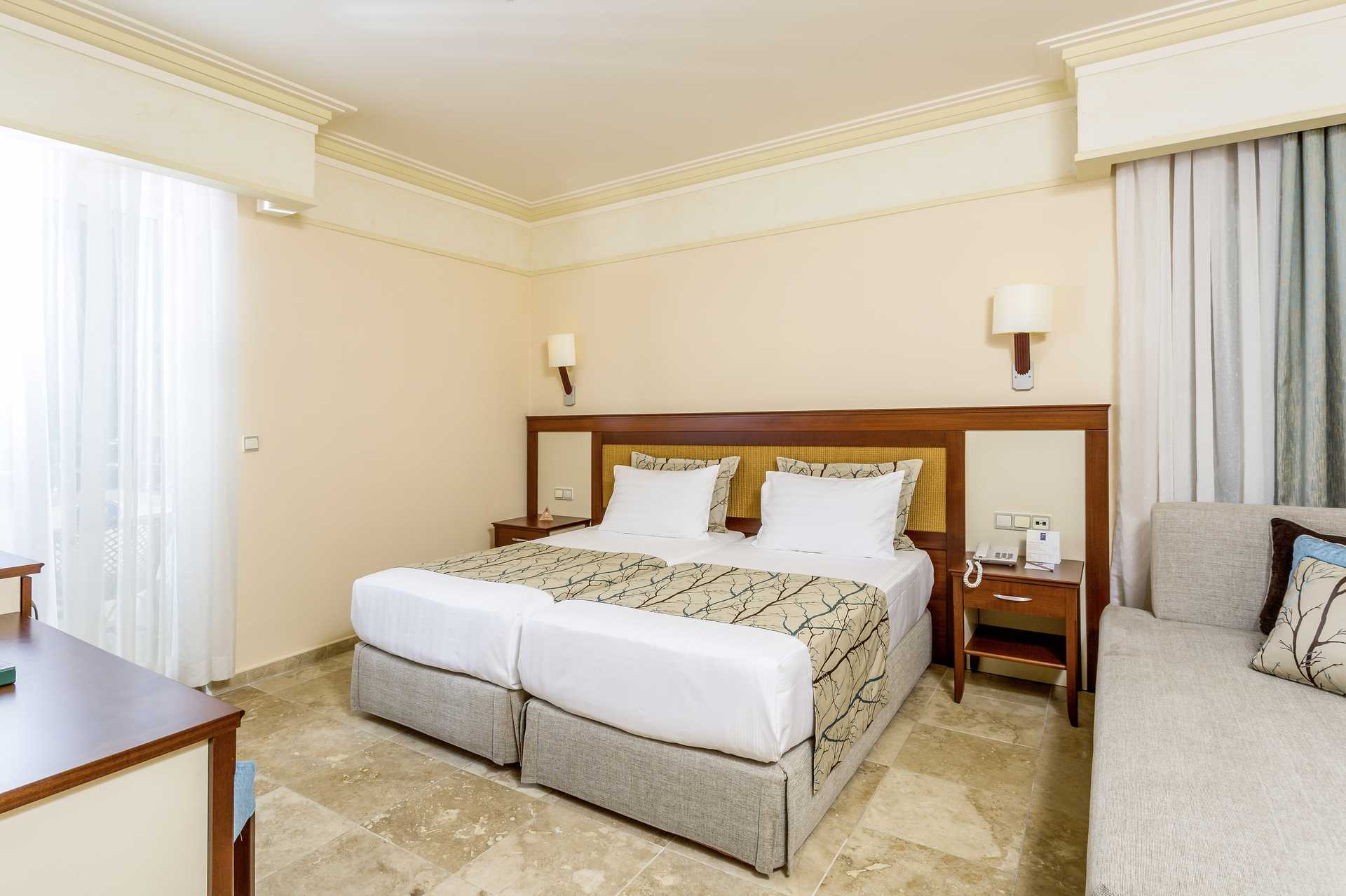 Suurempi kahden hengen huone jossa parveke. Parivuode tai kaksi lisävuodetta. Lisävuodemahdollisuus vuodesohvaan. Maksuton wifi, ilmastointi ja tallelokero. Joissakin kahden hengen huoneissa on keskusohjattu ilmastointi, joka kytkeytyy päälle/pois eri aikoina säästä riippuen. Minibaari. Vedenkeitin, kahvia ja teetä. Tv kansainvälisillä kanavilla. Hiustenkuivain. Kylpyhuoneessa amme ja suihku sekä wc. Siivous 7 krt/viikko. Huoneessa on muutama rappunen. Alle 2-vuotiaat lapset lasketaan lisävuoteessa majoittuvksi henkilöiksi.