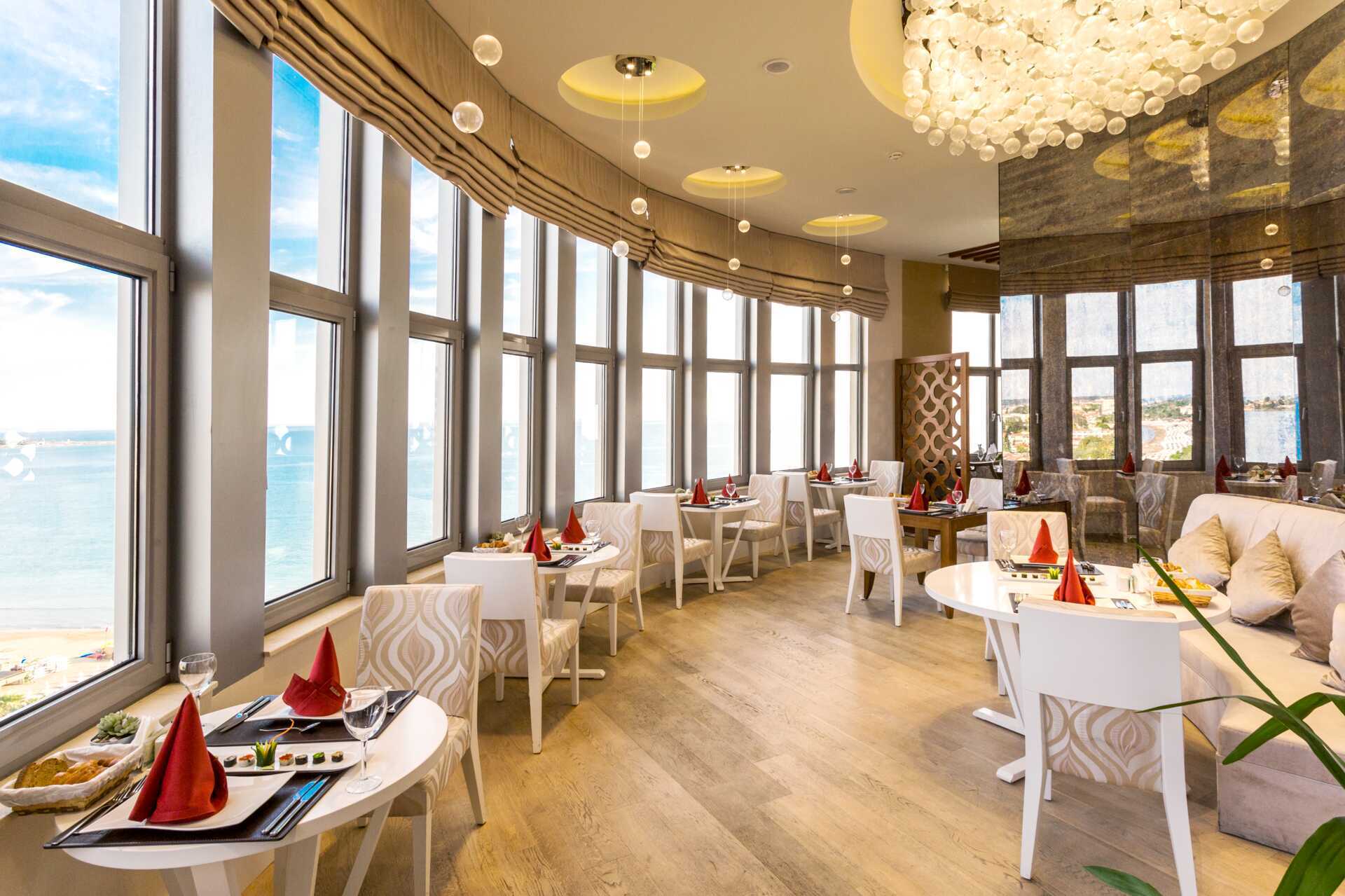Hotellin buffetravintolassa voit istua sekä ulkona että sisällä. Täällä on myös kolme á la carte -ravintolaa; turkkilainen ravintola, kalaravintola ja kansainvälinen menu. Pöytävaraus à la carte -ravintoloihin sekä kansainvälisen länsimaisen ja itäisen keittiön ravintolan ikäraja on 9 vuotta. Kaikki ovat ulkoravintoloita, jotka ovat avoinna säästä riippuen. Jos haluat jotain hyvää, voit käydä konditoriassa. Valittavana on useita baareja, joista voit nauttia juotavaa.