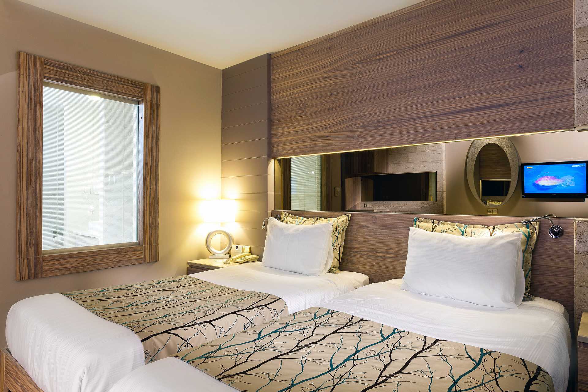 Suurempi kahden hengen huone, parvekkeella ja rajoitetulla merinäköalalla. Kaksi yhden hengen sänkyä. Lisävuodemahdollisuus vuodesohvasta. Tallelokero, wifi ja keskusilmastointi (päällä/pois eri aikoina säästä riippuen) sisältyvät hintaan. Minibaari. Vedenkeitin, kahvia ja teetä. Tv kansainvälisillä kanavilla. Hiustenkuivain. Kylpyhuoneessa suihku ja wc. Siivous 7 krt/viikko. Alle 2-vuotiaat lapset lasketaan lisävuoteella majoittuviksi henkilöiksi.