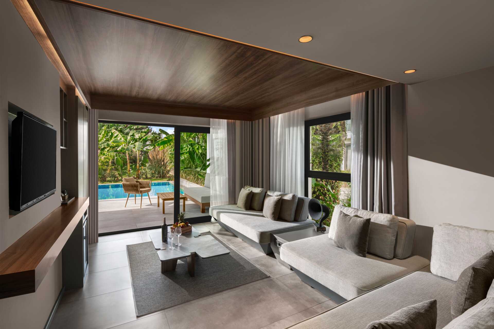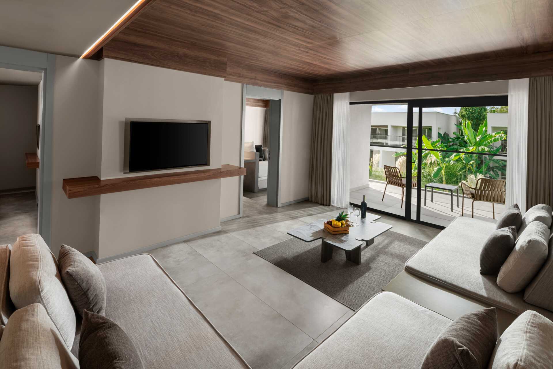Juniorsviitti jaetulla altaalla ulkotilassa. Perhesviiteissä on makuuhuone ja olohuone. Parivuode tai kaksi yhden hengen vuodetta. Lisävuodemahdollisuus vuodesohvasta. Maksuton wifi, ilmastointi ja tallelokero. Minibaari lisämaksulla. Vedenkeitin, kahvia ja teetä. Tv kansainvälisillä kanavilla. Hiustenkuivain. Amme ja wc. Siivous 7 krt/viikko.