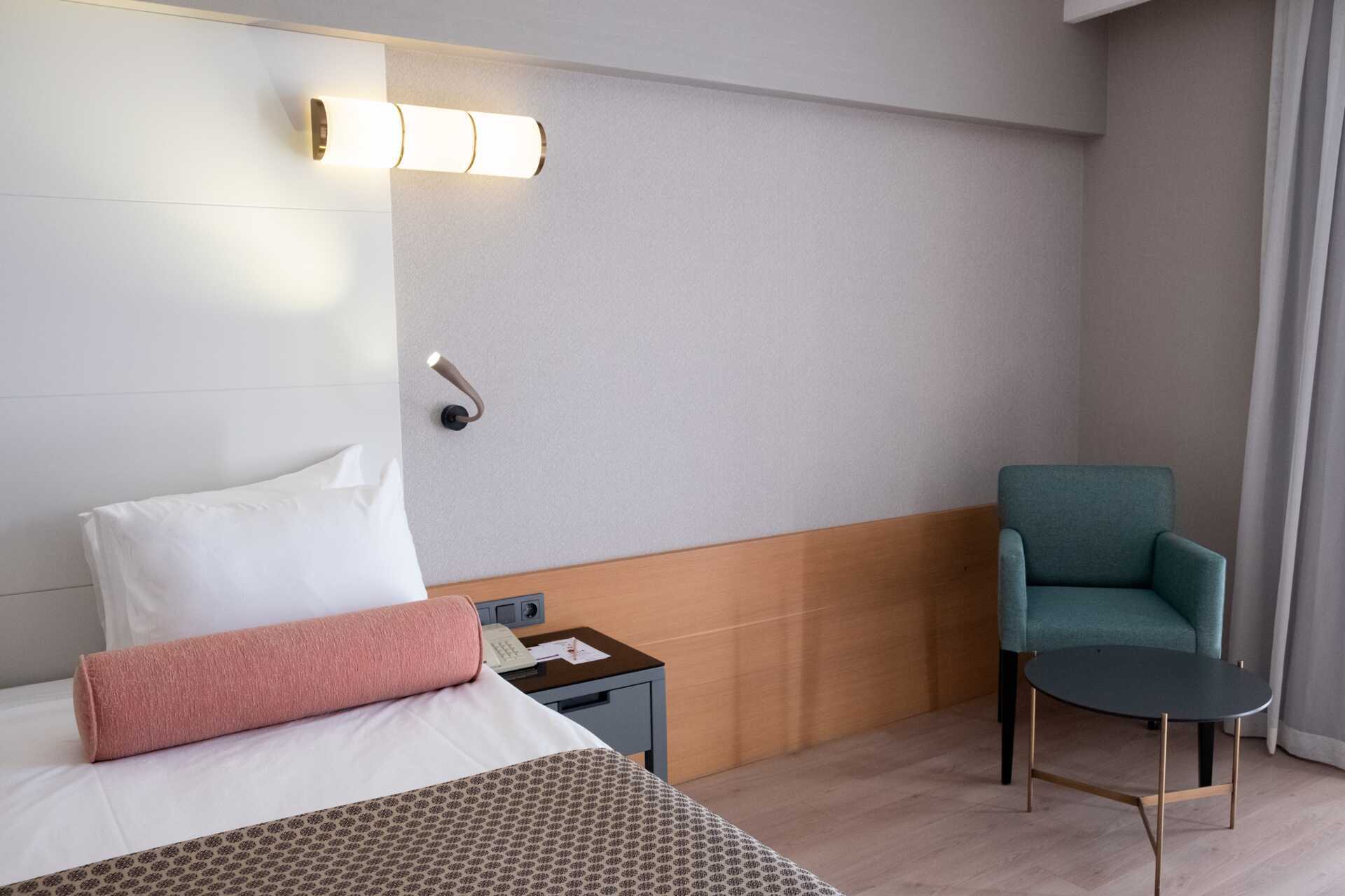 Perhehuoneissa on parveke, osassa merinäköala tai rajoitettu merinäköala. Perhehuoneita on saatavilla kahdessa versiossa, toisessa on kaksi makuuhuonetta (n. 32 neliömetriä), joissa parivuode tai kaksi erillistä vuodetta molemmissa makuuhuoneissa tai yksi makuuhuone parivuoteella ja mahdollisuus lisävuoteeseen kerrossänkyyn kahdelle lapselle (n. 24 neliömetriä). Maksuton wifi, ilmastointi ja tallelokero. Minibaarissa on virvoitusjuomia, olutta ja vesipullo, joka täytetään päivittäin. Vedenkeitin, kahvia ja teetä. Tv kansainvälisillä kanavilla. Kylpytakit ja tossut. Hiustenkuivain. Kylpyhuoneessa suihku ja wc. Siivous 7 krt/viikko.