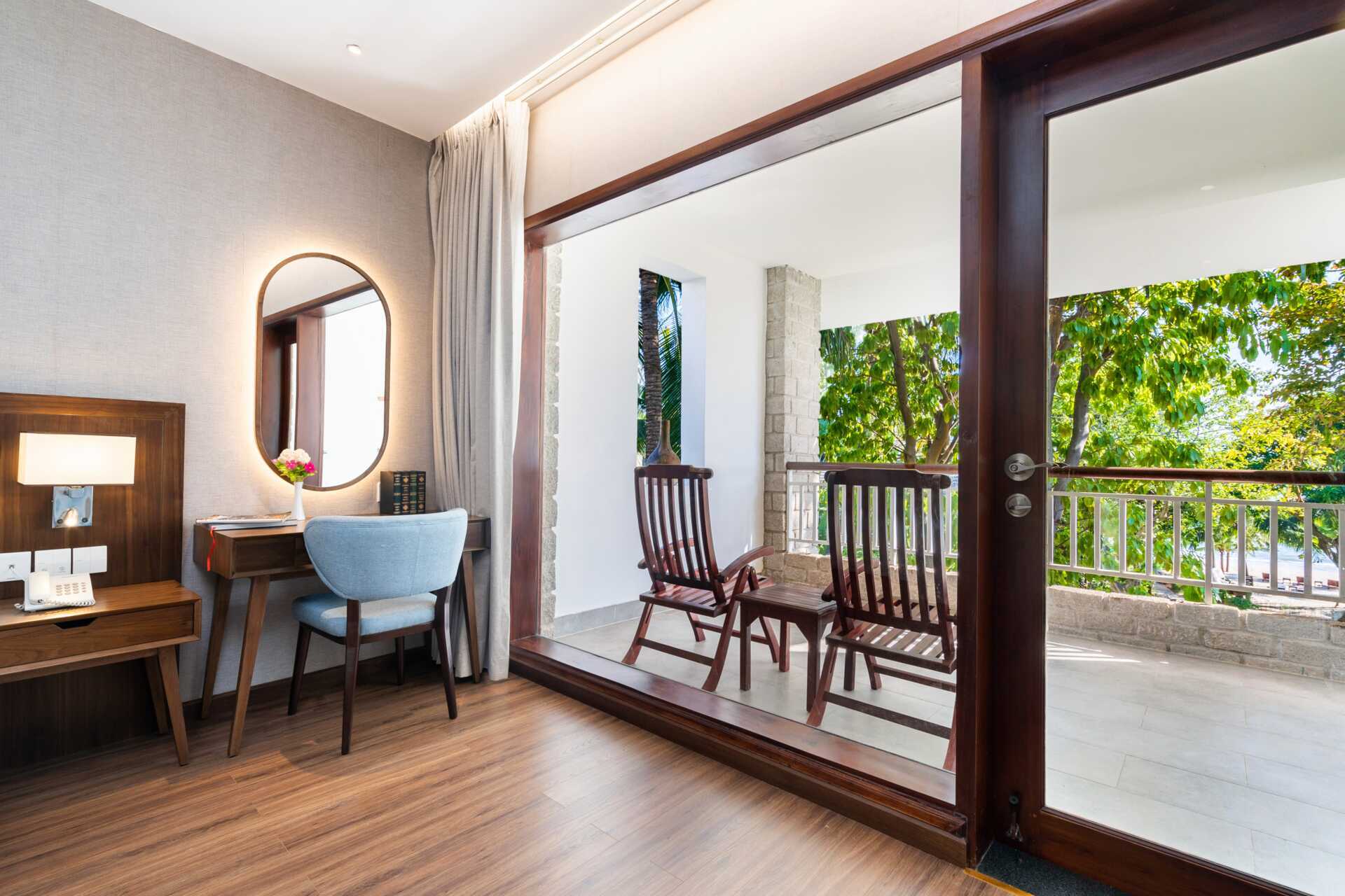 Deluxe-huoneita, joissa on parveke tai terassi. Parivuode tai kaksi leveämpää sänkyä. Lisävuodemahdollisuus taitettavaan sänkyyn, vuodesohvaan tai olemassa oleviin vuoteisiin. Maksuton wifi, ilmastointi ja tallelokero. Minibaari - kaksi vesipulloa täytetään maksutta päivittäin. Vedenkeitin, kahvia ja teetä. Tv kansainvälisillä kanavilla. Tossut. Hiustenkuivain. Kylpyamme ja wc. Siivous 7 krt/viikko.