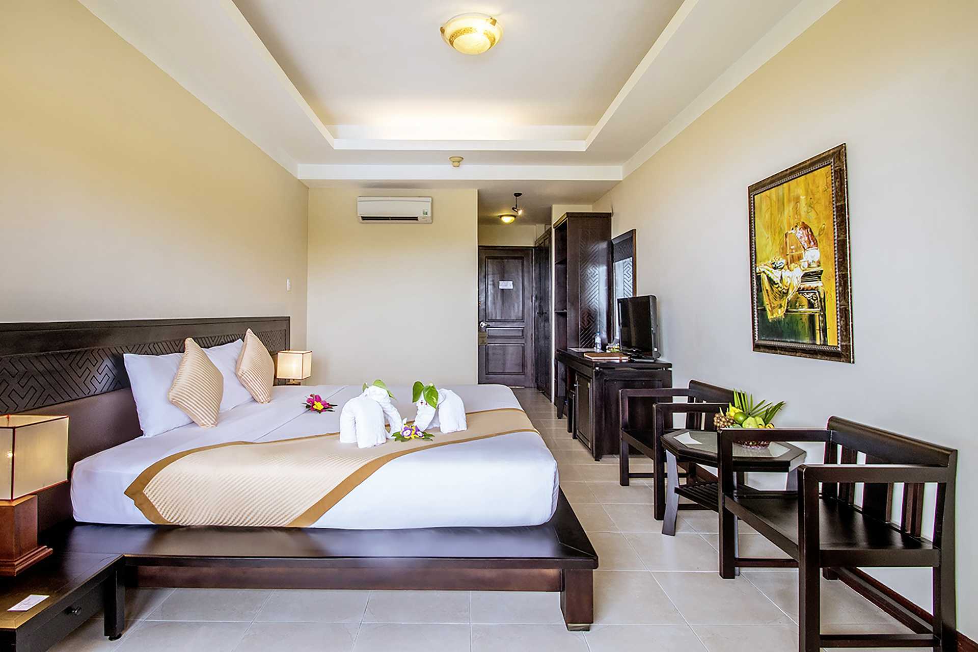 Deluxe-huoneita bungaloweissa. Ulkotila omalla altaalla ja rajoitetulla merinäkymällä. Parivuode tai kaksi erillistä sänkyä. Lisävuodemahdollisuus. Tv satelliittikanavilla. Kahvin ja teen keittomahdollisuus. 2 pulloa vettä päivässä. Maksuton ilmastointi ja tallelokero. Hiustenkuivain ja tohvelit. Minibaari lisämaksusta. Osittain avoin kylpyhuone, amme/suihku ja wc. Siivous 7 krt/viikko.